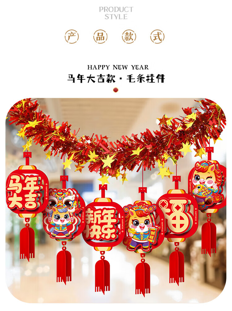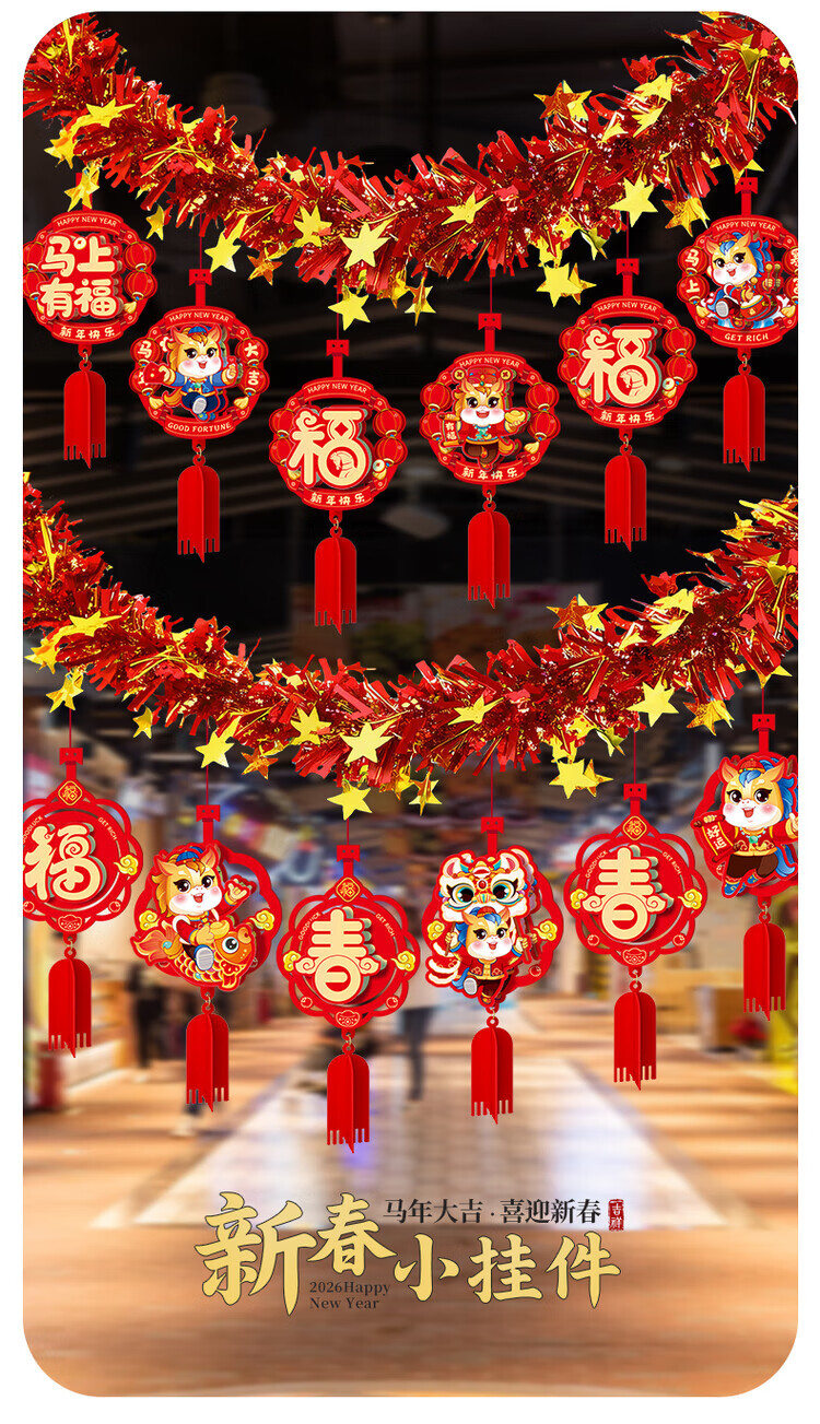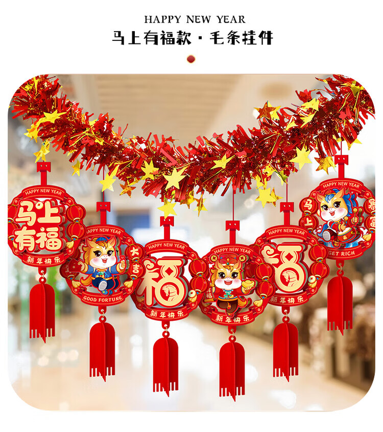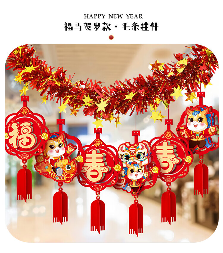 OYKTN马年2026新年福字拉花元旦装饰挂件春节过年室内客厅场景布置挂饰 毛条拉花-马年大吉一个