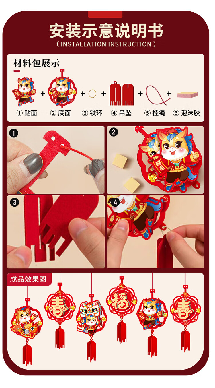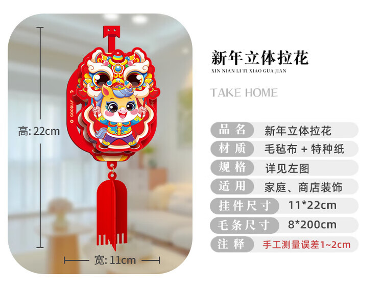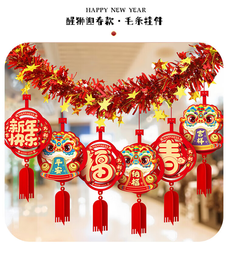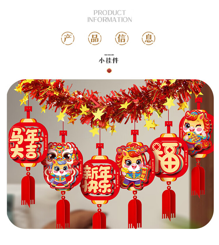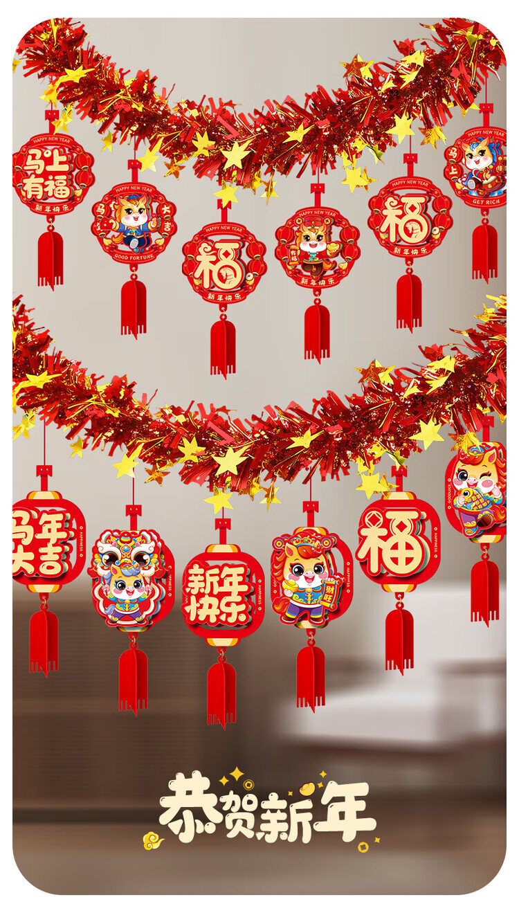 OYKTN马年2026新年福字拉花元旦装饰挂件春节过年室内客厅场景布置挂饰 毛条拉花-马年大吉一个