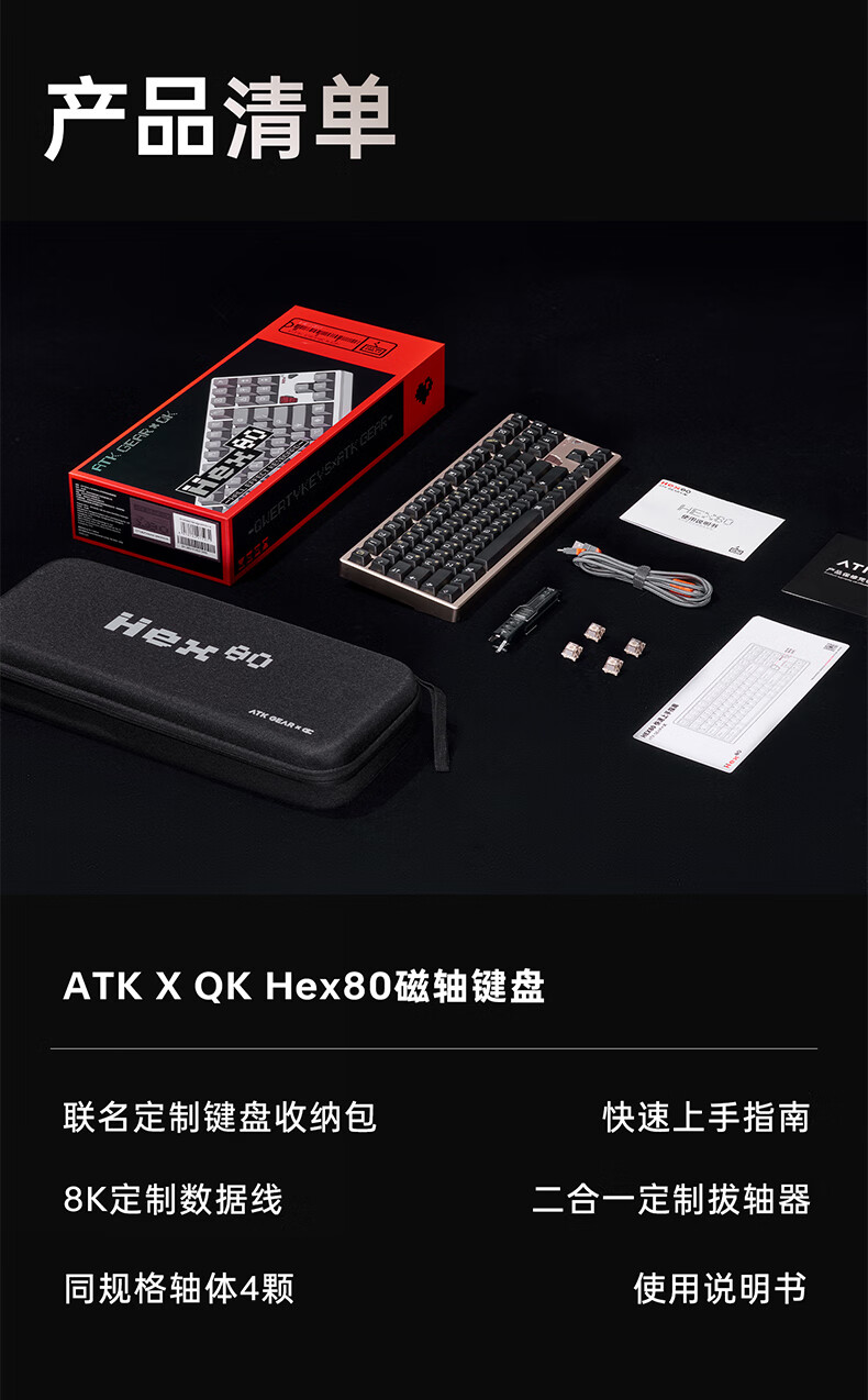ATK×QK联名 Hex80高性能磁轴键盘 电竞游戏有线键盘OW Ti轴 客制化办公铝坨坨无畏契约 阳极沙金