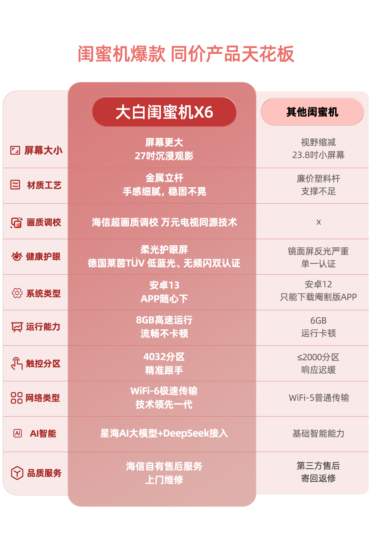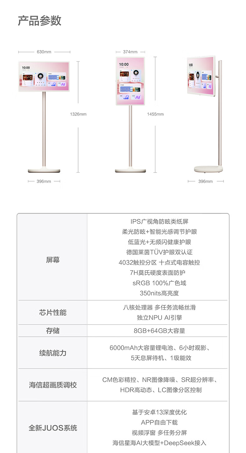 海信大白闺蜜机X6 长续航 护眼类纸屏 27英寸8核芯片大平板 娱乐观影 可移动电视 圣诞礼物 国家补贴