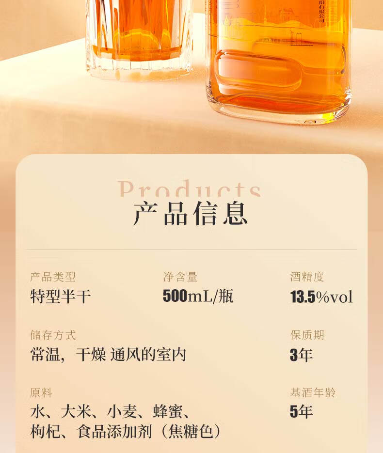 和酒金色年华五年陈黄酒500ml*6半干型黄酒整箱5年上海老酒礼盒送礼 500mL 6瓶 整箱装