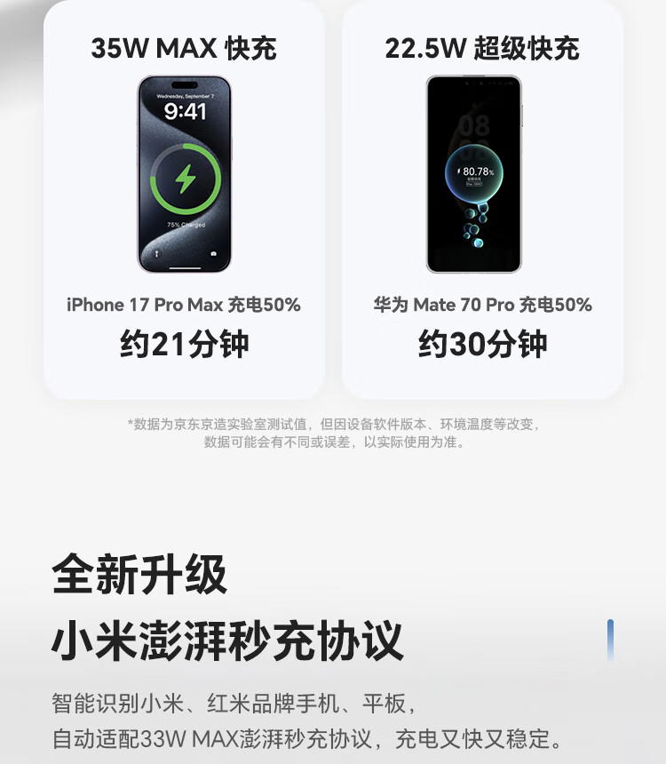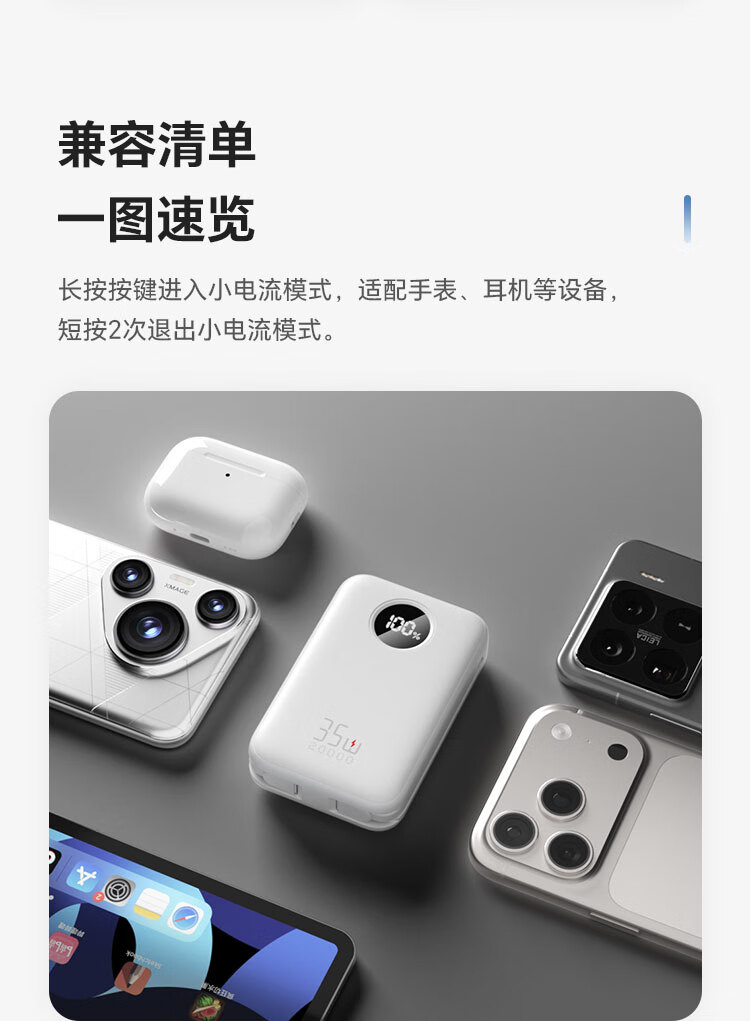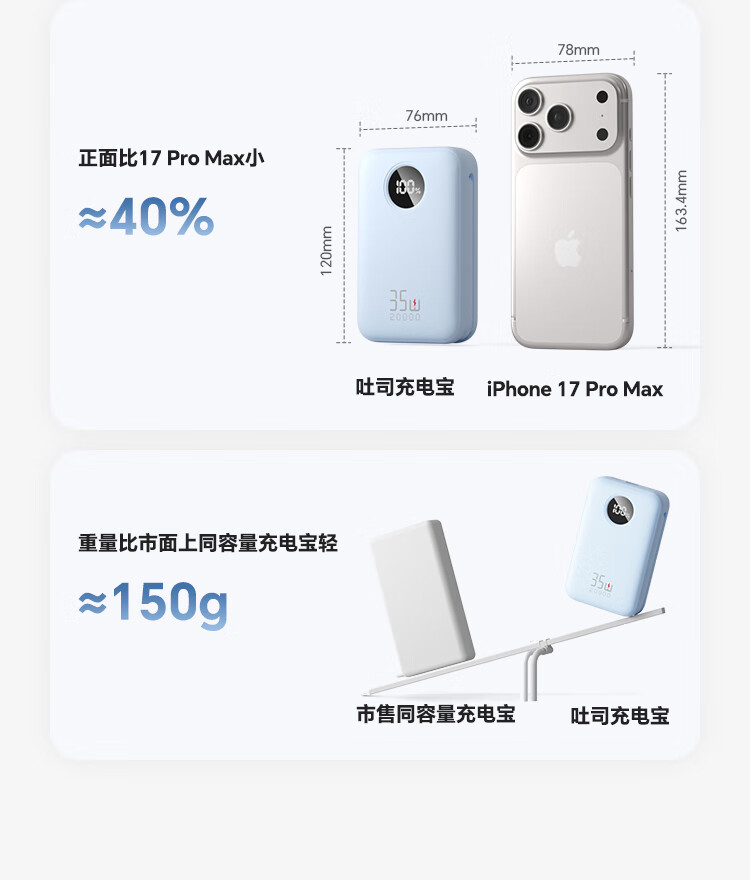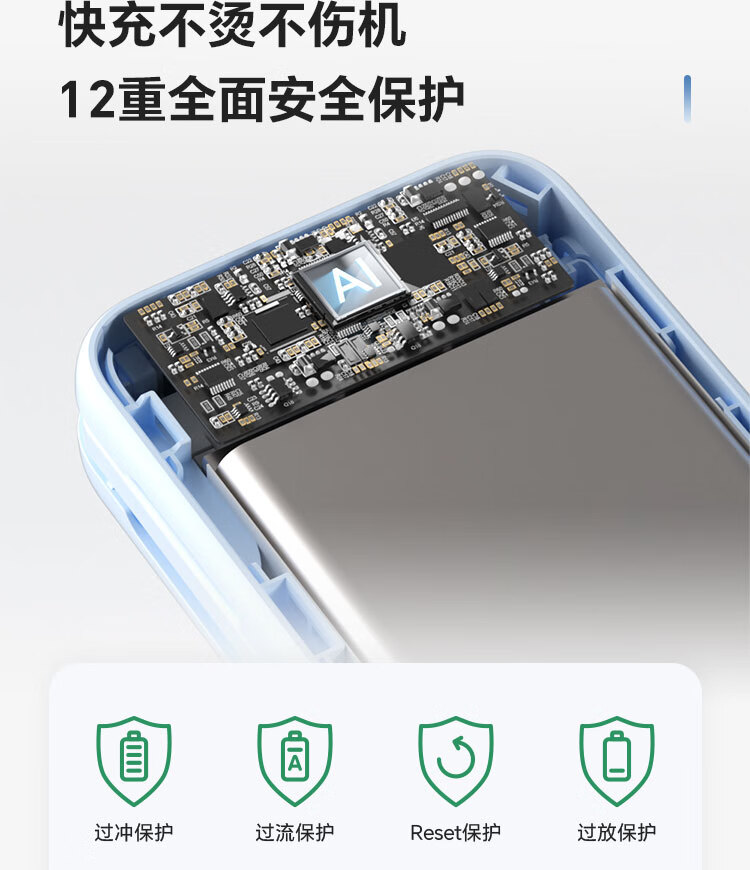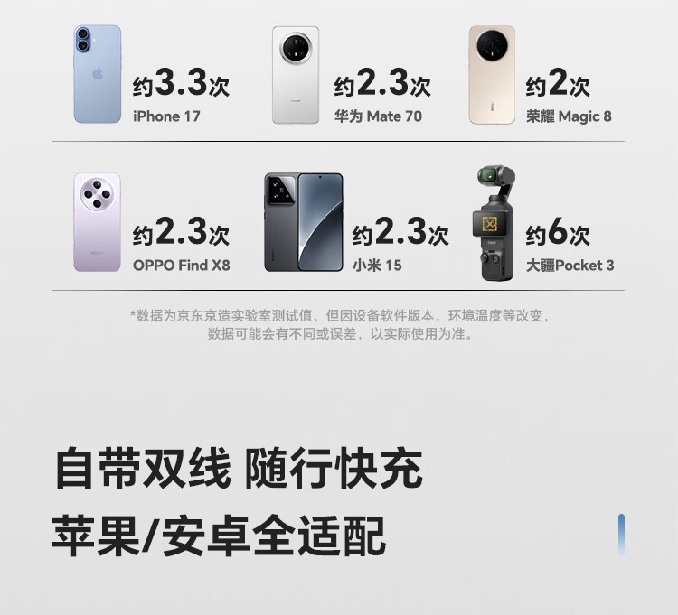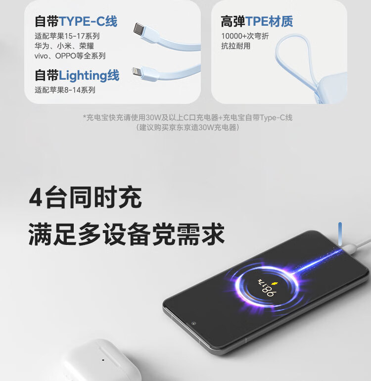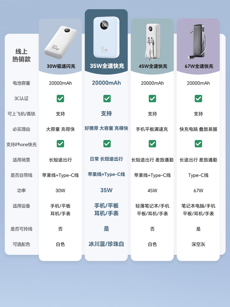 京东京造35W自带线充电宝20000毫安3c认证可上飞机京东自营移动电源适用户外苹果17小米17华为荣耀冰川蓝
