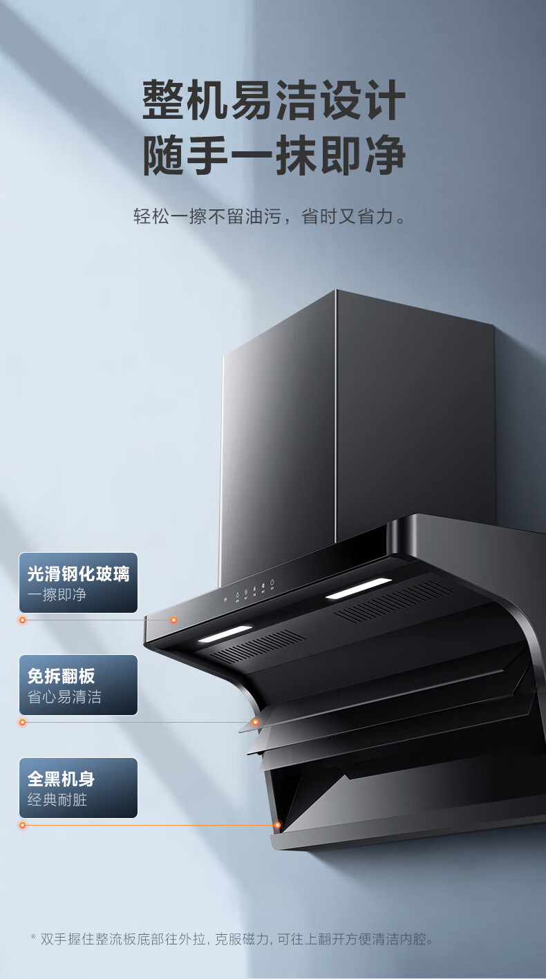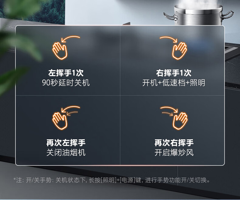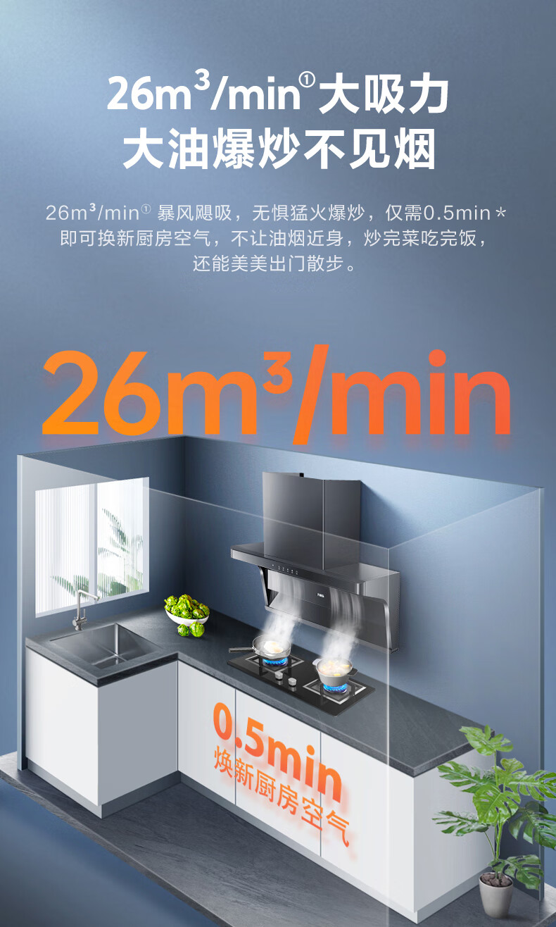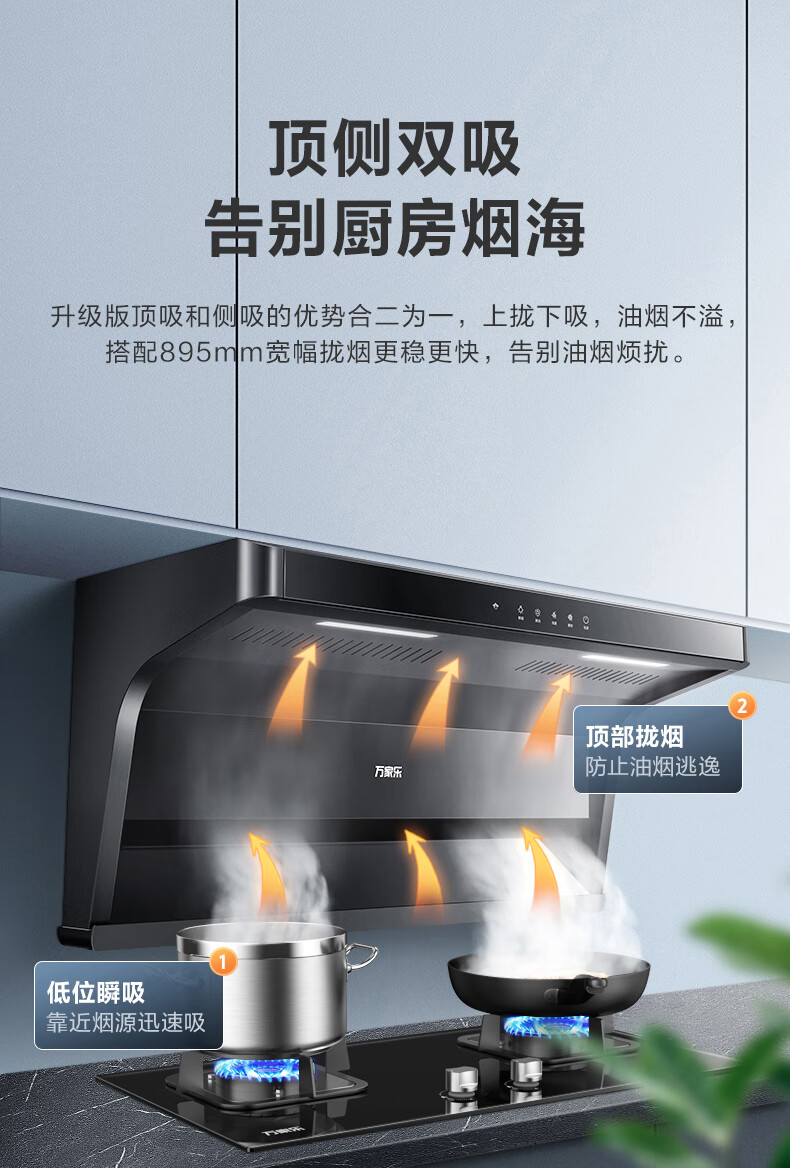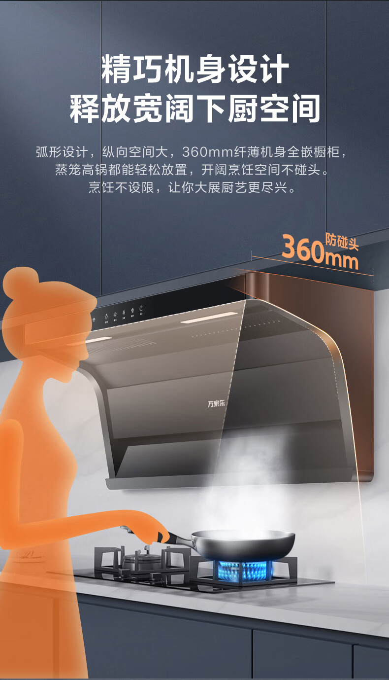 万家乐油烟机【小鲸喜AK6】抽油烟机挥手智控 26立方爆炒大吸力顶侧双吸不碰头 烟灶联动自清洗吸油烟机