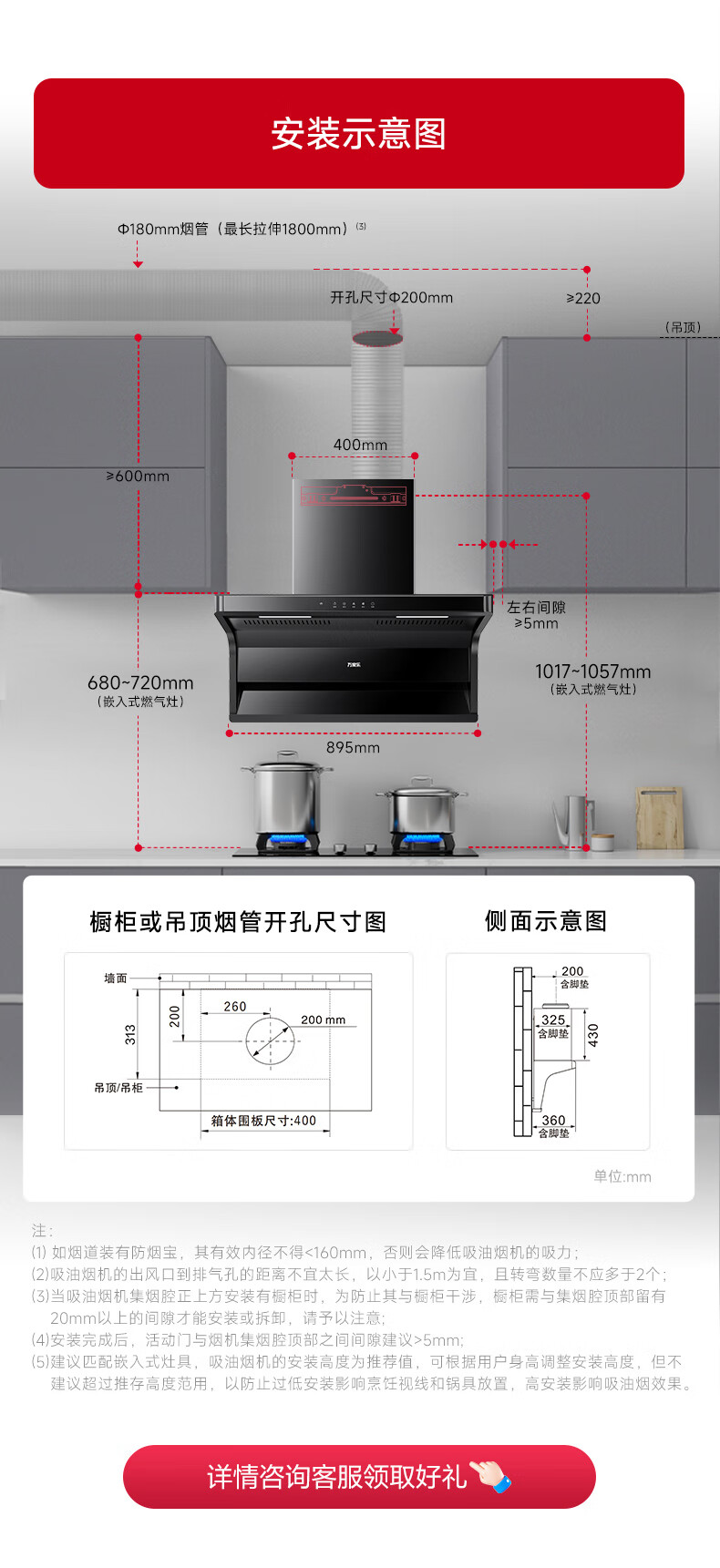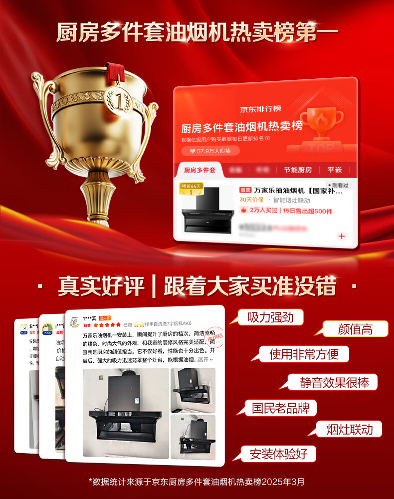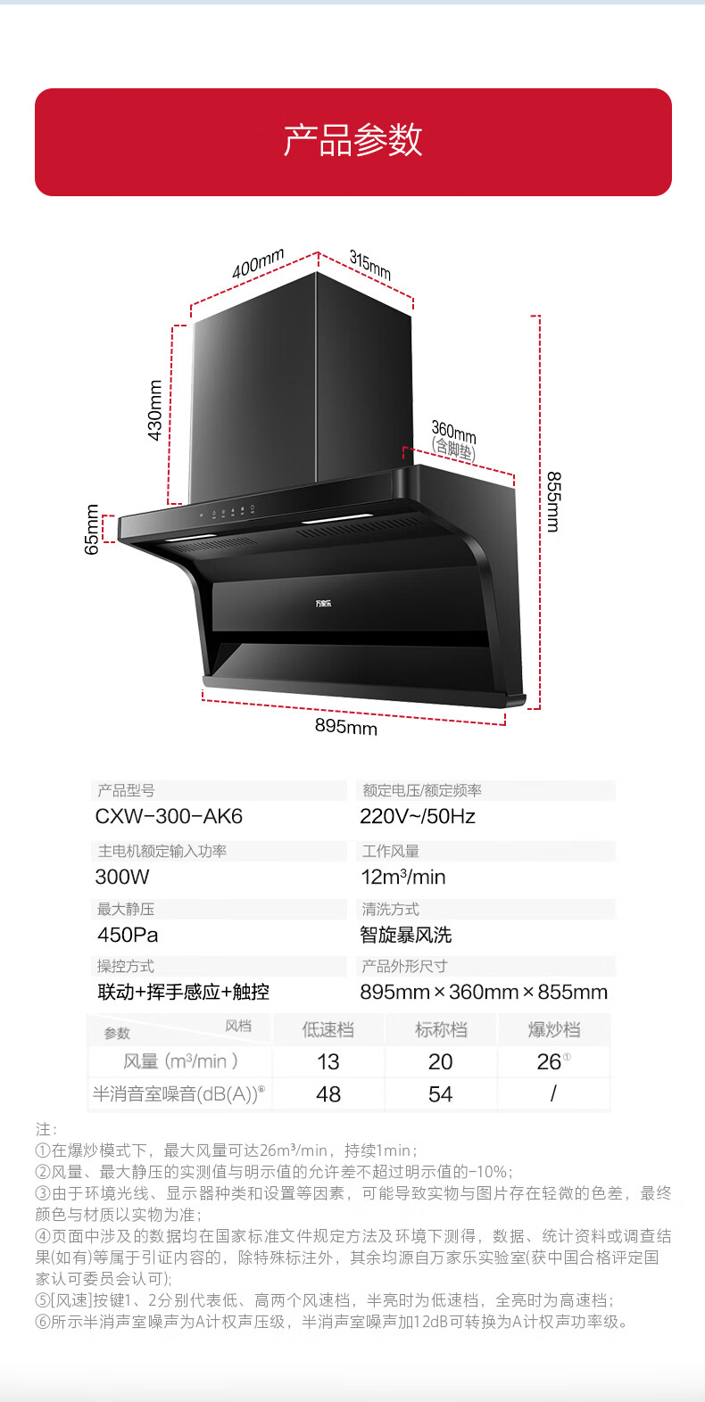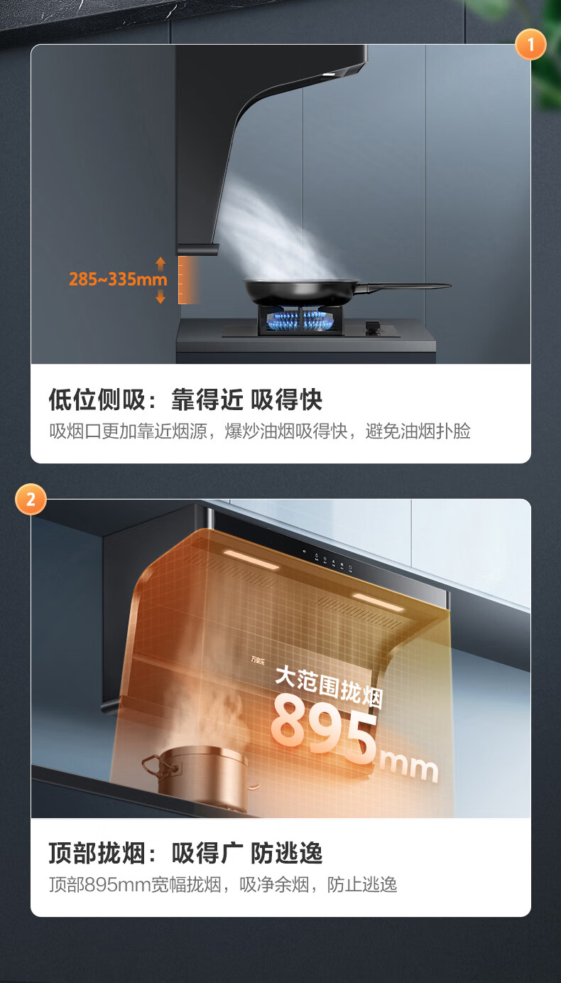 万家乐油烟机【小鲸喜AK6】抽油烟机挥手智控 26立方爆炒大吸力顶侧双吸不碰头 烟灶联动自清洗吸油烟机