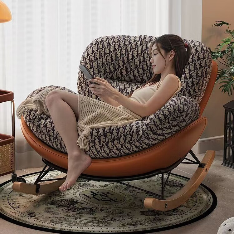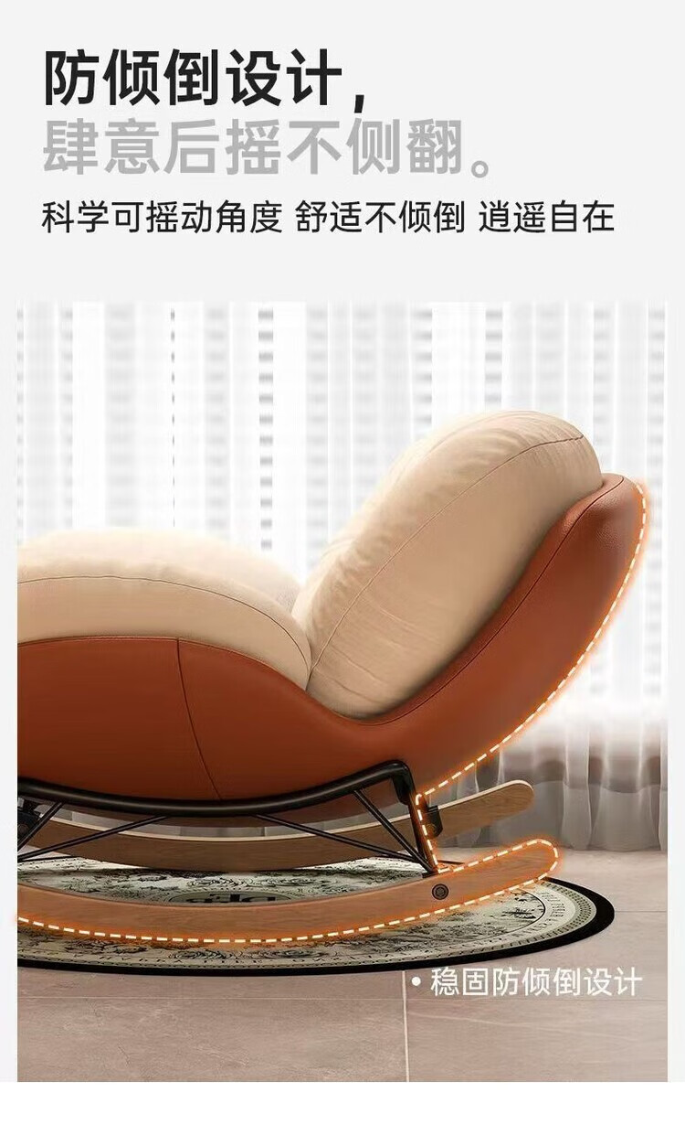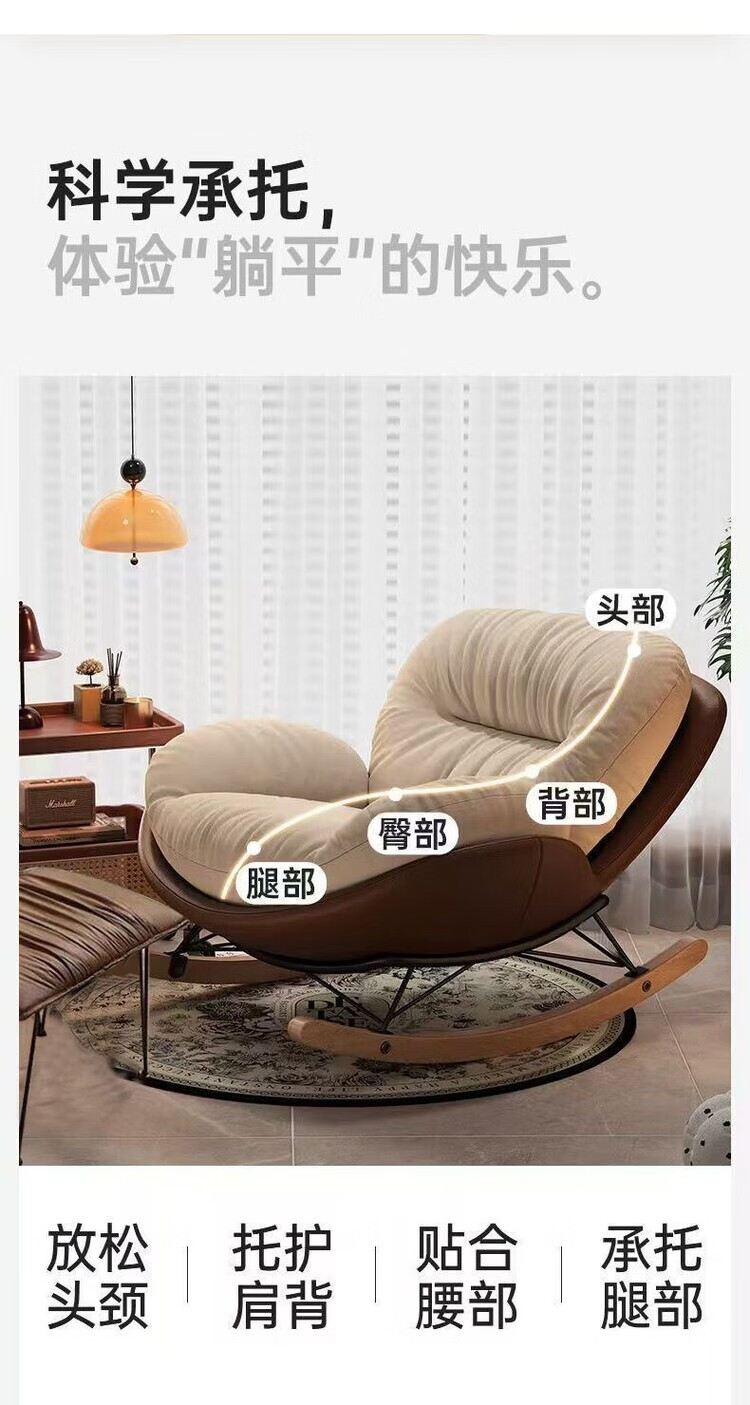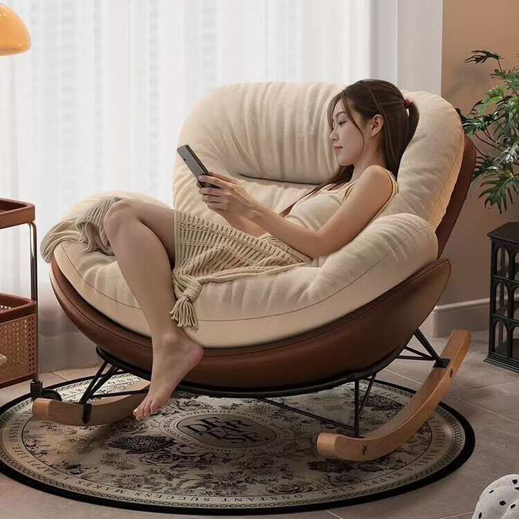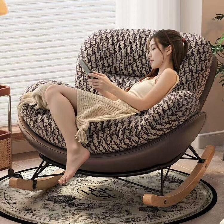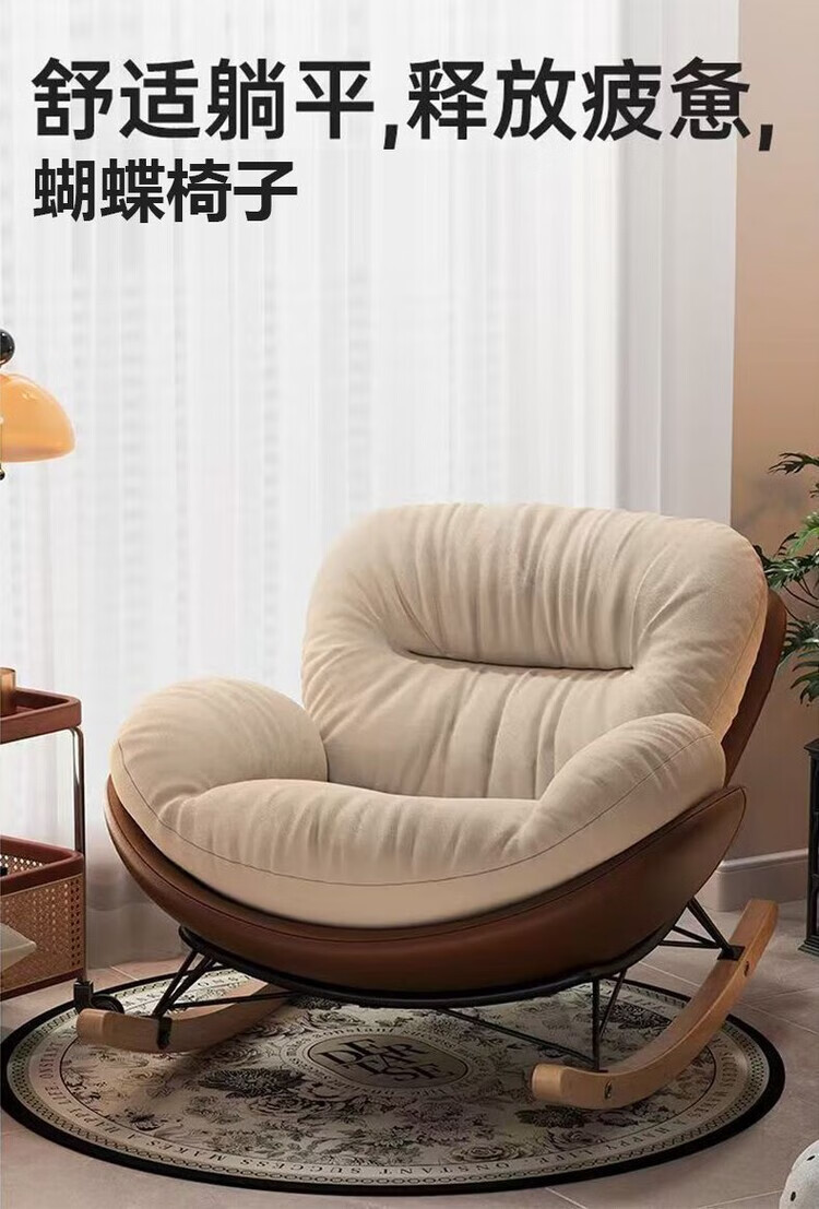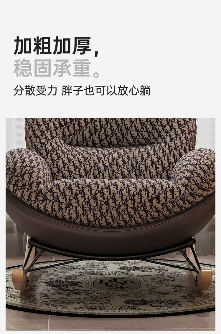 素树家居蝴蝶摇摇椅升级底座猫抓皮大号超软午睡躺椅阳台休闲单懒人沙发椅 咖啡色拼D字纹 升级猫爪皮底座+绒布坐包