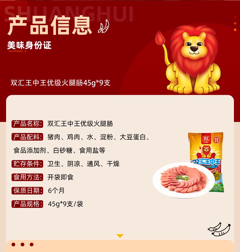 双汇王中王火腿肠405g 即食火腿肠袋装香肠 泡面火腿肠休闲零食