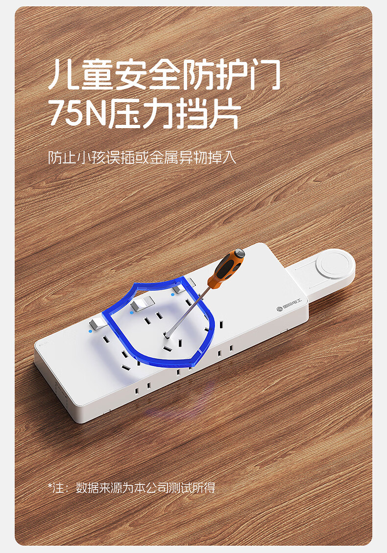 国际电工(FDD)旅行便携能量舱氮化镓65W快充插座多功能USB迷你桌面插排带线插头 直插款-14孔插座 灰色
