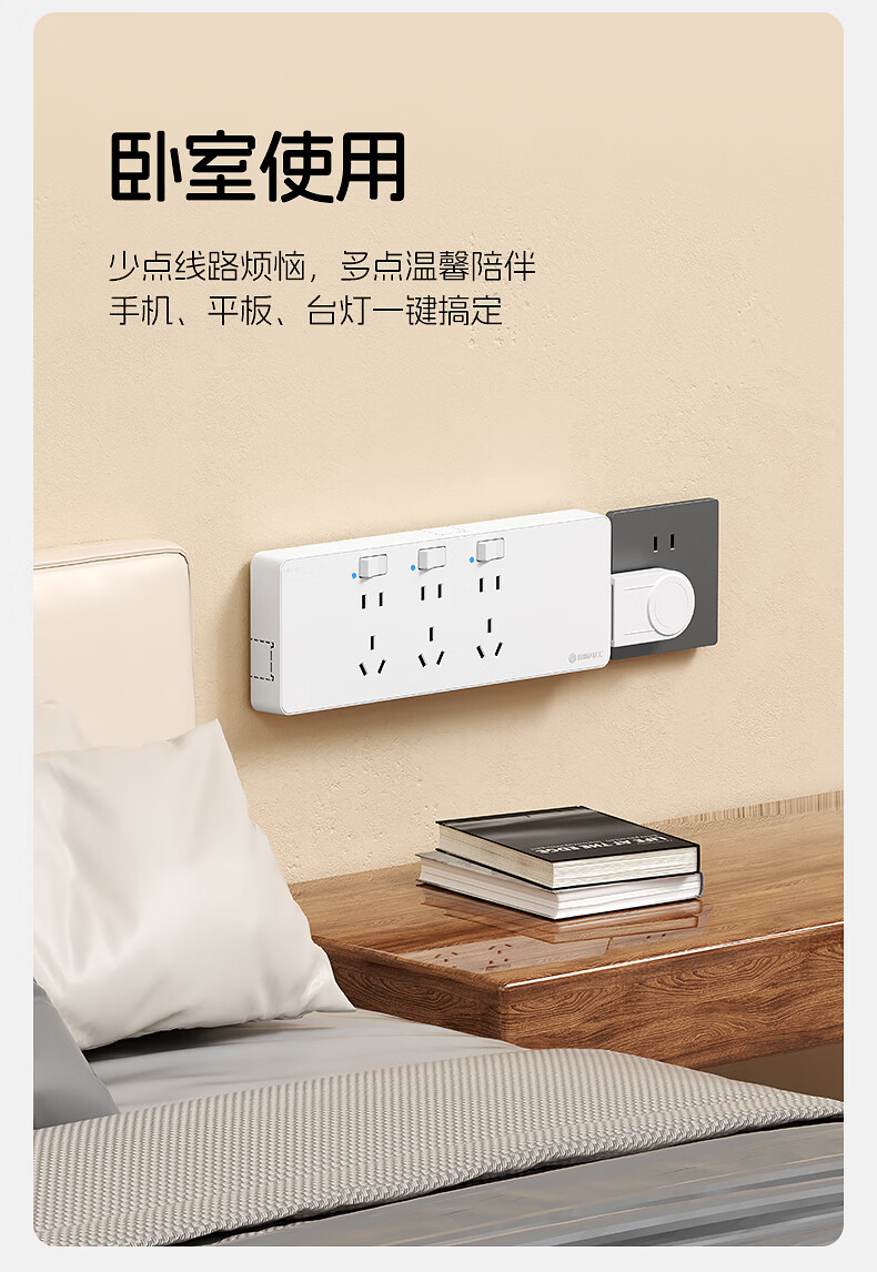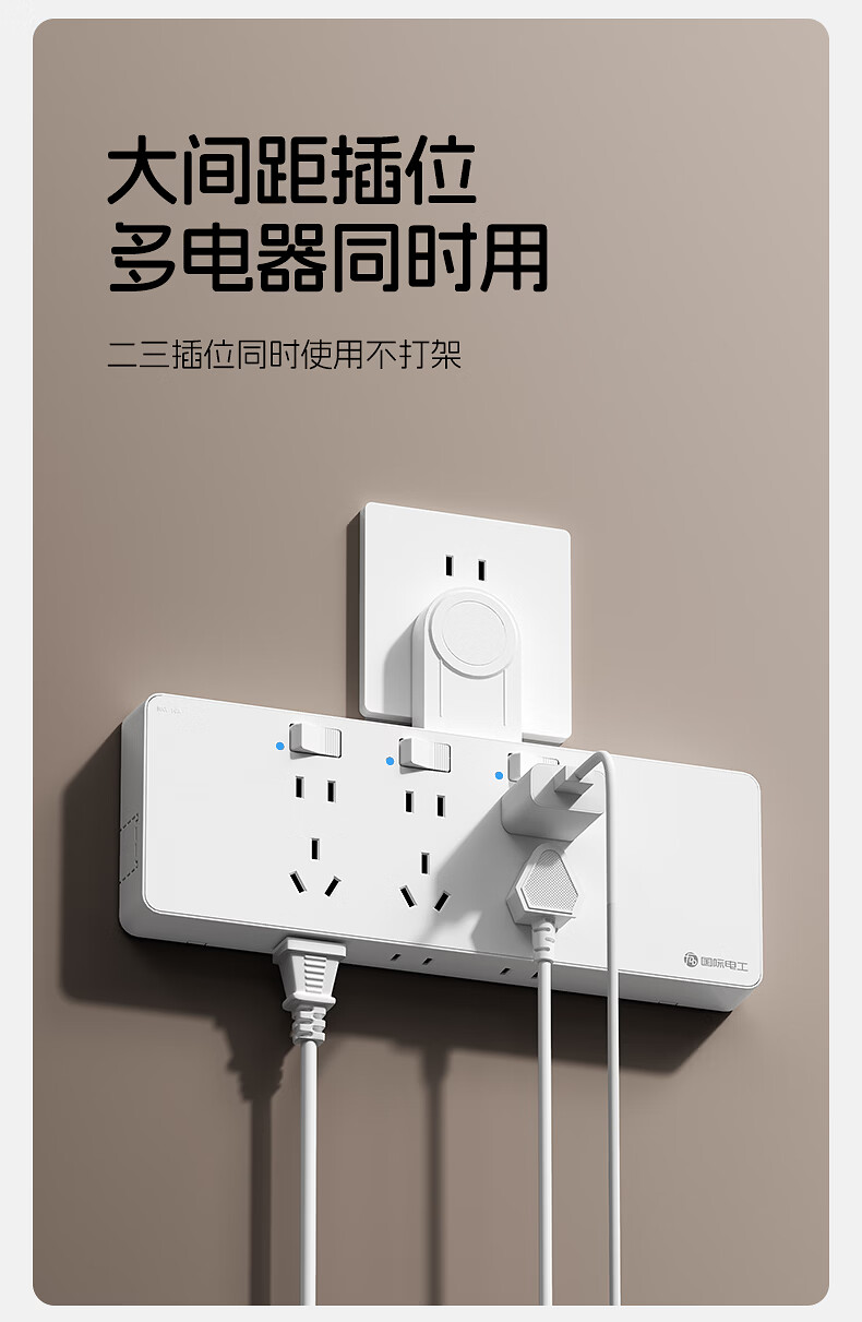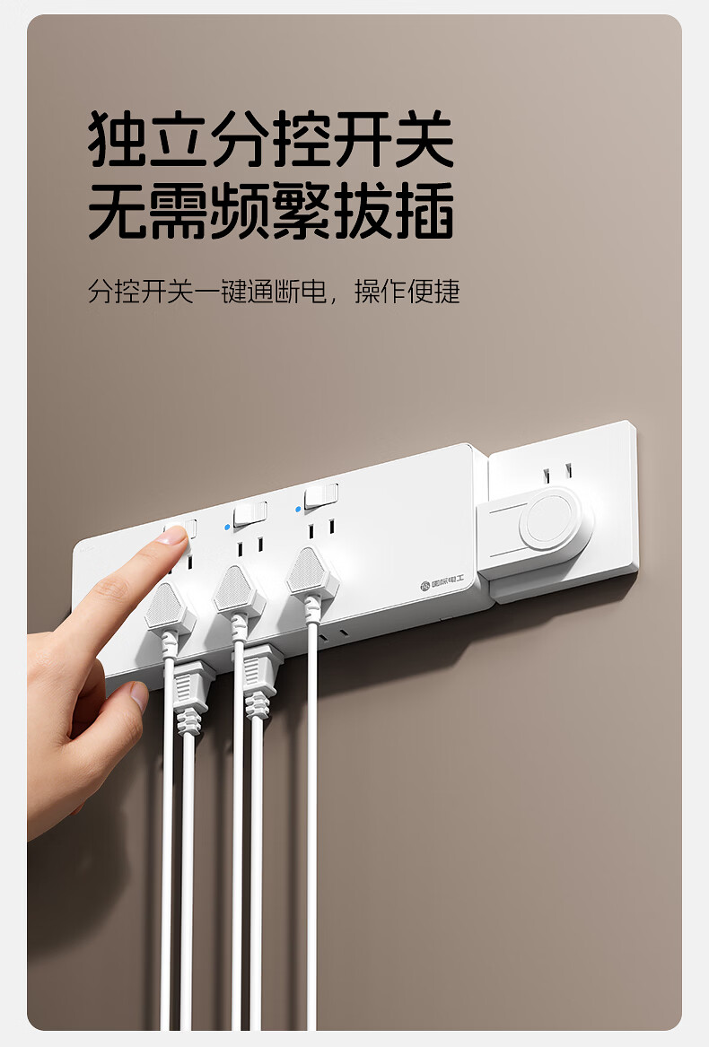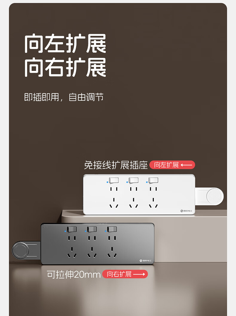 国际电工家用免打孔直插扩展插座厨房床头多孔明装多孔拓展器带开关控制 白色【向左拓展】三开二十一孔