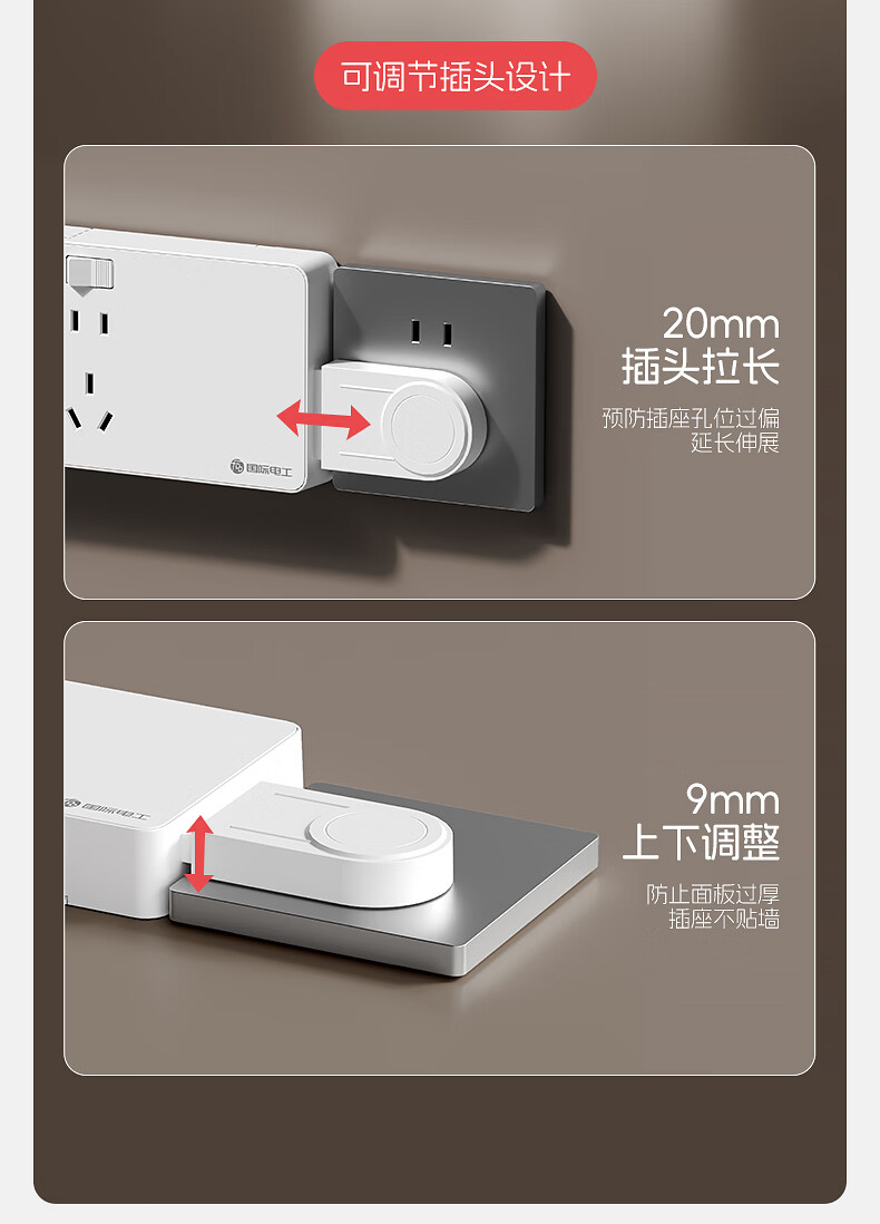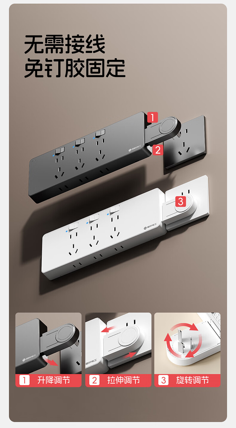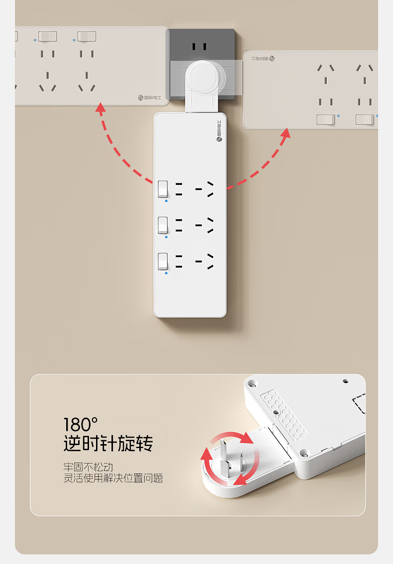 国际电工家用免打孔直插扩展插座厨房床头多孔明装多孔拓展器带开关控制 白色【向左拓展】三开二十一孔