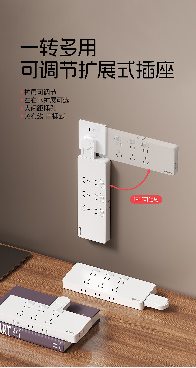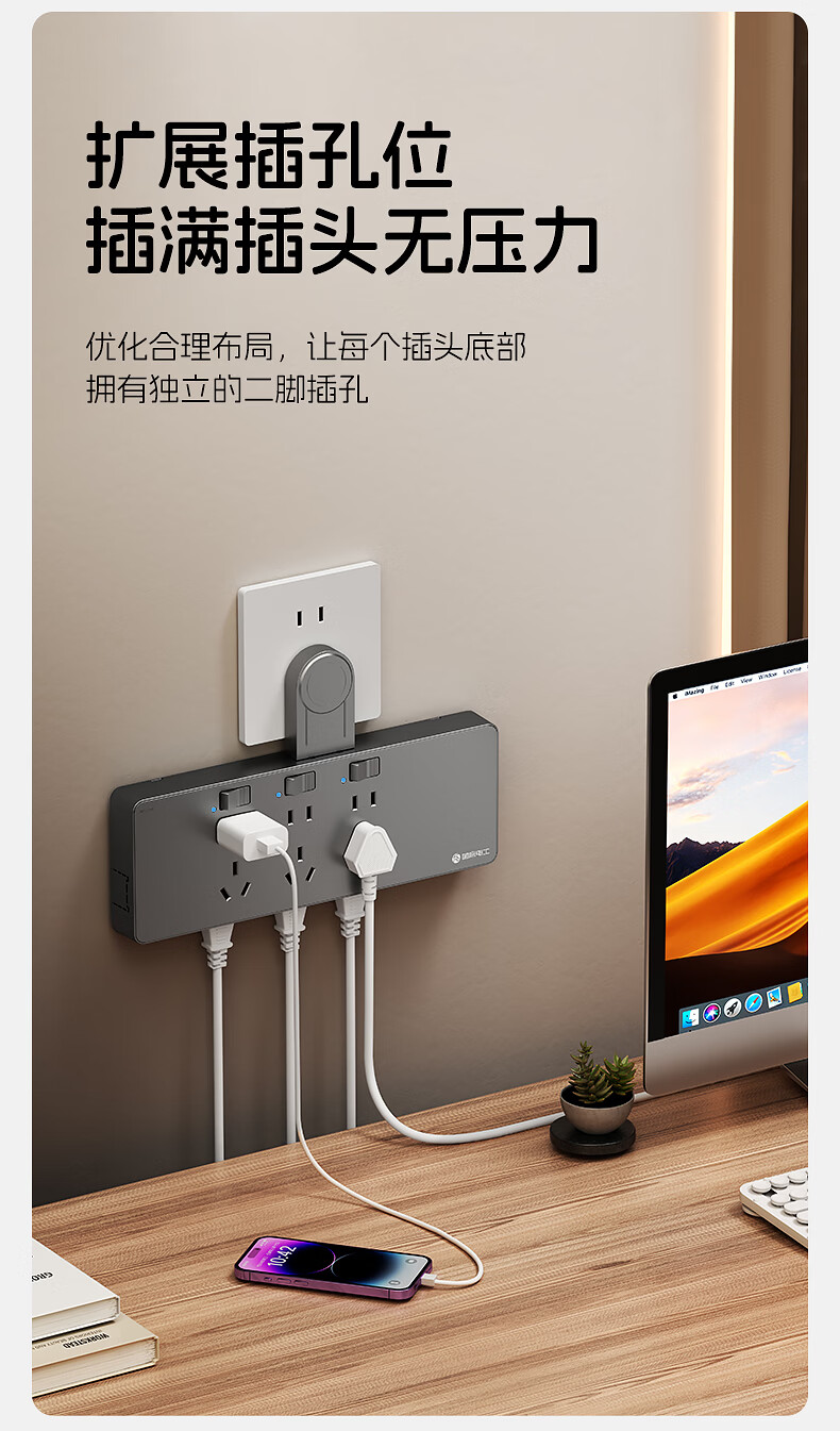 国际电工(FDD)直插式扩展插座家用厨房一转多孔位电源带开关拓展插排转换器插板 【LED指示灯】三开21孔向左扩展 白色
