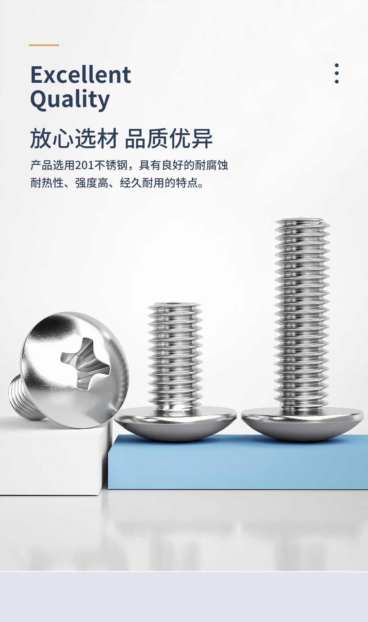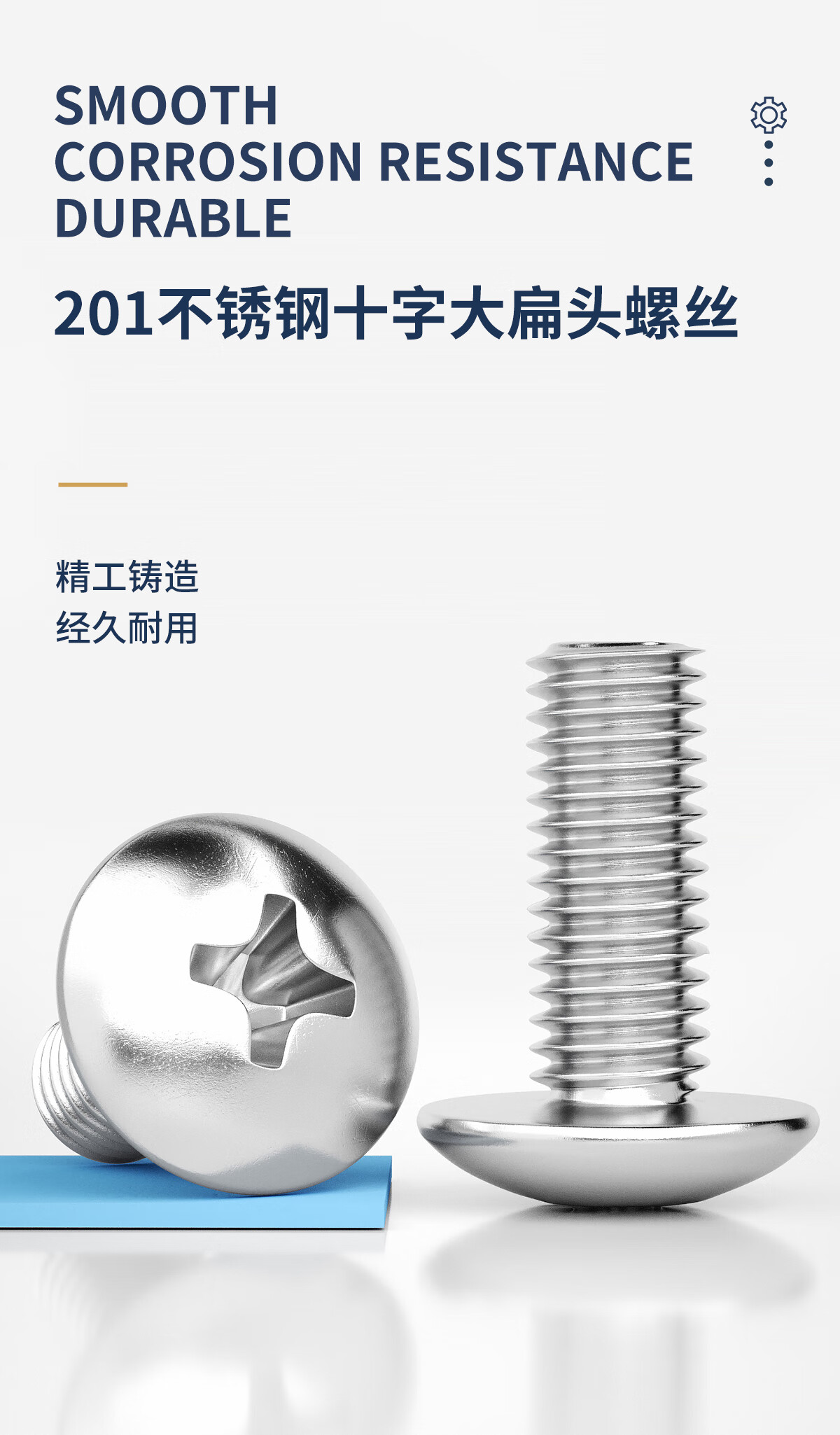固万基(GUWANJI)201不锈钢十字大扁头螺丝蘑菇伞头螺栓半圆头机丝螺钉M3-M6 M3x6[500个]