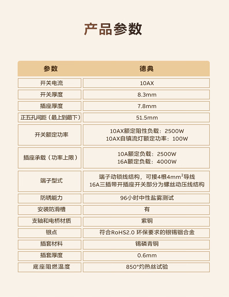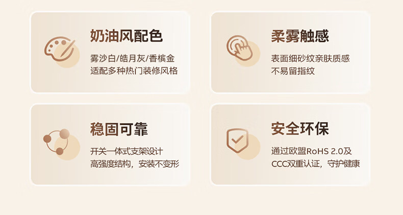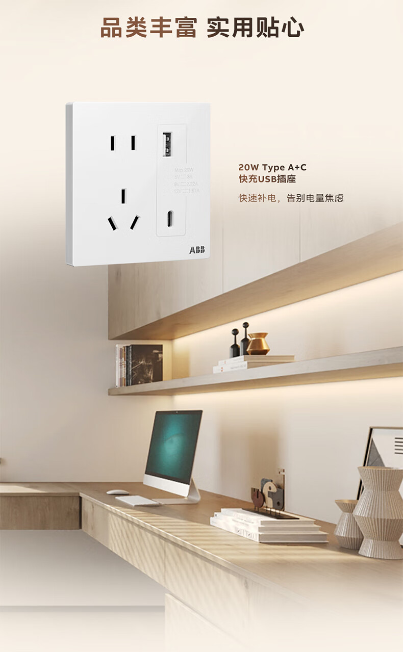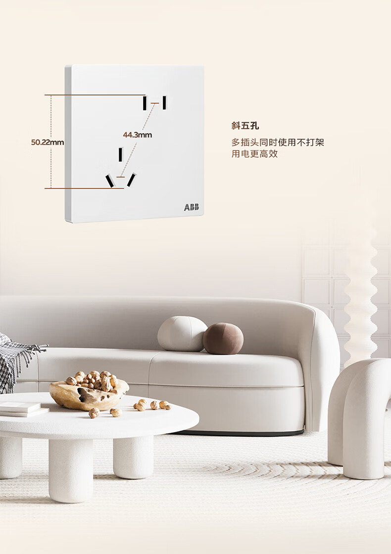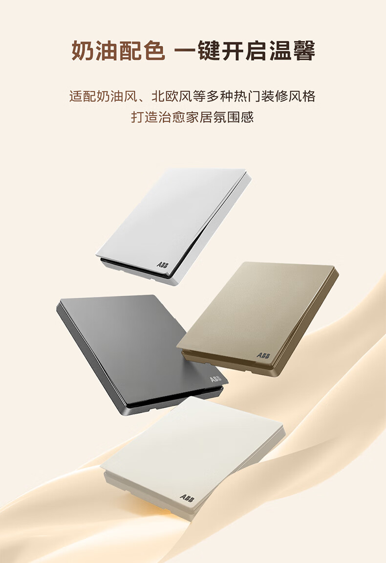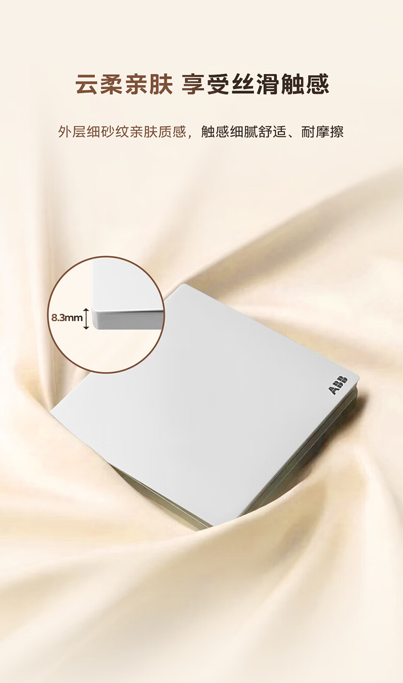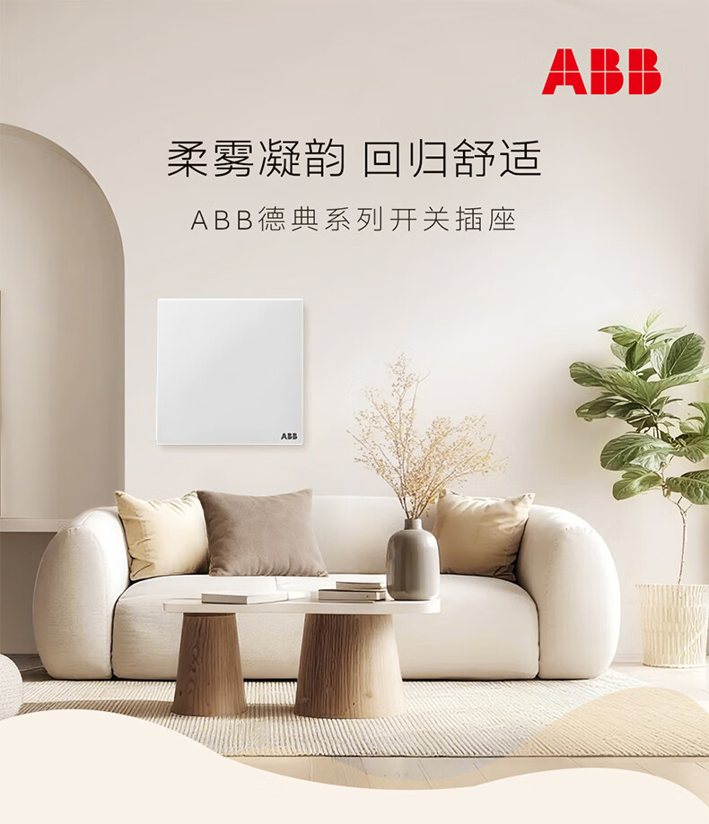 ABB开关插座面板 德典系列雾沙白 磨砂哑光奶油风 无边框 86型电源 正五孔插座
