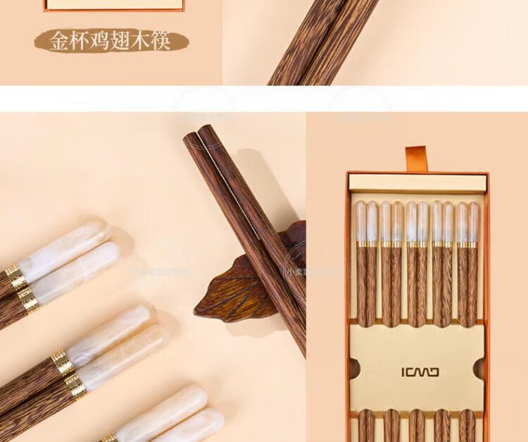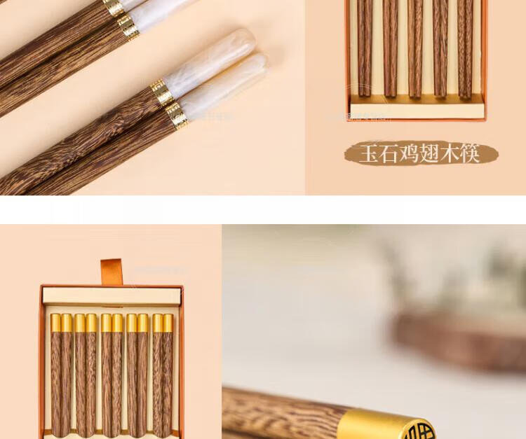 WCZ德国新款鸡翅木筷子家庭专人专用无漆无蜡实木质家用分餐一人一个 抗菌玉石【鸡翅木筷】 5双
