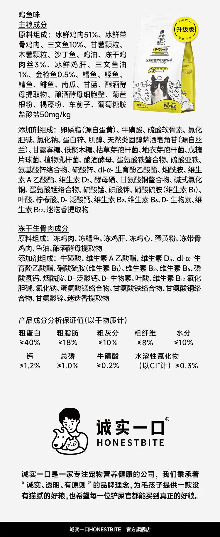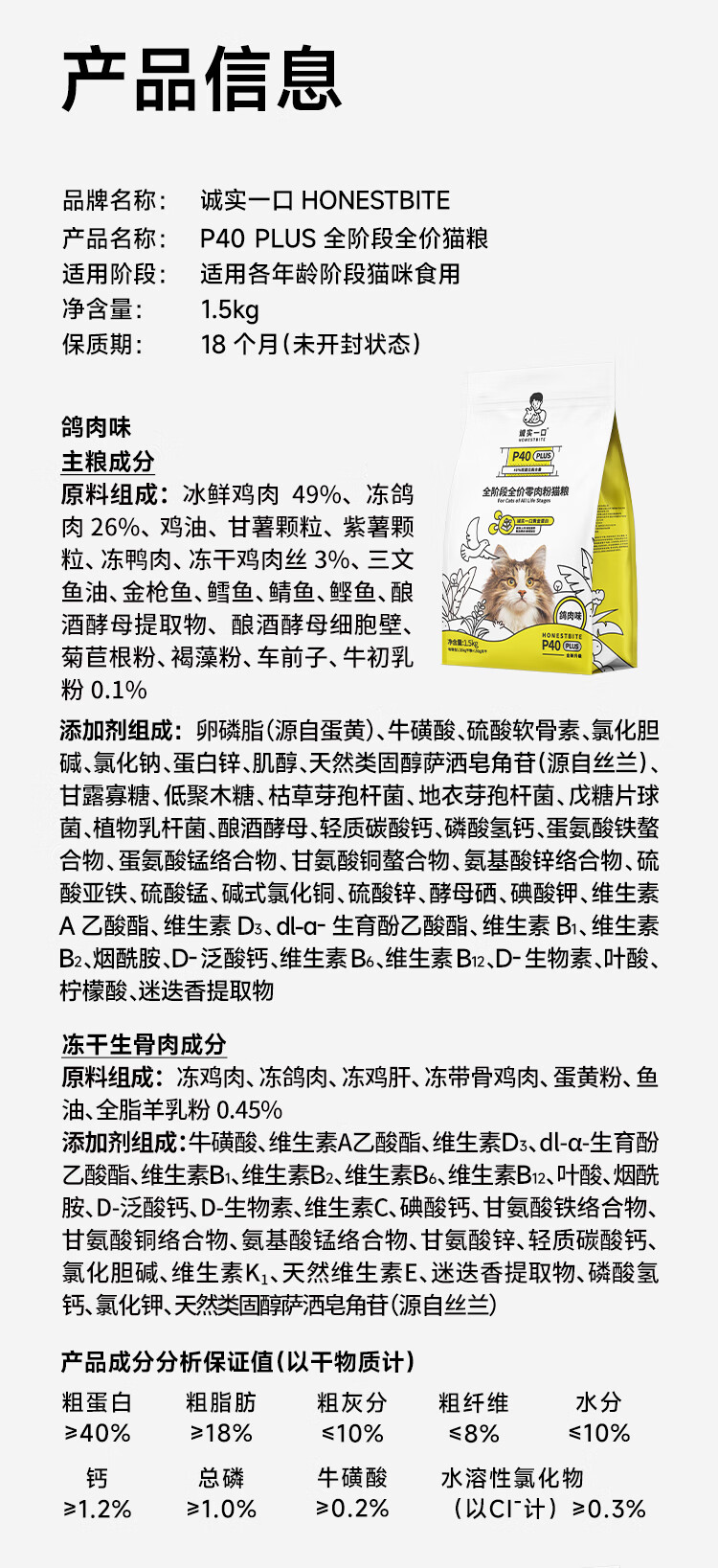诚实一口P40 PLUS冻干猫粮鸡鱼口味 1.5kg*8袋【经典版】有效期至26年8月