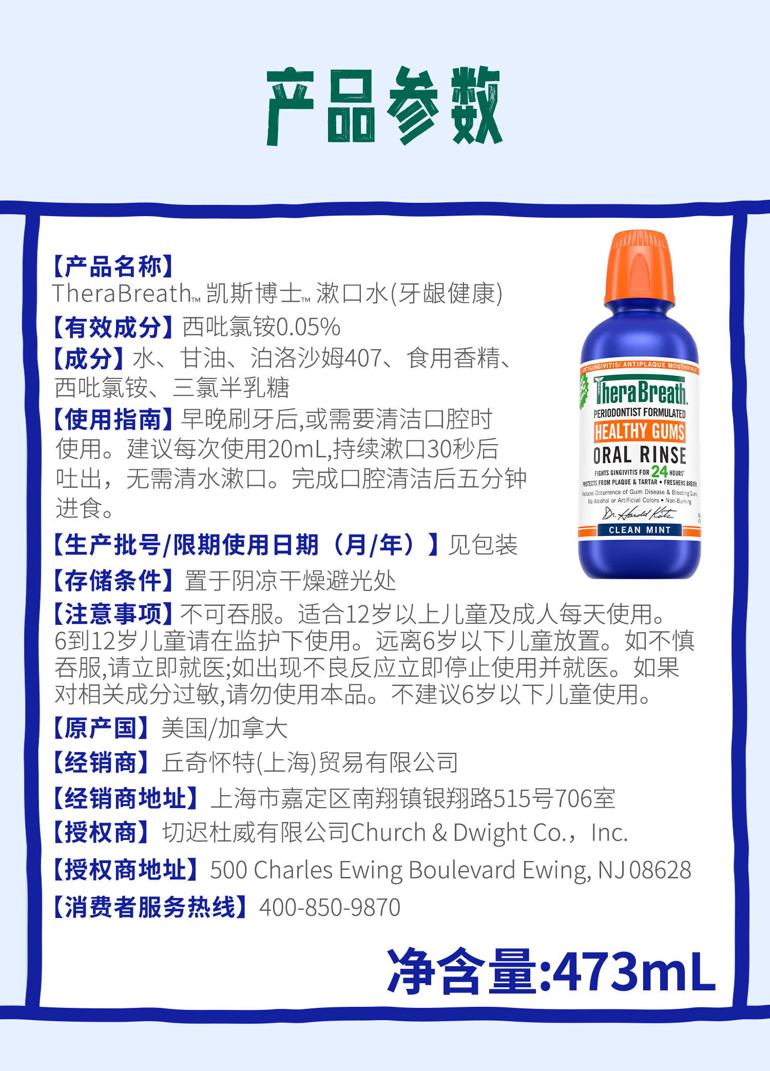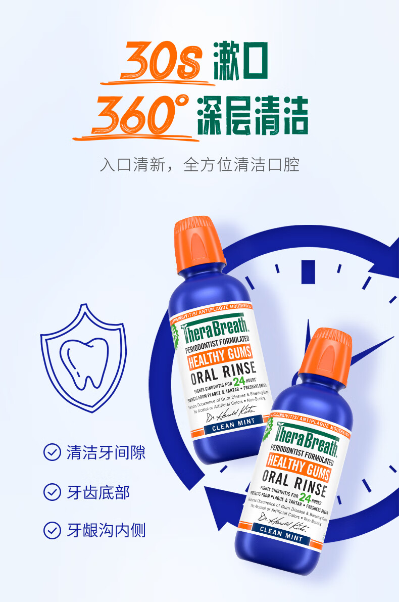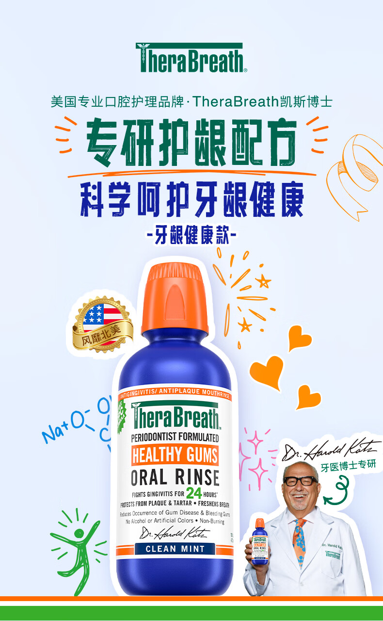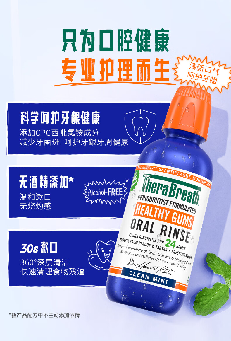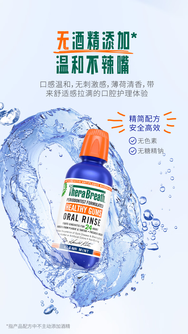 TheraBreath凯斯博士漱口水牙周健康473ml温和清新清洁抑菌护龈