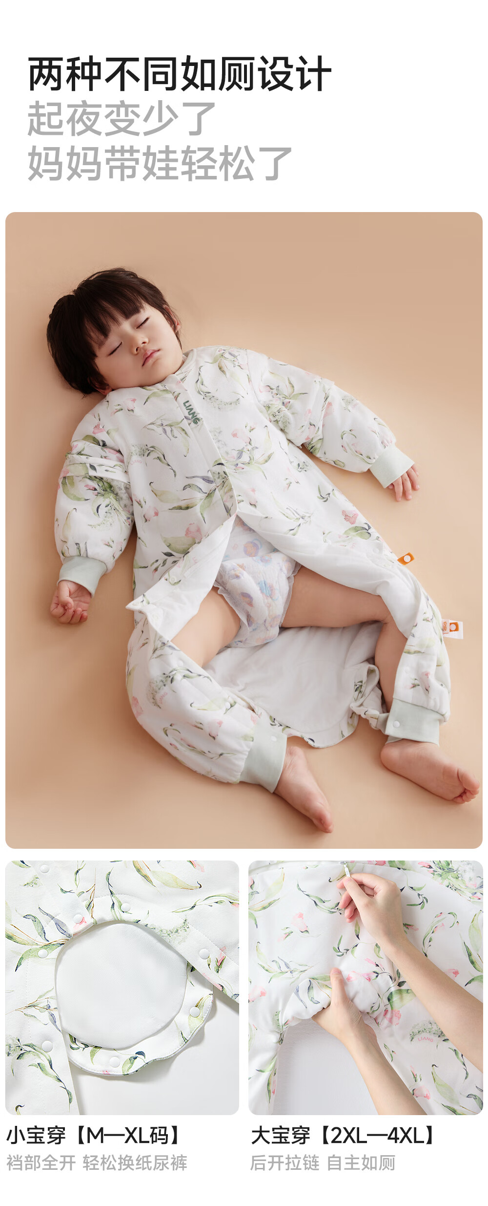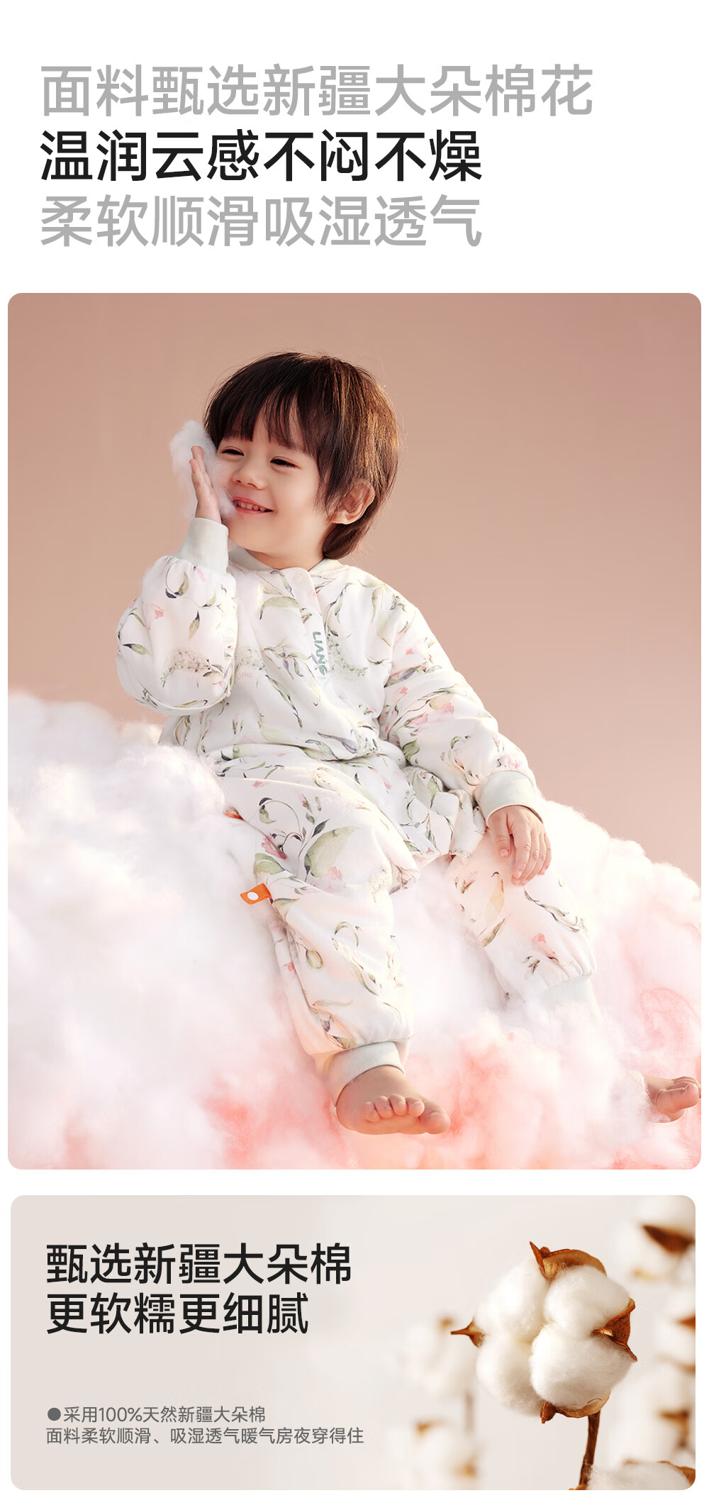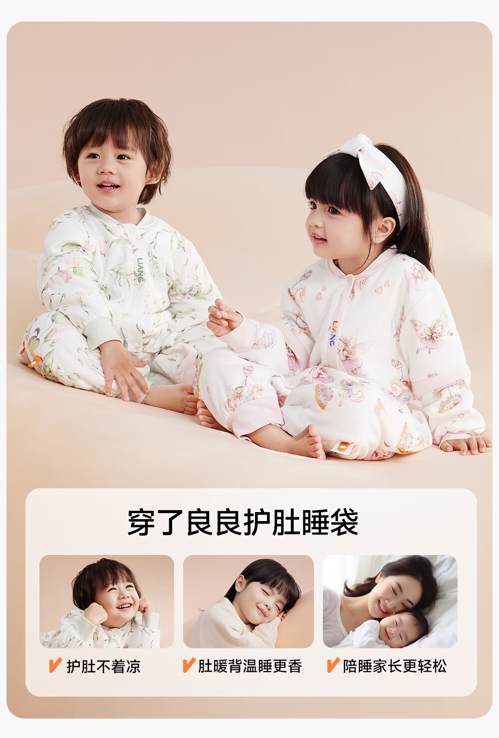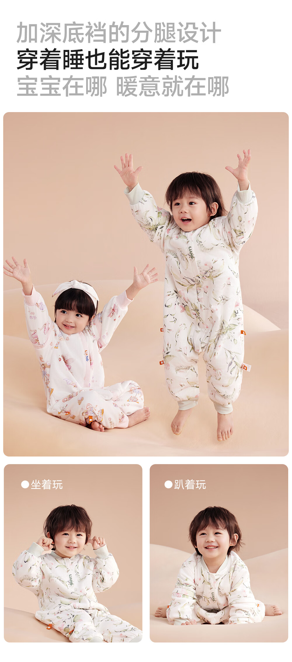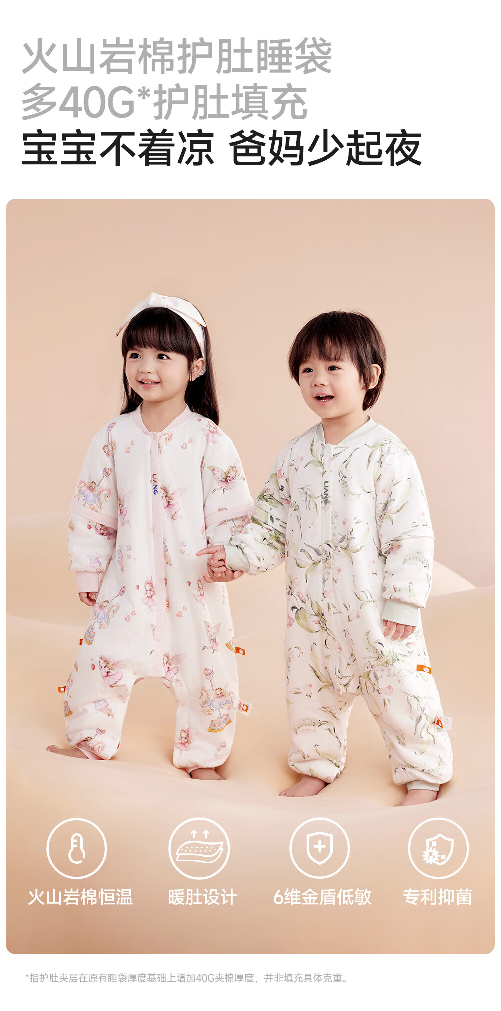 良良(liangliang)[25年新品]婴儿睡袋火山棉恒温儿童乖肚肚秋冬宝宝分腿防踢被子 厚夹棉【适合6-10℃】风铃草 XL(建议身高90-105cm)