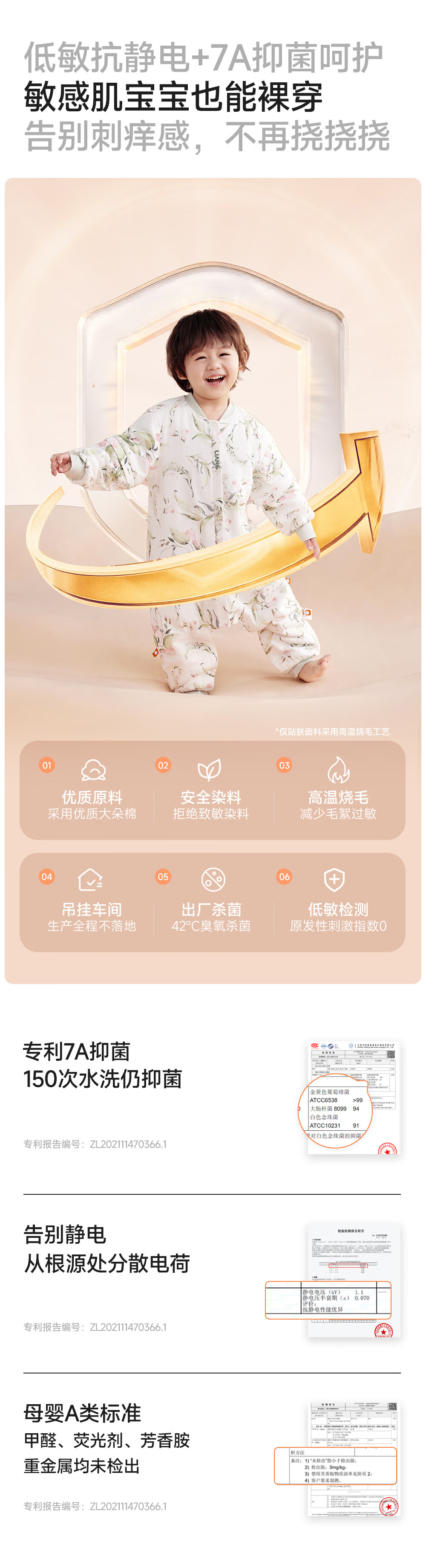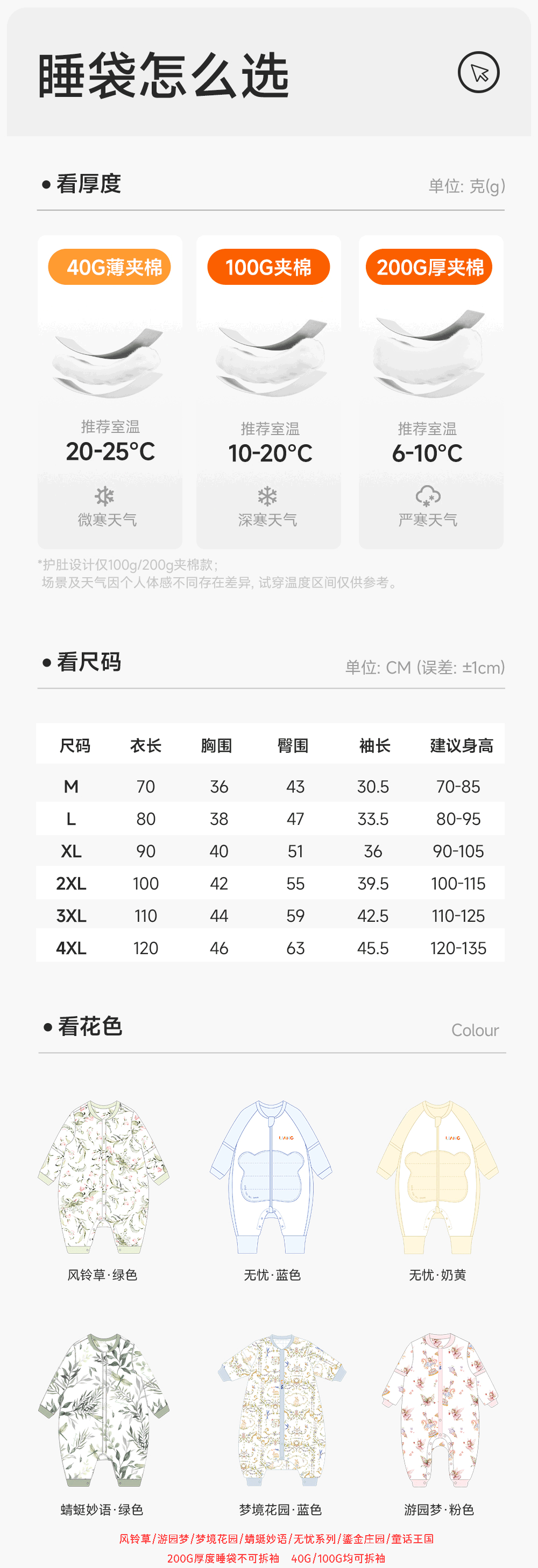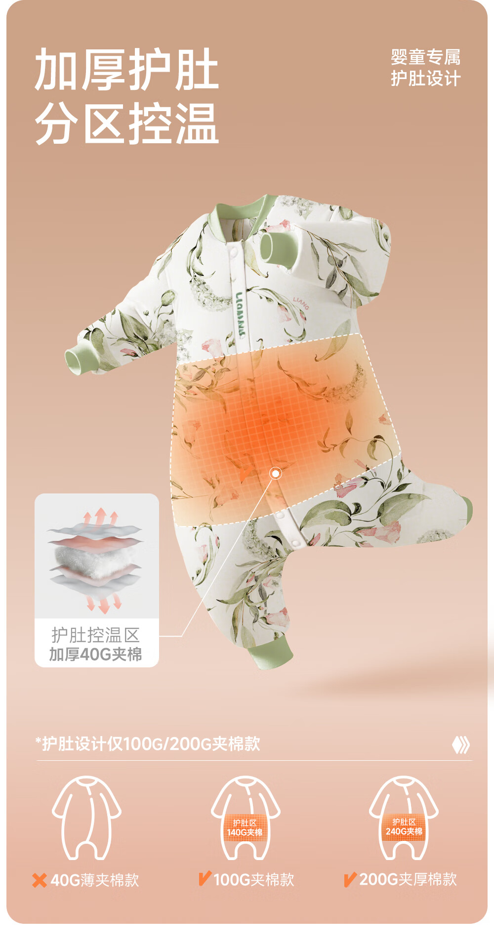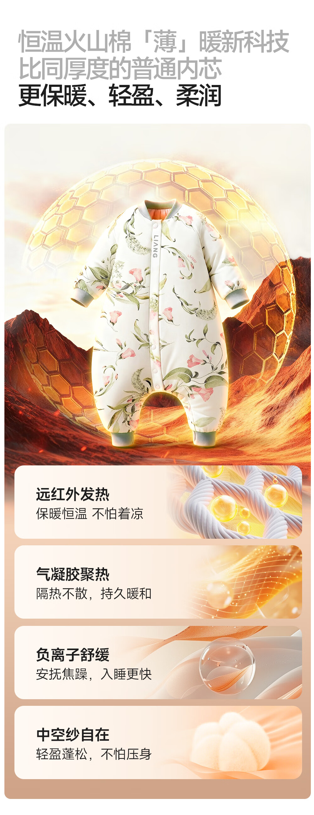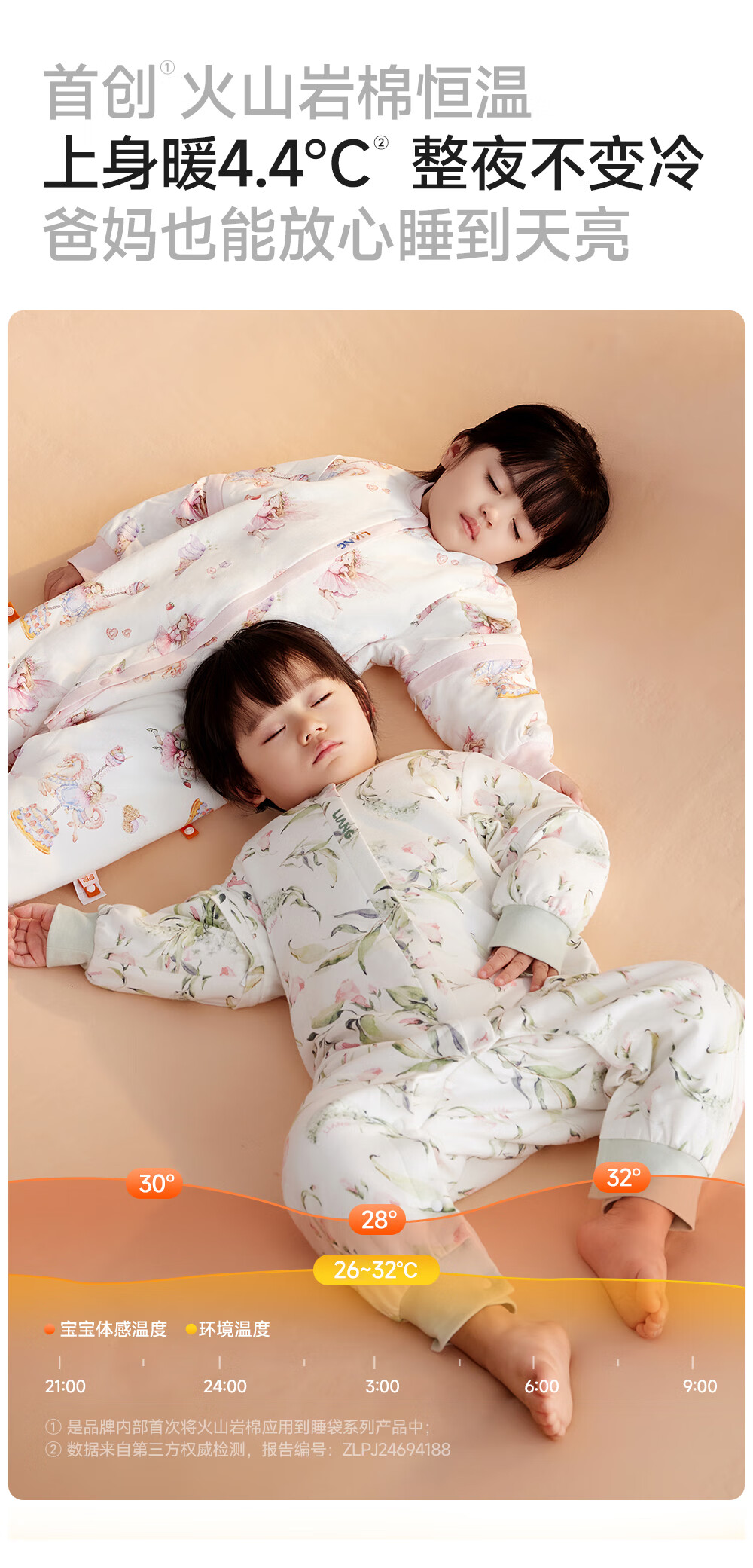 良良(liangliang)[25年新品]婴儿睡袋火山棉恒温儿童乖肚肚秋冬宝宝分腿防踢被子 厚夹棉【适合6-10℃】风铃草 XL(建议身高90-105cm)
