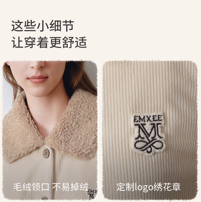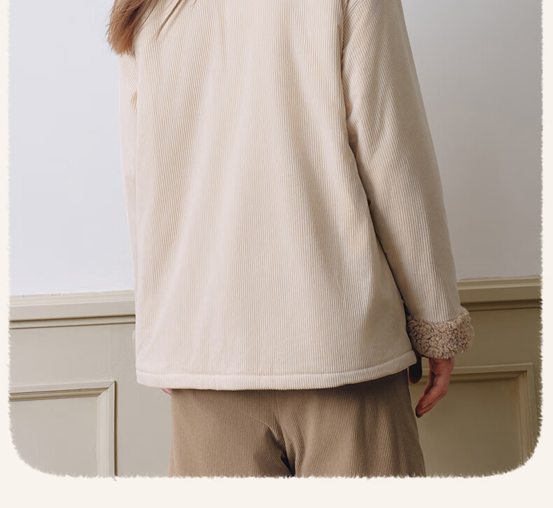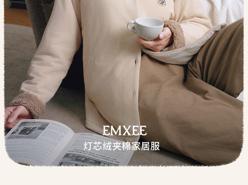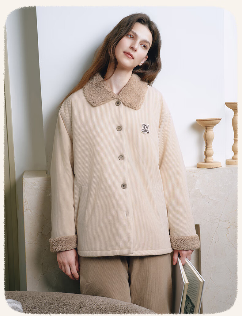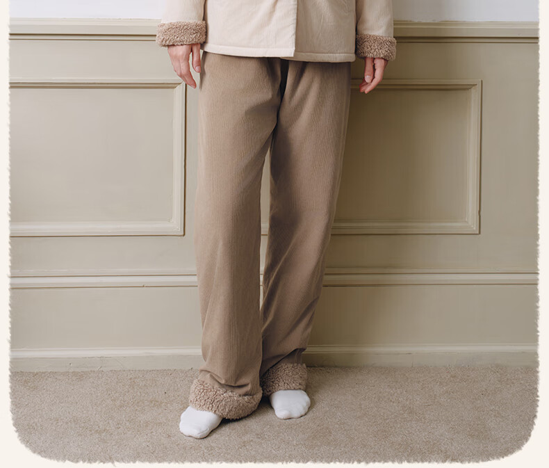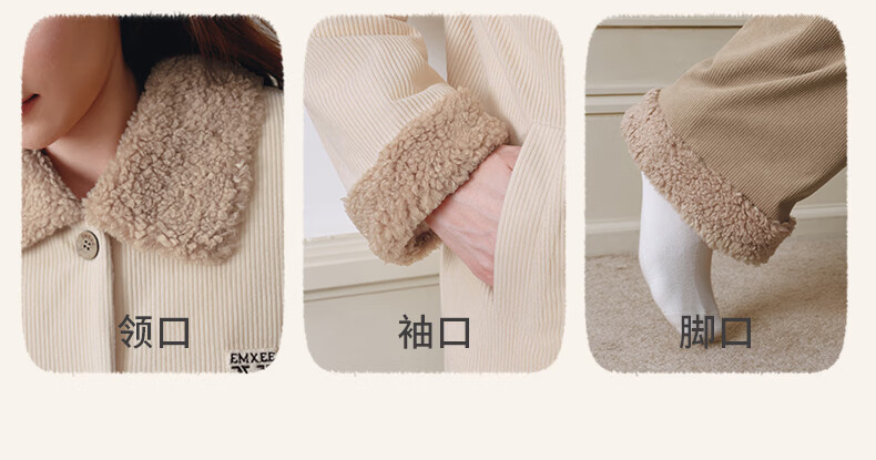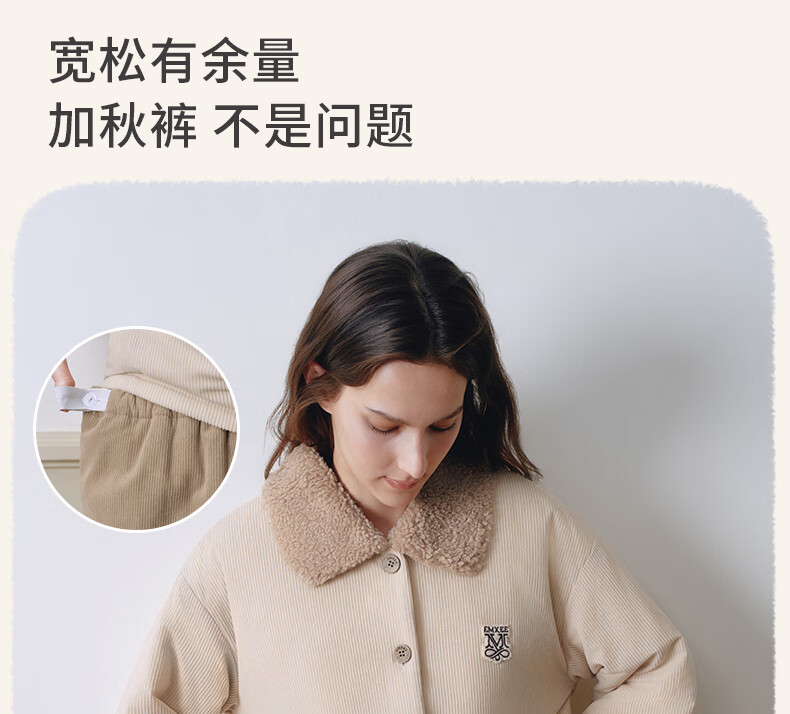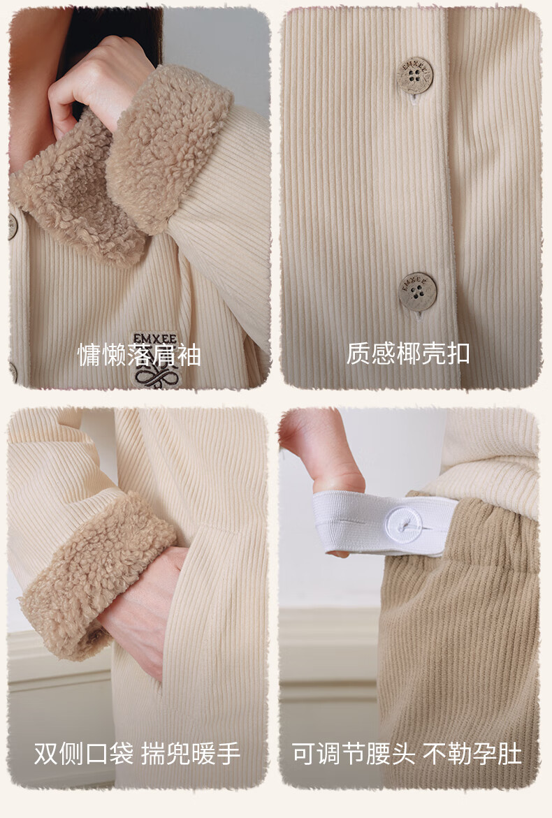 嫚熙(EMXEE)新品秋冬灯芯绒月子服可外出夹棉睡衣孕妇保暖加厚加绒产妇家居服 杏仁奶白 M(适穿120斤以下)