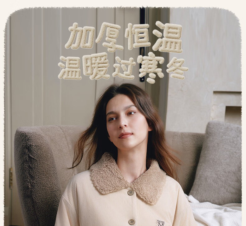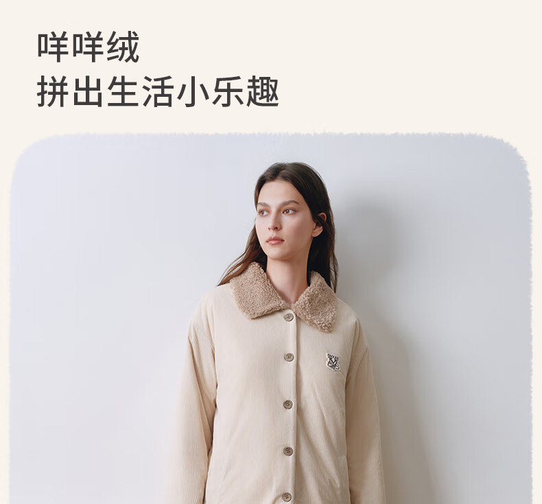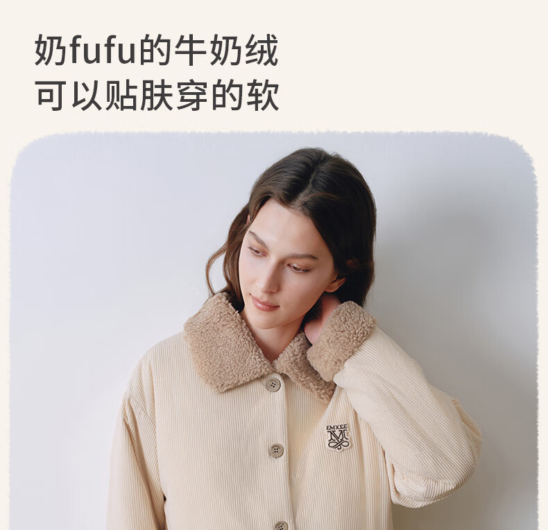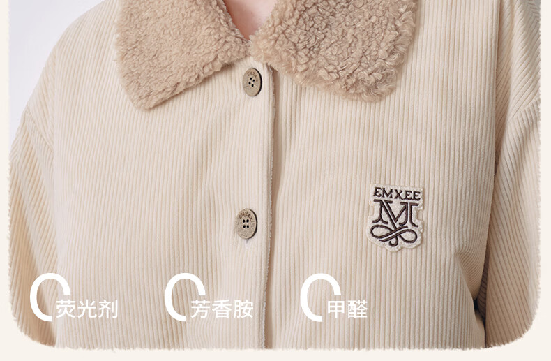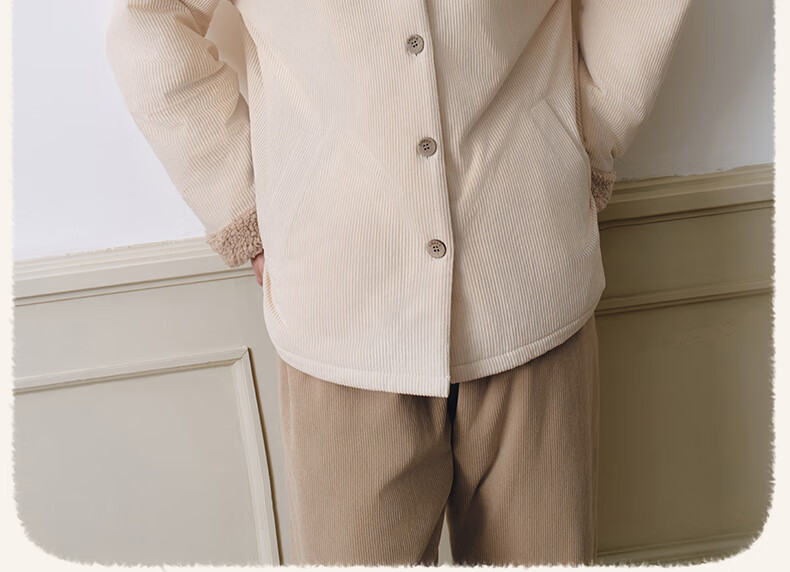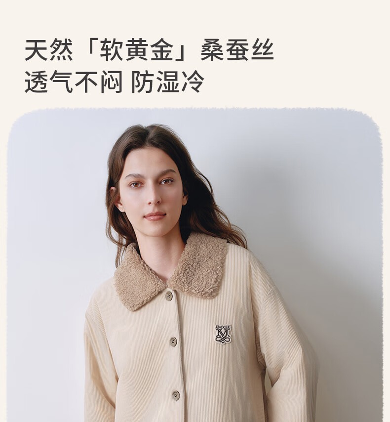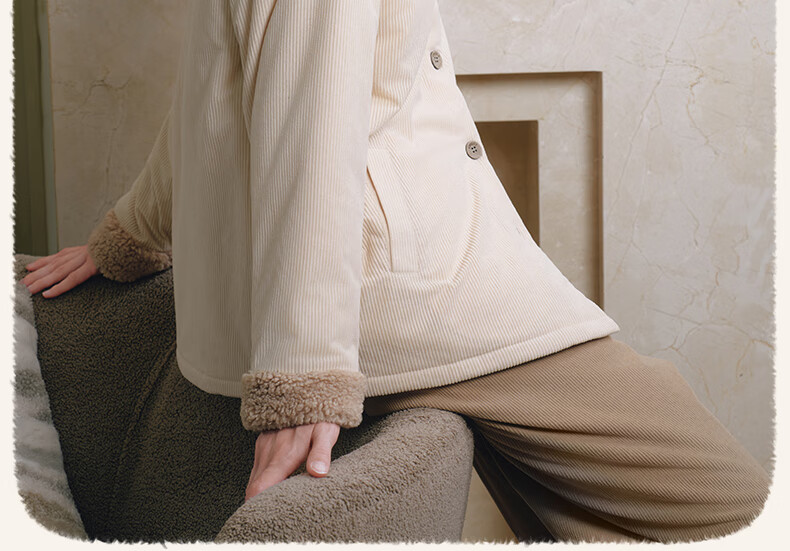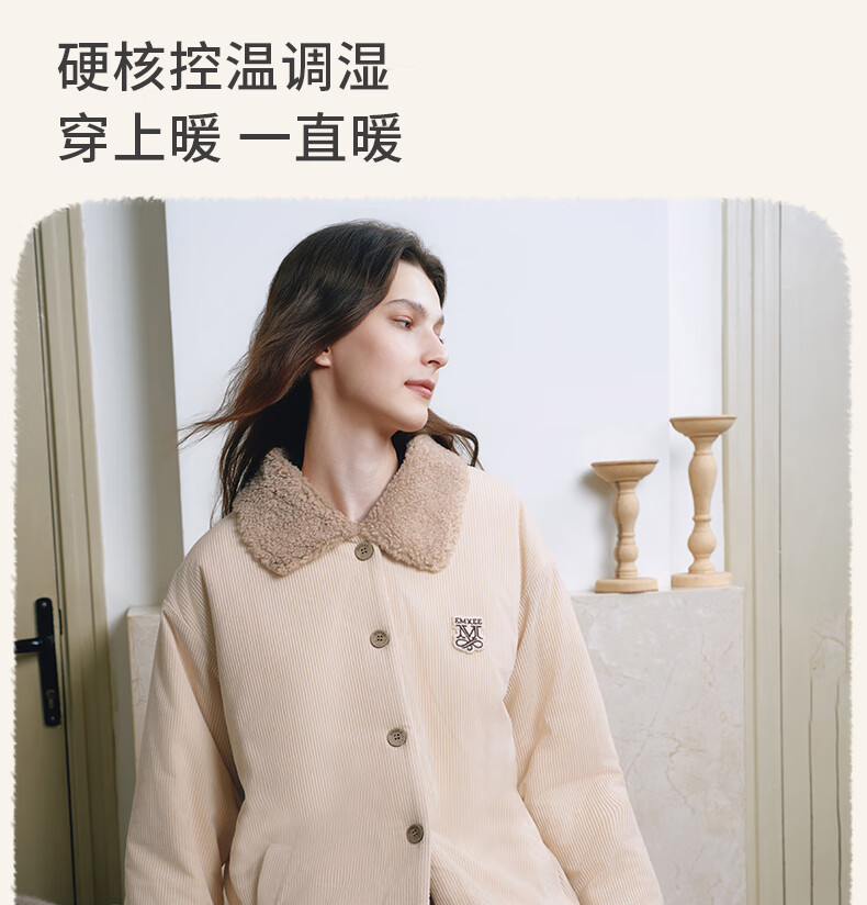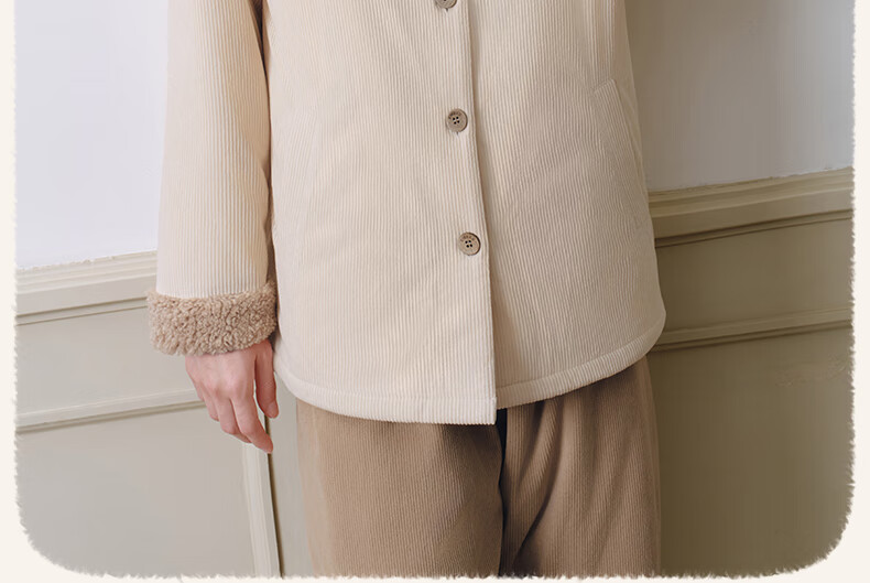 嫚熙(EMXEE)新品秋冬灯芯绒月子服可外出夹棉睡衣孕妇保暖加厚加绒产妇家居服 杏仁奶白 M(适穿120斤以下)