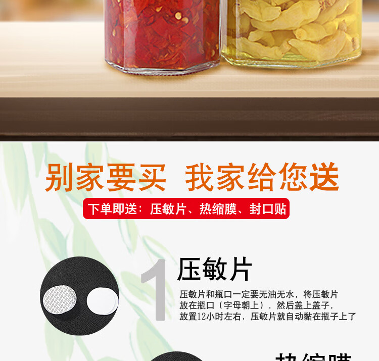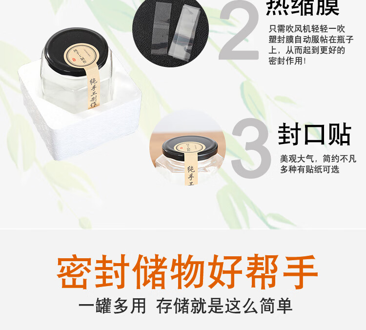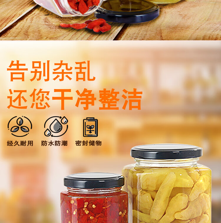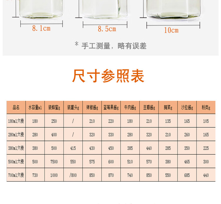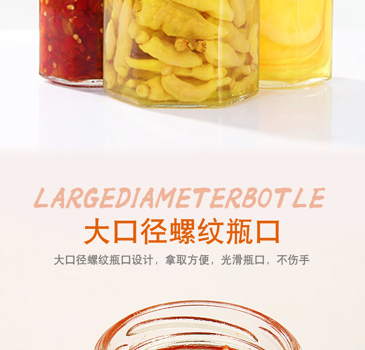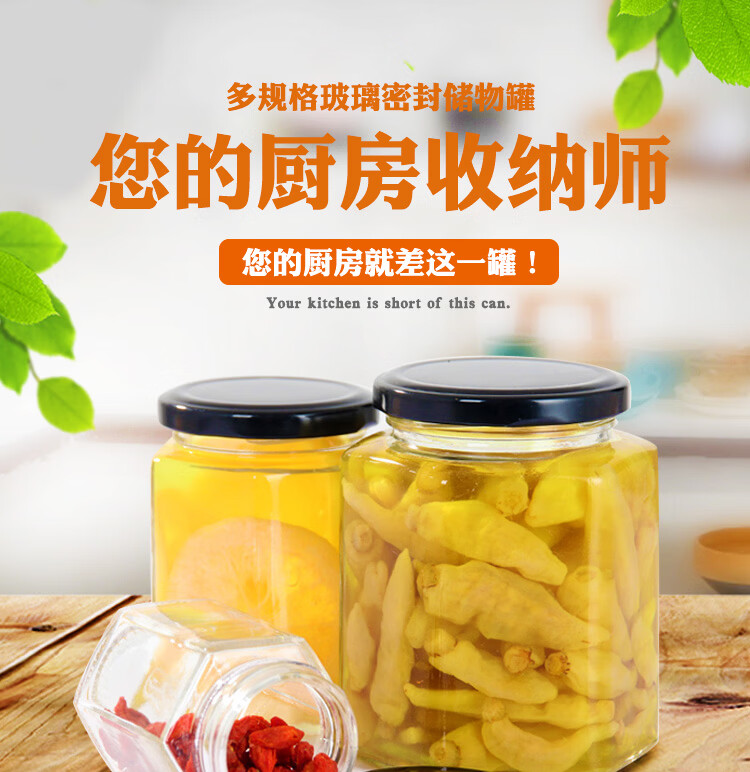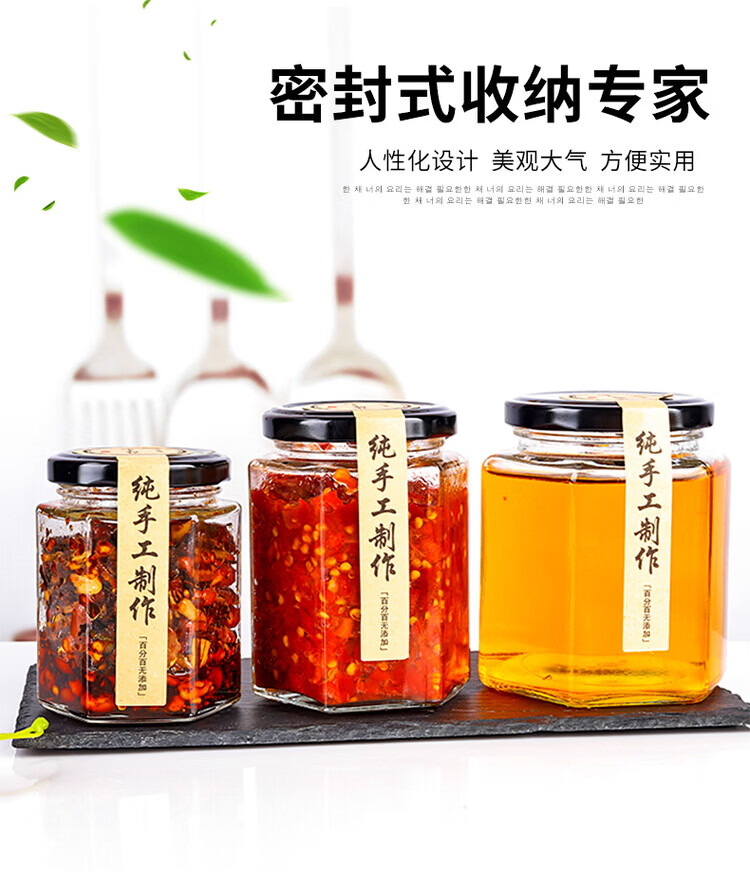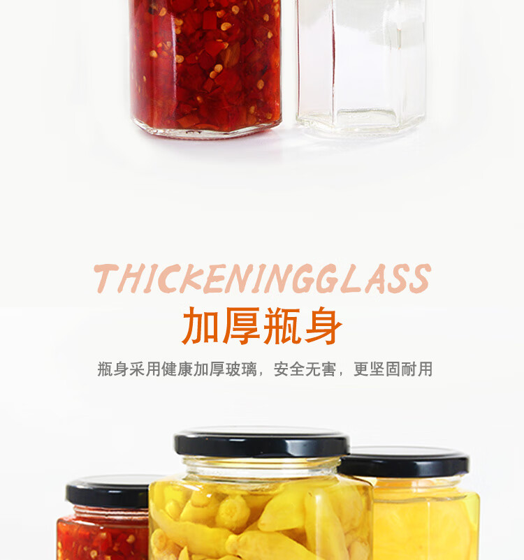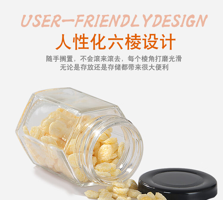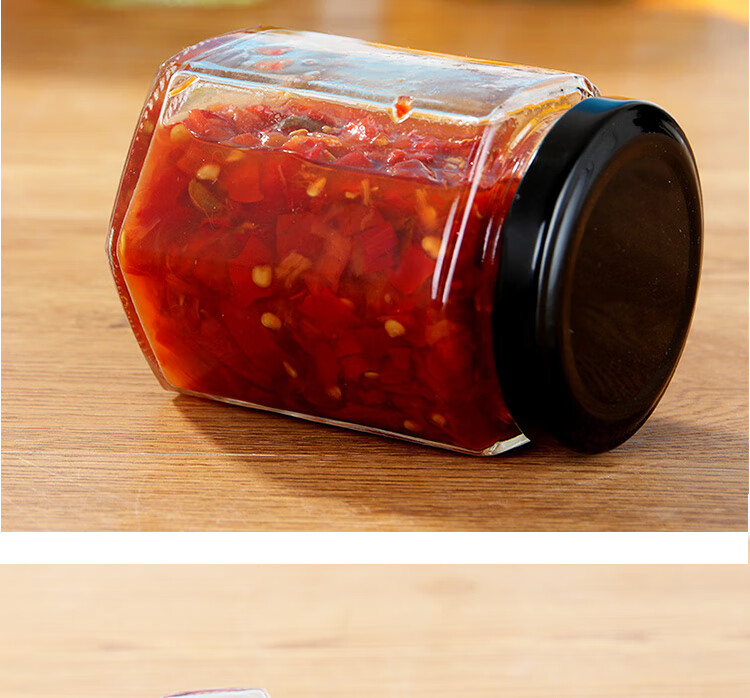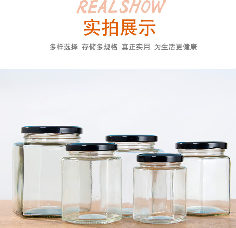 简漾玻璃罐带盖食品级六棱果酱辣椒酱密封罐蜂蜜柠檬膏小六角玻璃瓶子 特价活动1个500毫升送贴纸+热缩膜+压敏垫