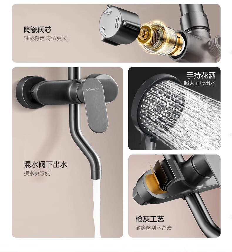 万和淋浴花洒套装精铜主体枪灰增压手持花洒全套喷头浴室淋浴器新款