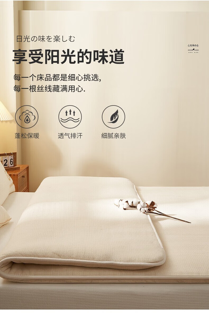 浪莎(langsha)新疆棉花褥子床垫子1.5x2米棉絮褥床被褥垫被褥宿舍单人软垫子被 棉花床垫-约4斤【可铺可盖】 200cm * 150cm 【双人床适用】