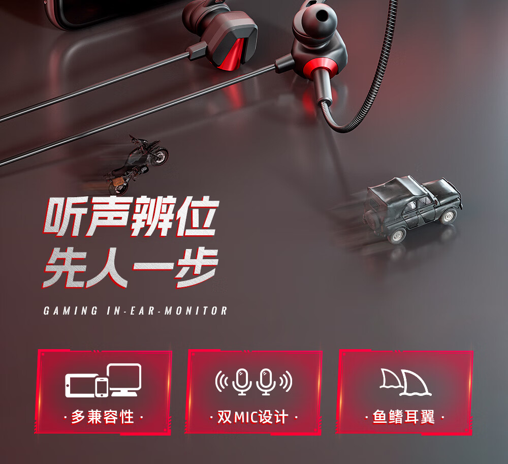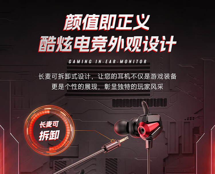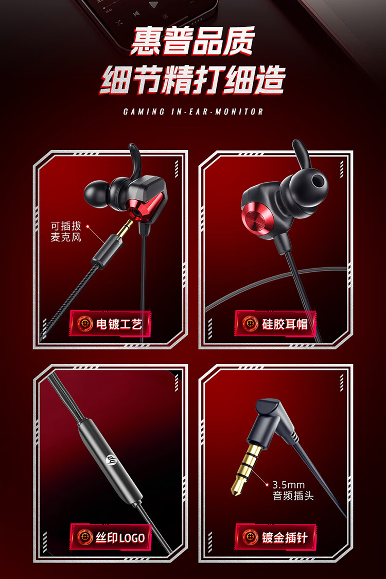 惠普(HP)游戏有线耳机入耳式手游电竞吃鸡拔插耳麦隔音降噪手机台式笔记本电脑麦克风二合一3.5mm圆孔 【暗夜红】