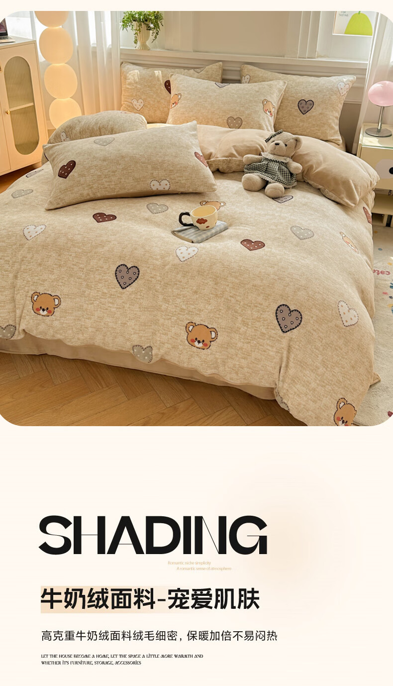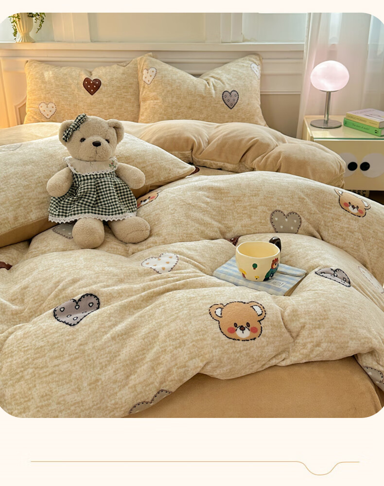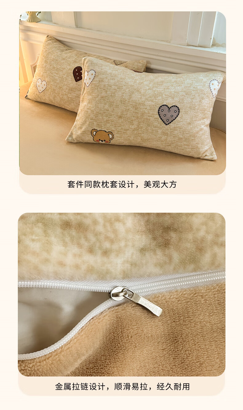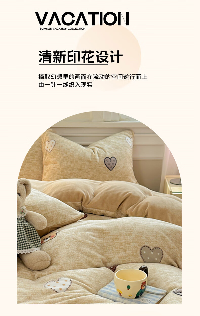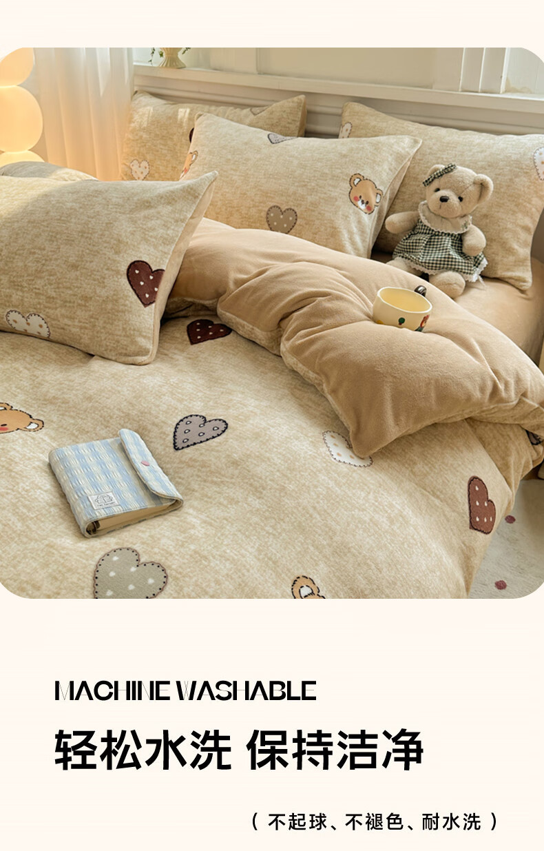 猫人(MiiOW)卡通牛奶绒床上四件套秋冬加厚珊瑚绒床单被套罩学生宿舍床上用品 爱心蝴蝶结【软糯保暖】 1.2m 床单款 三件套-150x200cm被套