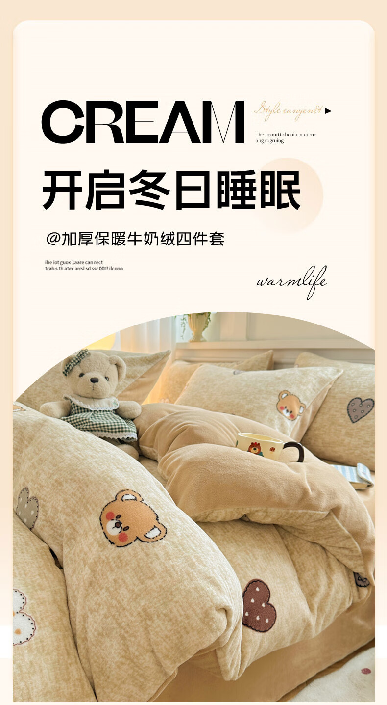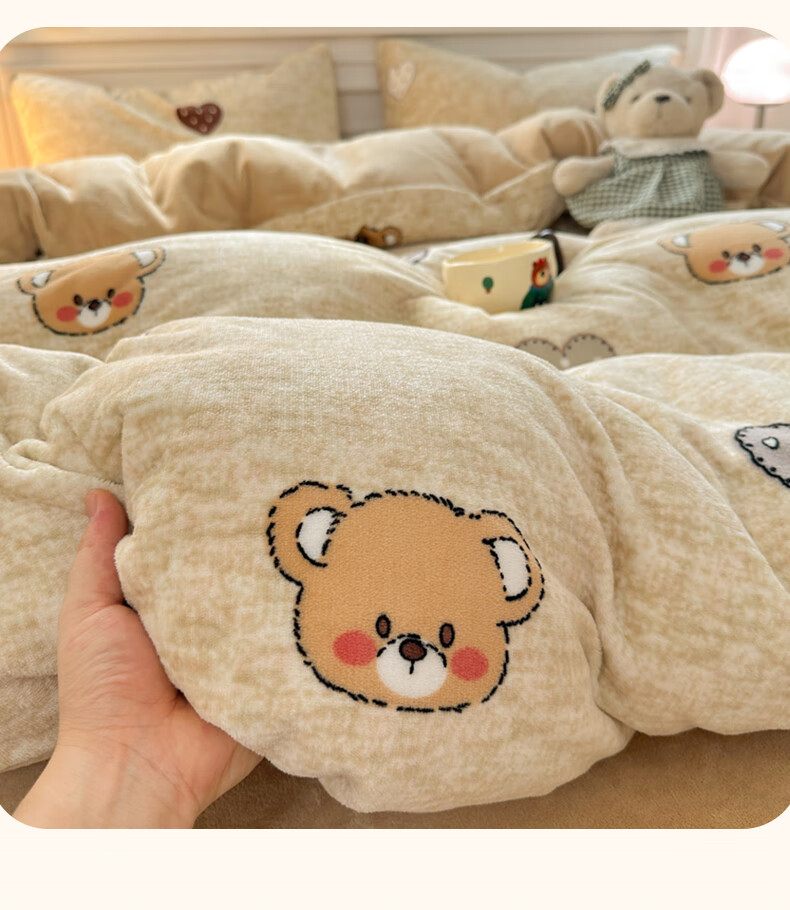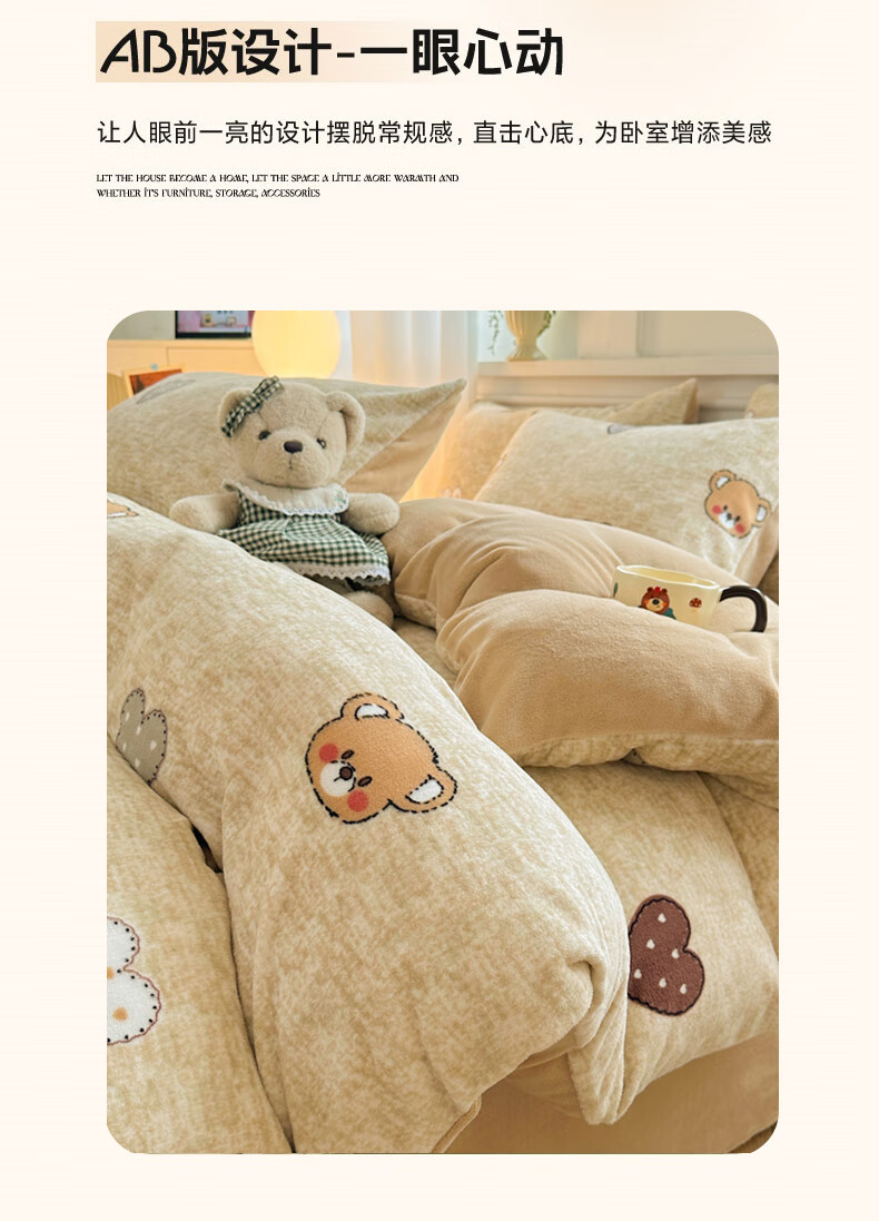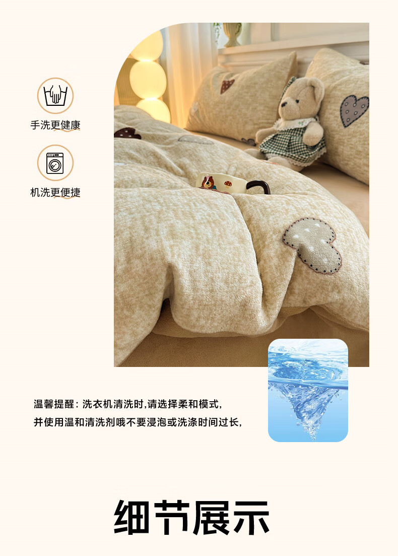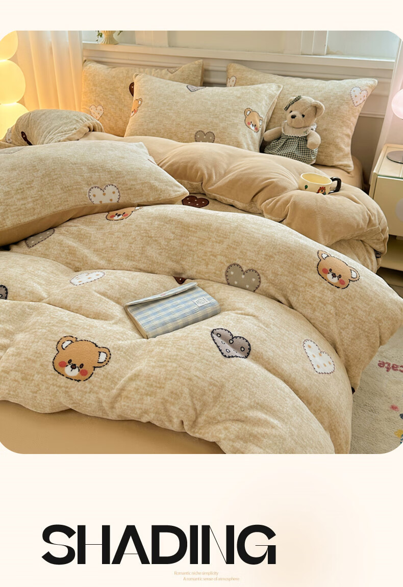猫人(MiiOW)卡通牛奶绒床上四件套秋冬加厚珊瑚绒床单被套罩学生宿舍床上用品 爱心蝴蝶结【软糯保暖】 1.2m 床单款 三件套-150x200cm被套