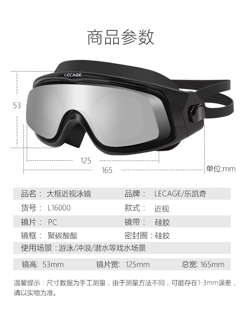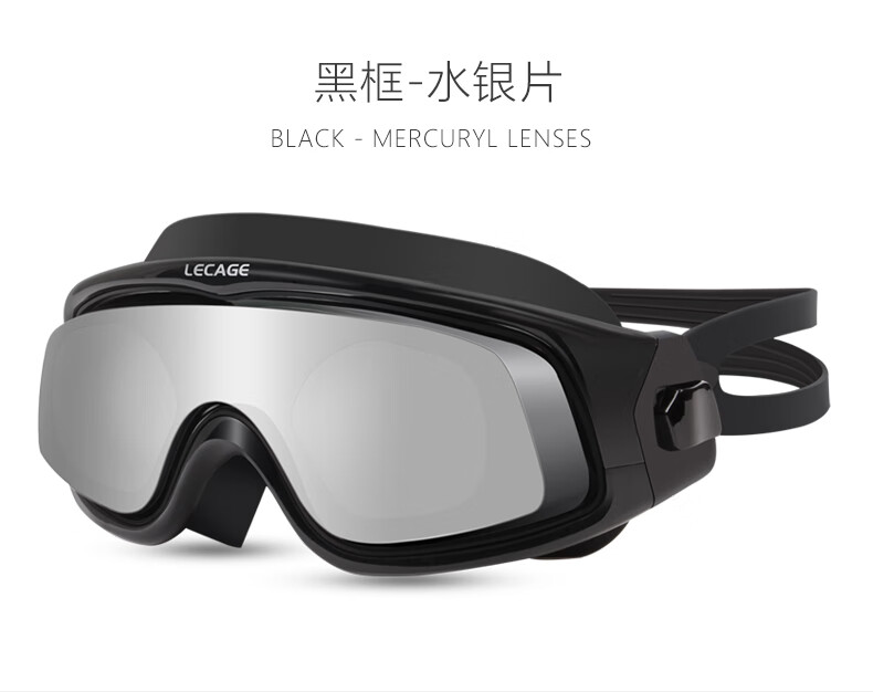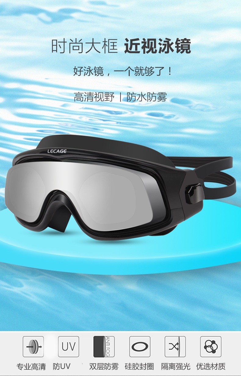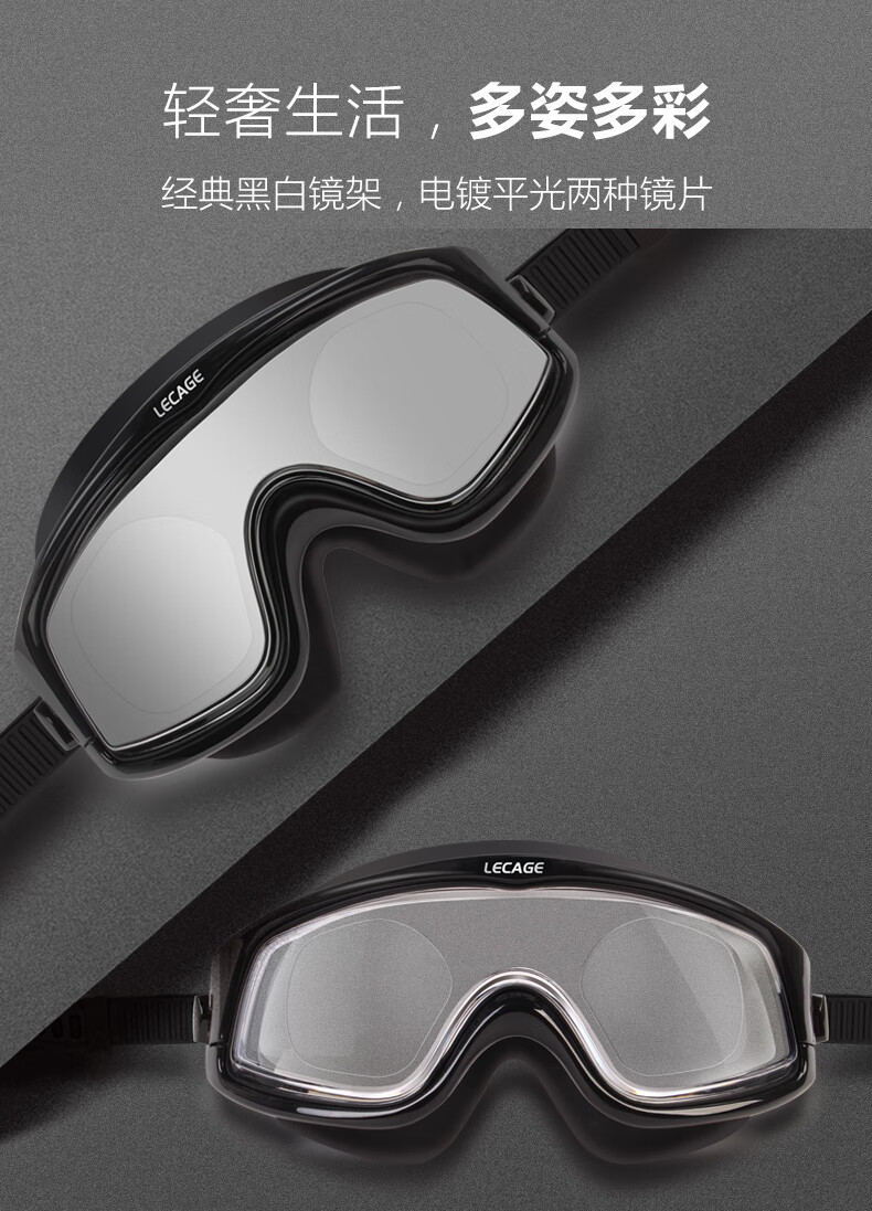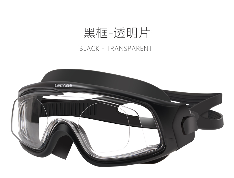 乐凯奇专业近视泳镜高清舒适防水防雾游泳眼镜男女大框带度数近视镜 黑框透明片(近视400度)