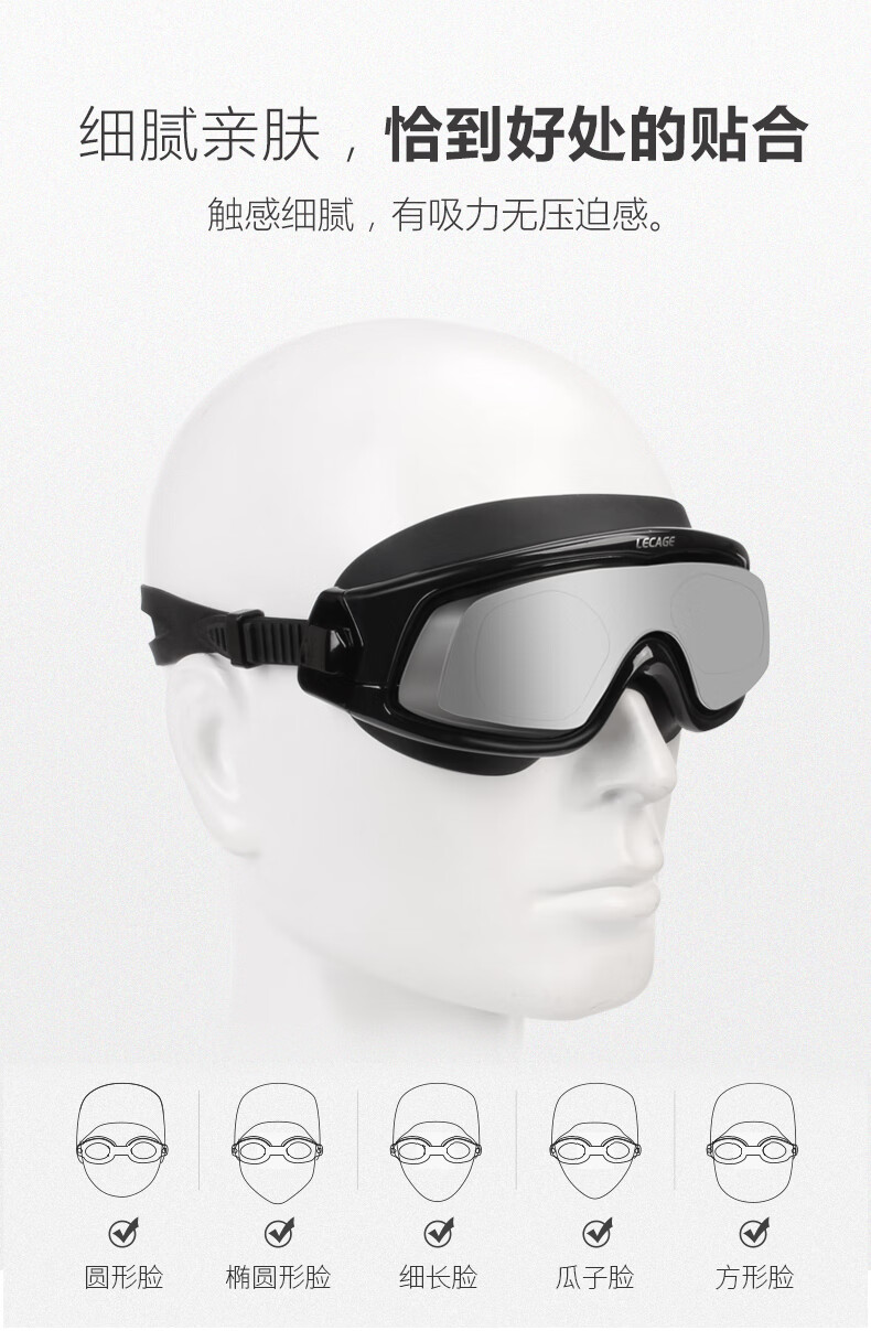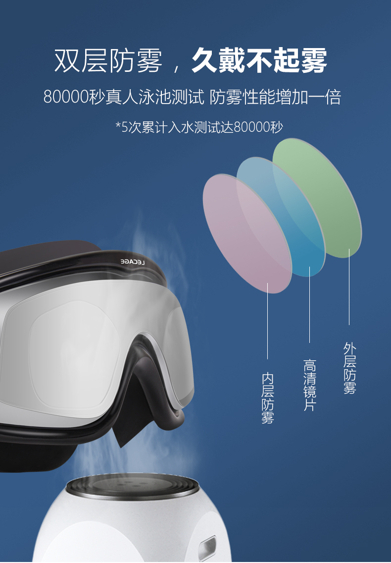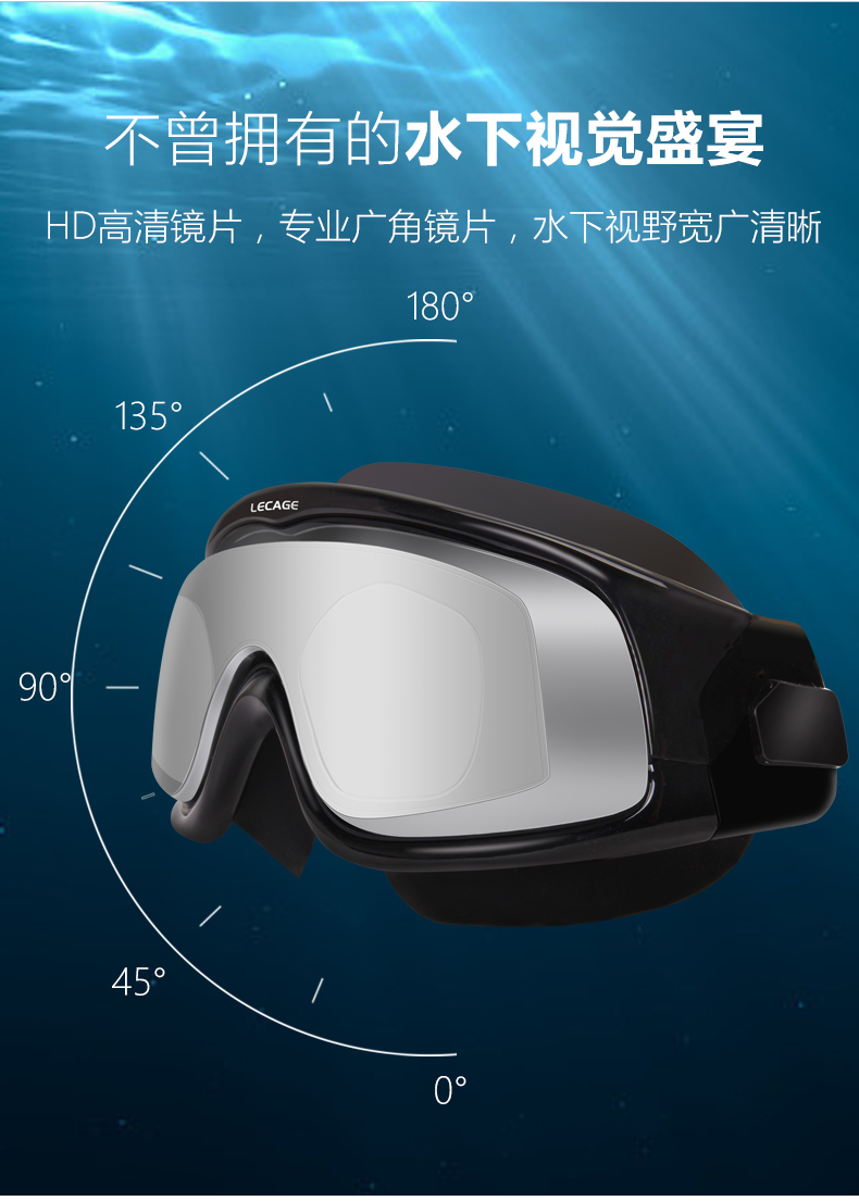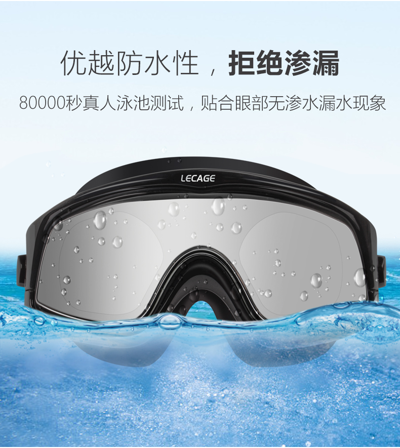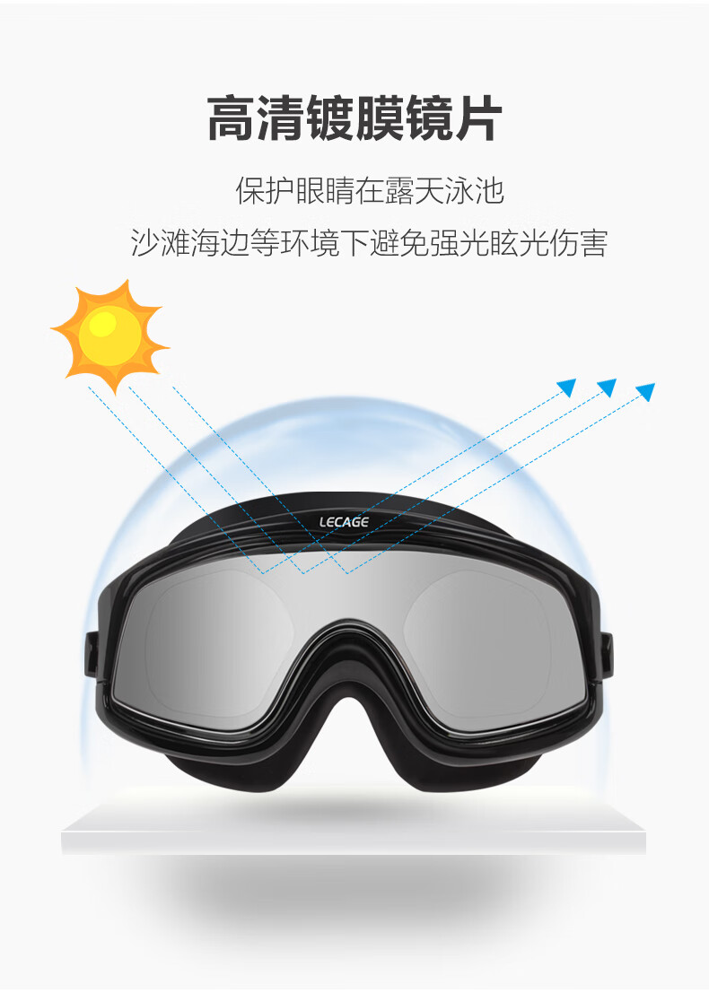 乐凯奇专业近视泳镜高清舒适防水防雾游泳眼镜男女大框带度数近视镜 黑框透明片(近视400度)