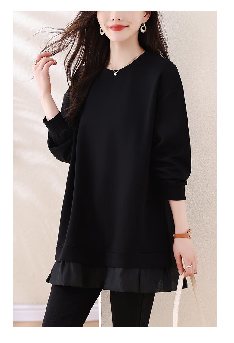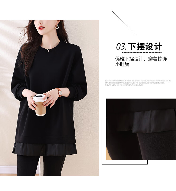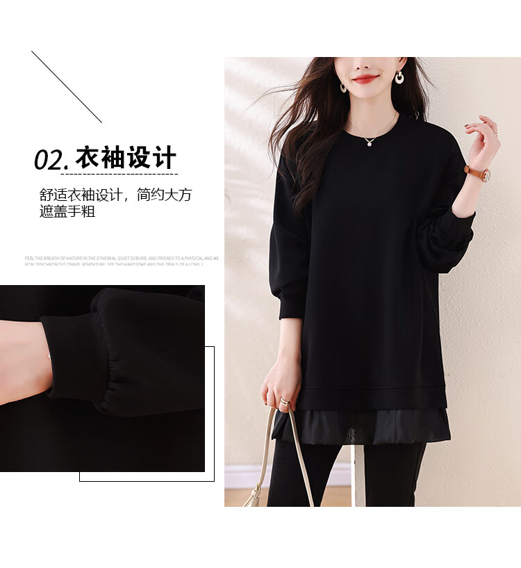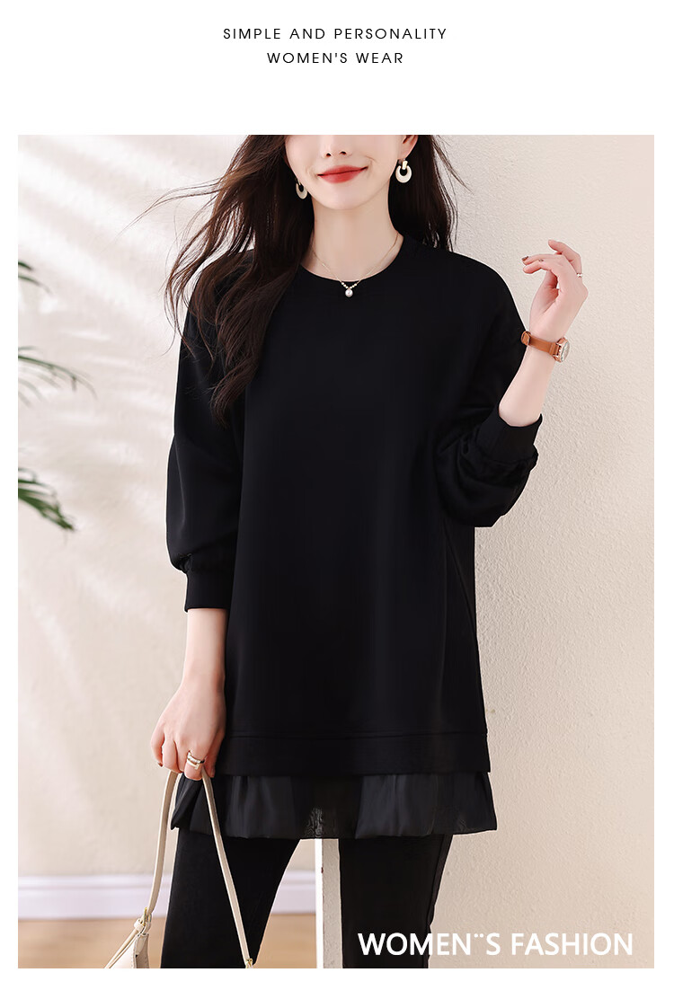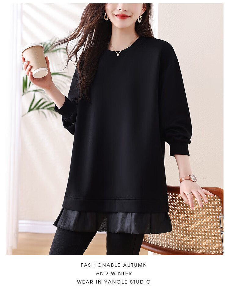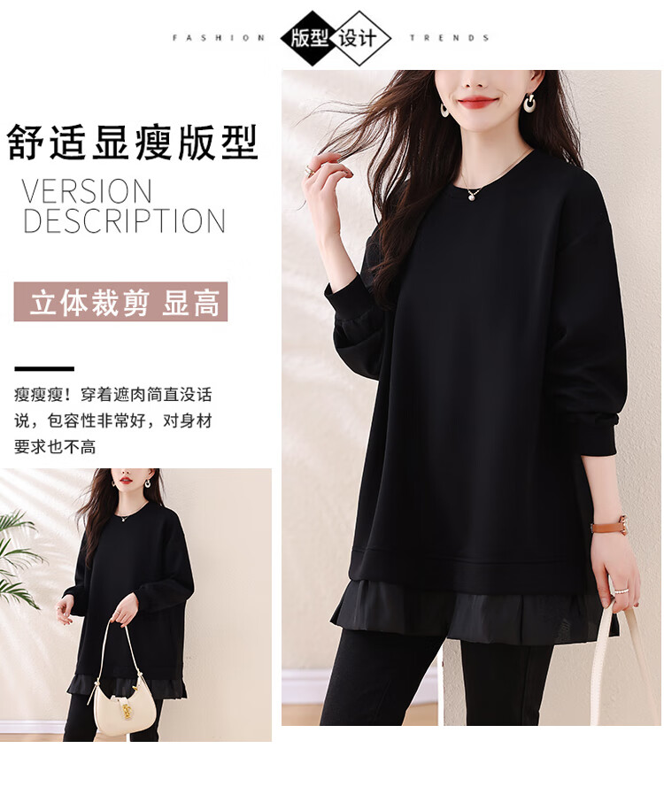 莎妮朵罗大码女装卫衣女宽松胖mm秋装新款中长款微胖遮肚T恤女上衣20490 黑色 L 建议100-115斤穿着