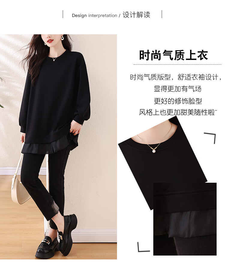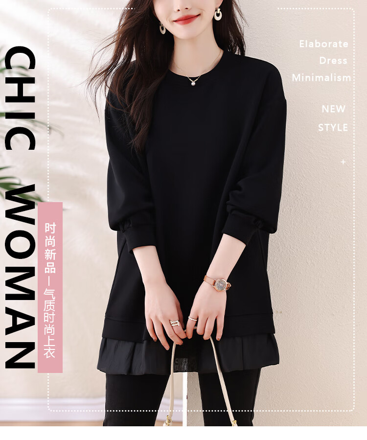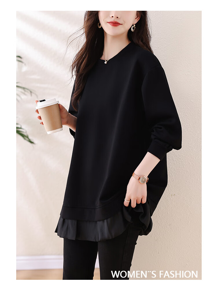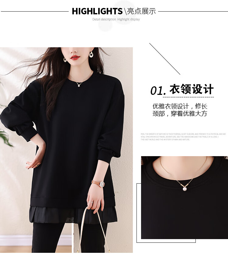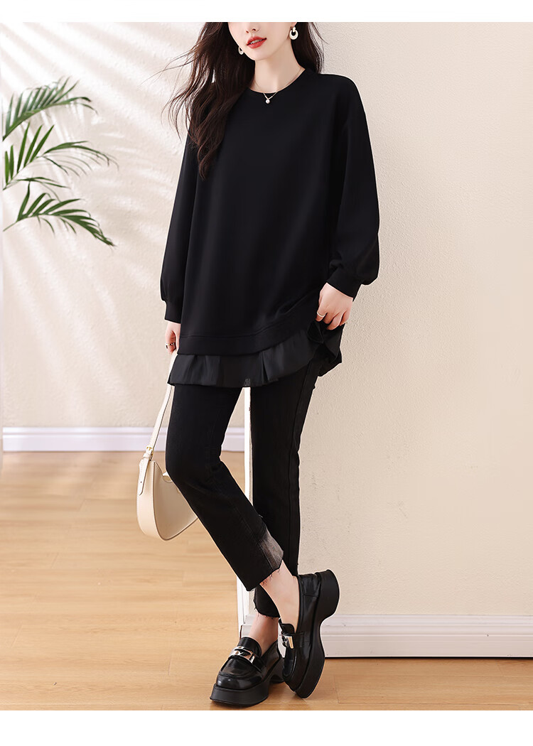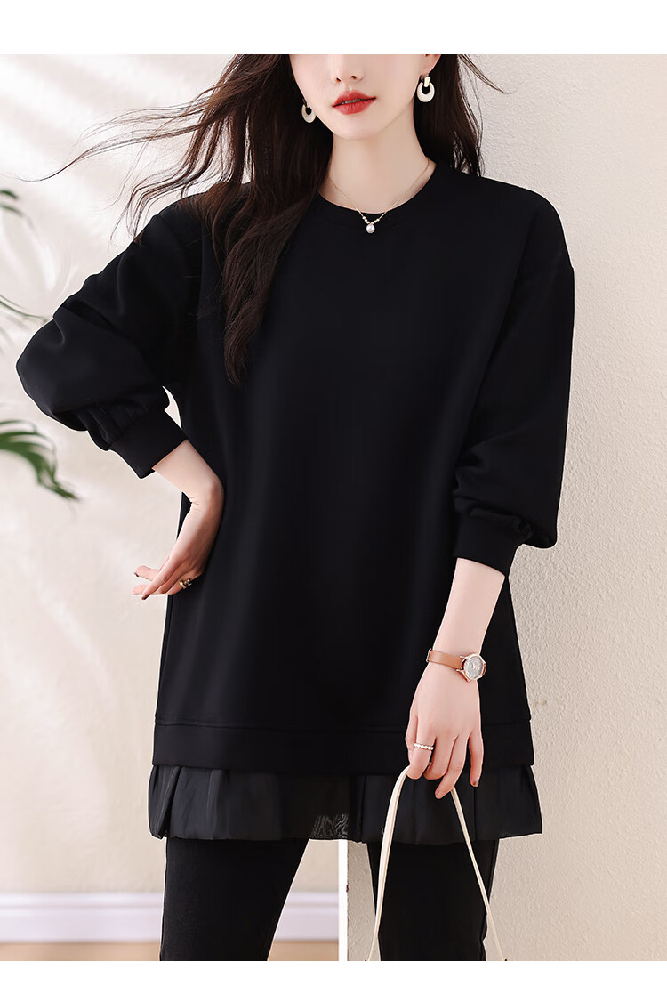 莎妮朵罗大码女装卫衣女宽松胖mm秋装新款中长款微胖遮肚T恤女上衣20490 黑色 L 建议100-115斤穿着