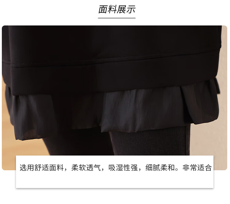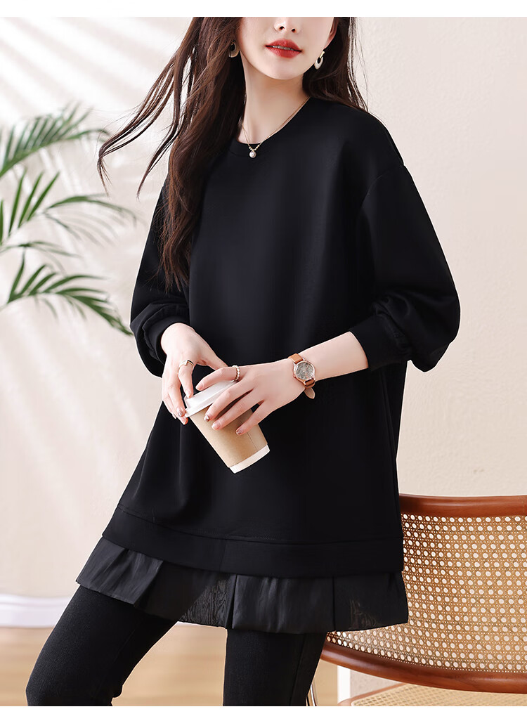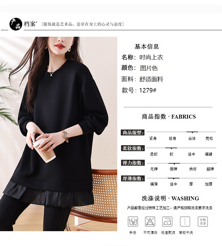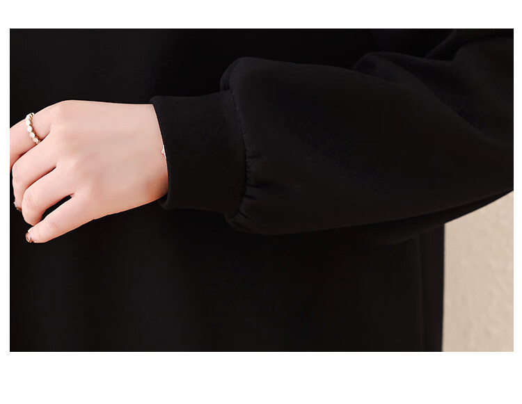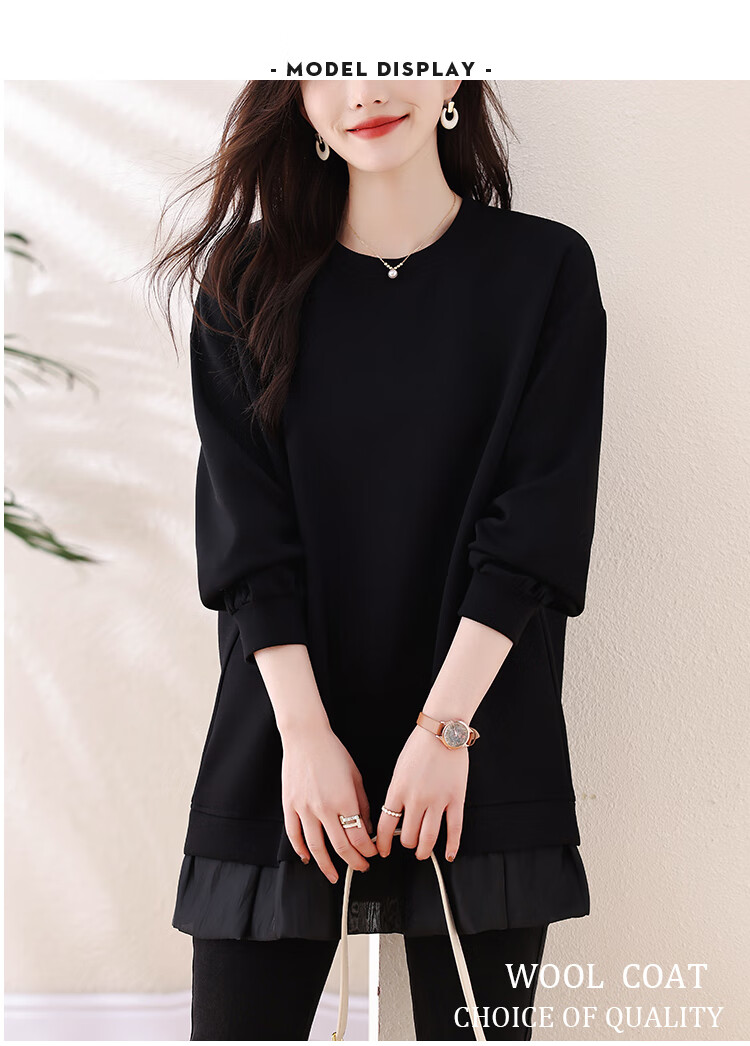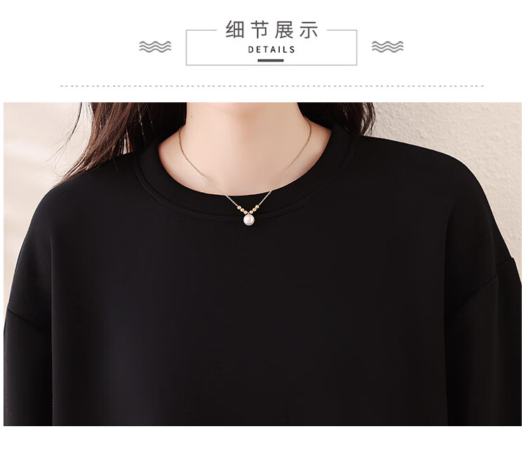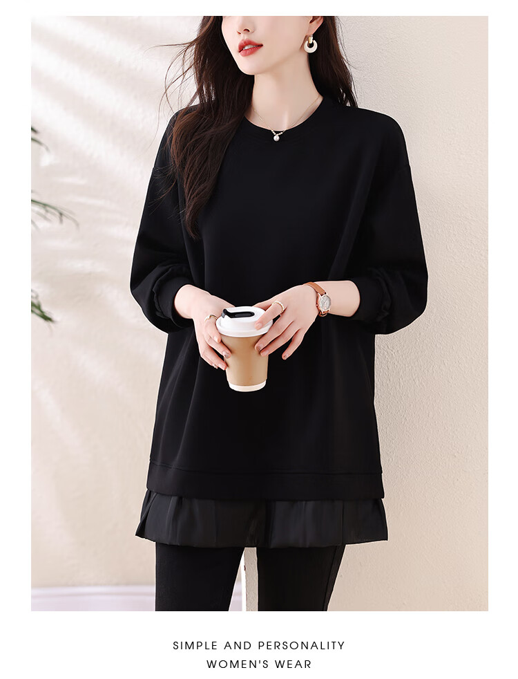 莎妮朵罗大码女装卫衣女宽松胖mm秋装新款中长款微胖遮肚T恤女上衣20490 黑色 L 建议100-115斤穿着