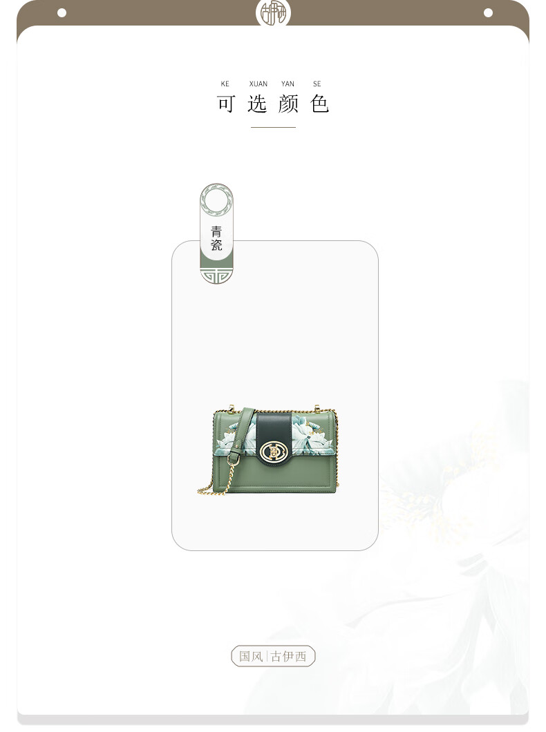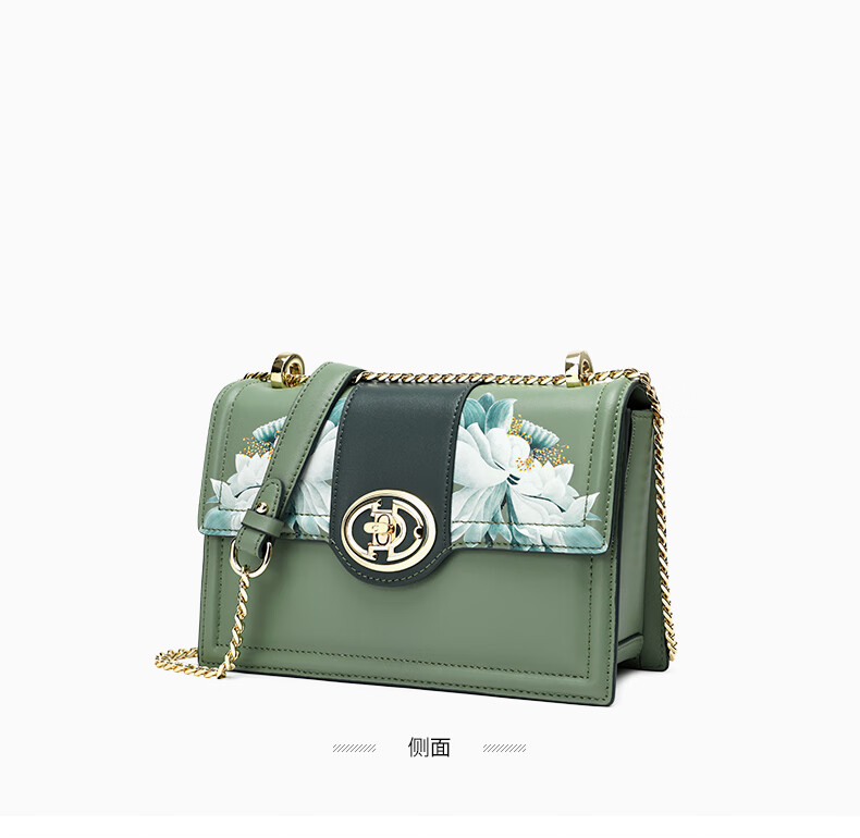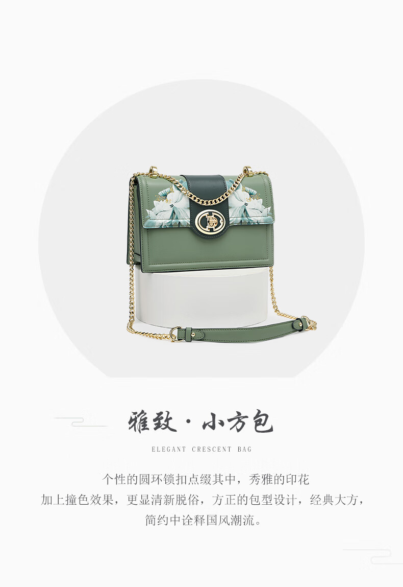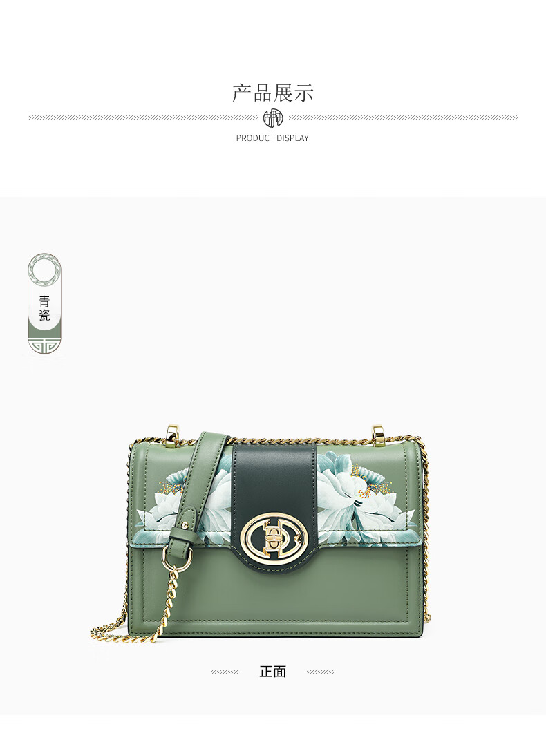 古伊西女包新款中国风优雅绣花小方包牛皮链条包母亲节生日礼物实用大气 青瓷+送礼品袋+代写贺卡