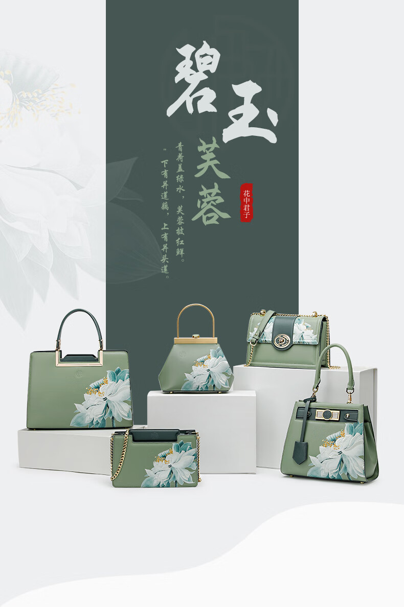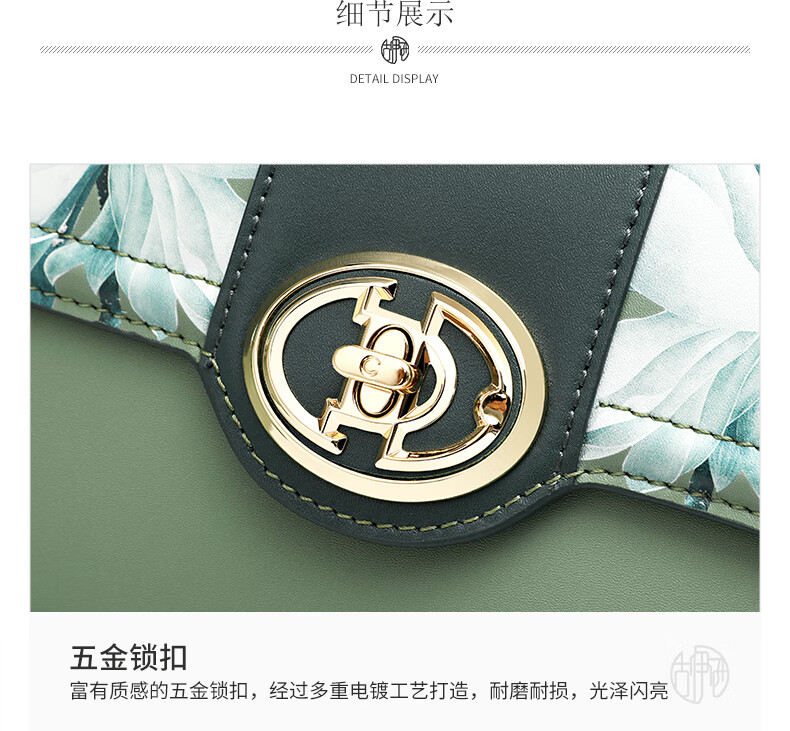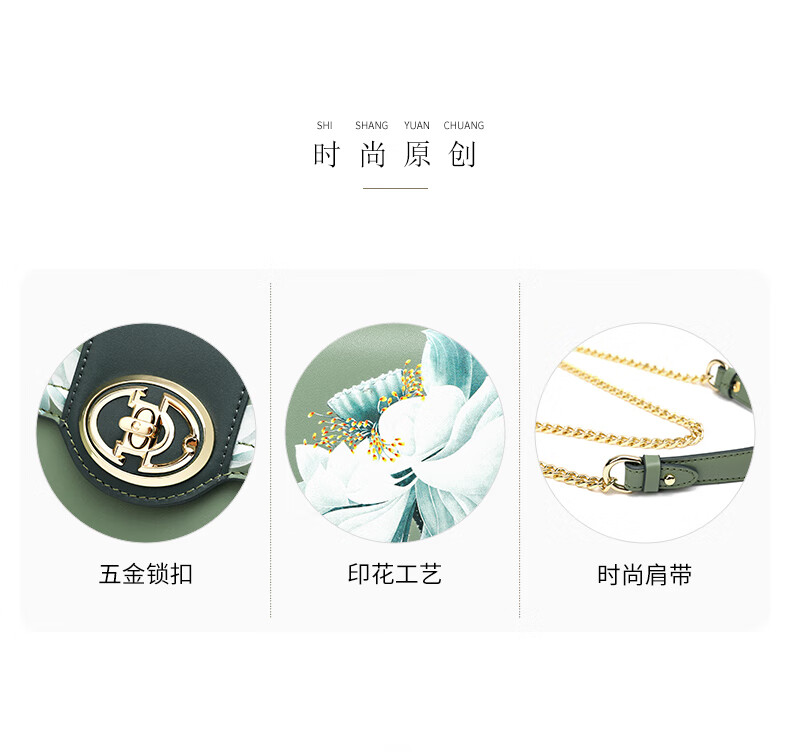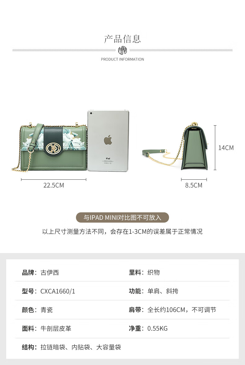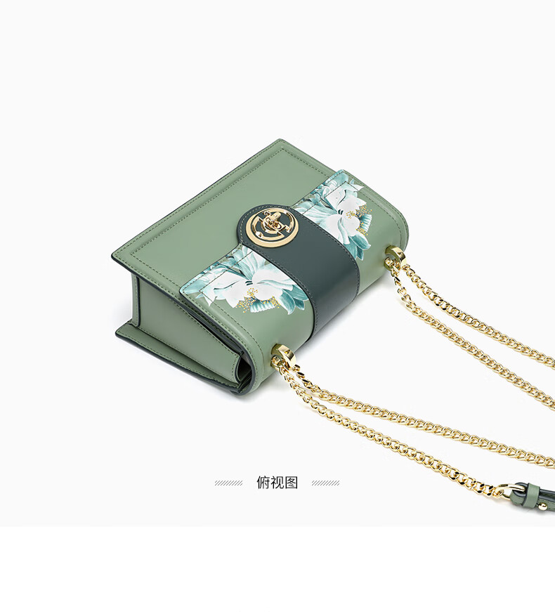 古伊西女包新款中国风优雅绣花小方包牛皮链条包母亲节生日礼物实用大气 青瓷+送礼品袋+代写贺卡