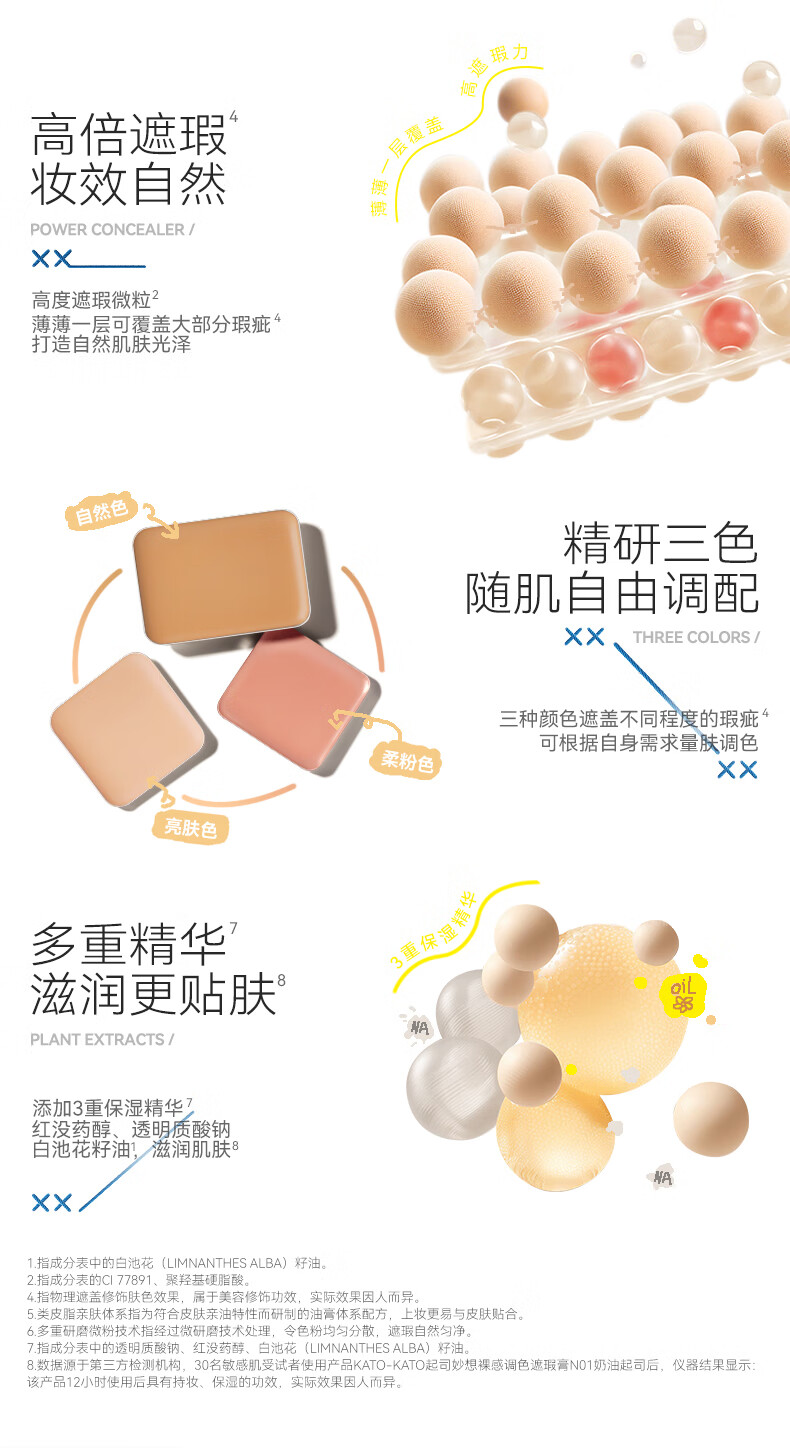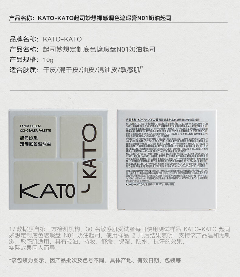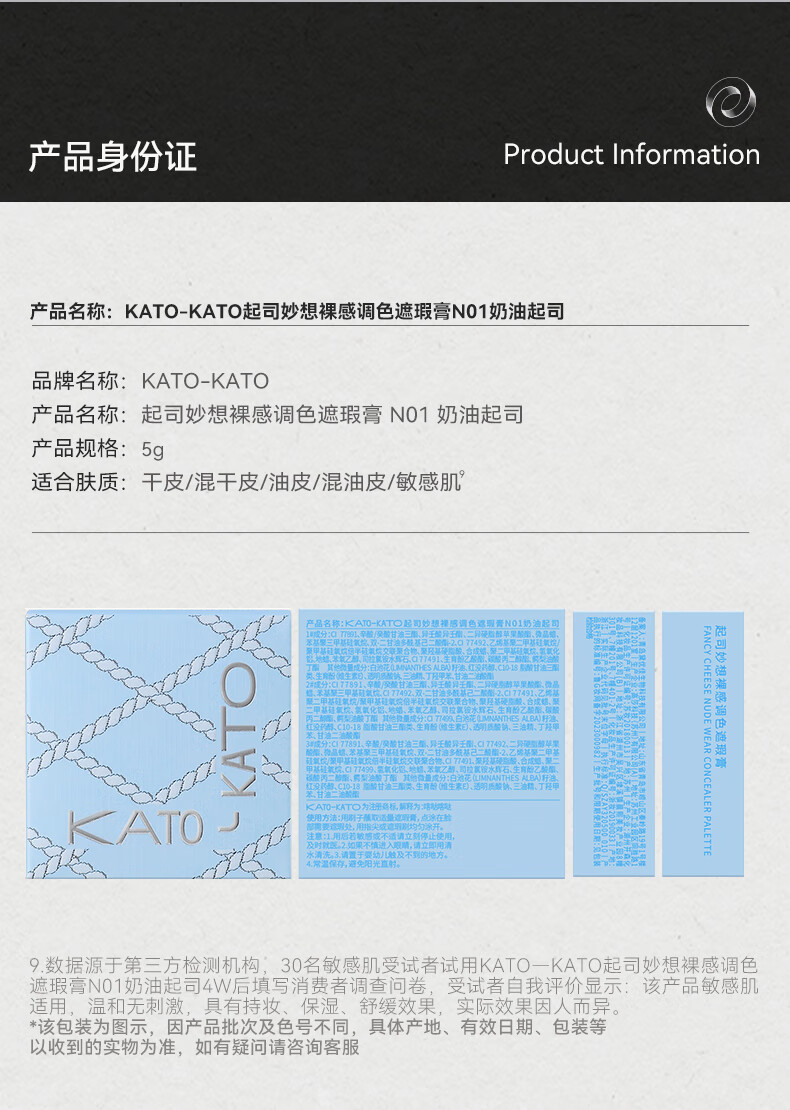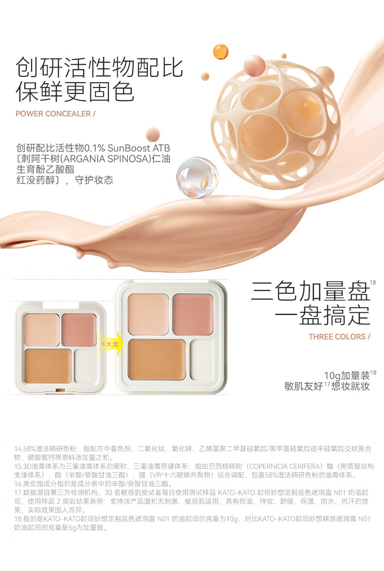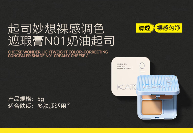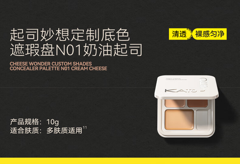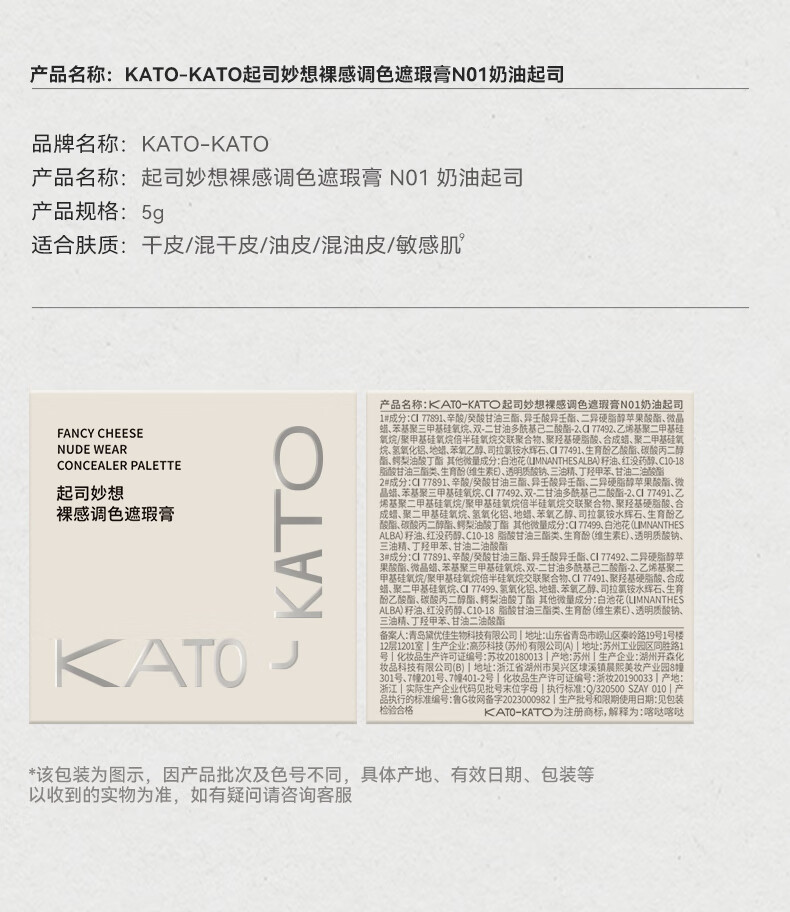 KATO-KATO【张康乐同款】三色遮瑕膏遮瑕盘遮黑眼圈痘印斑点生日礼物送女友 【主推】N01奶油起司3色-自然色