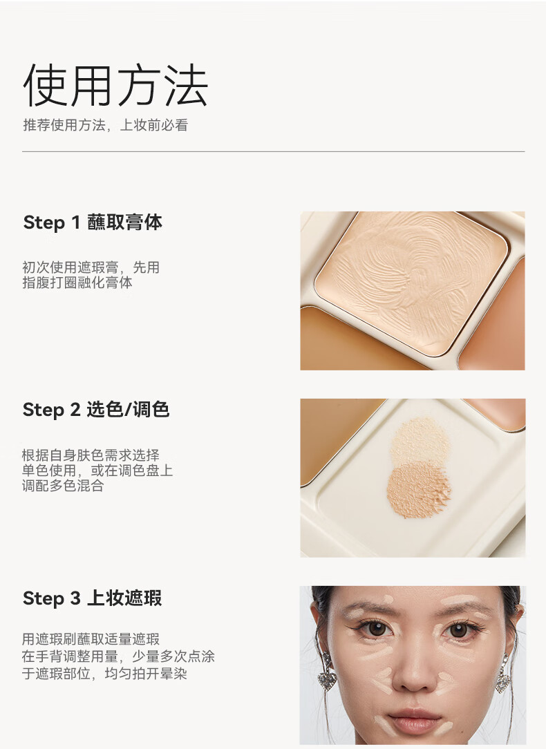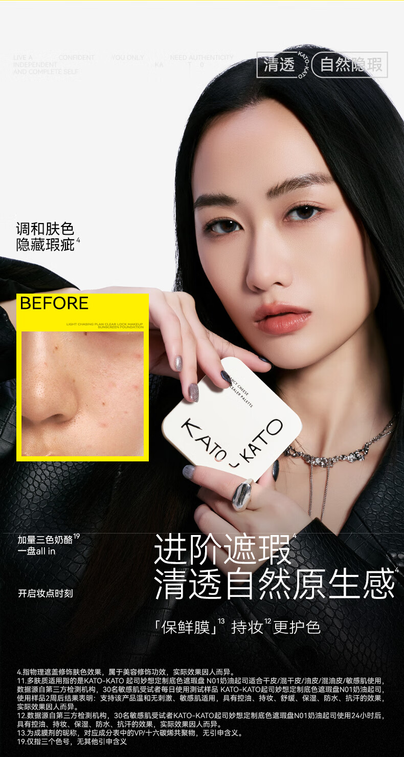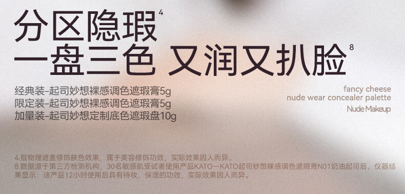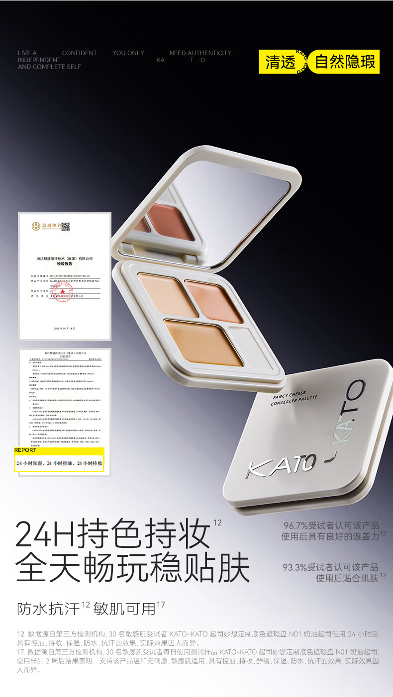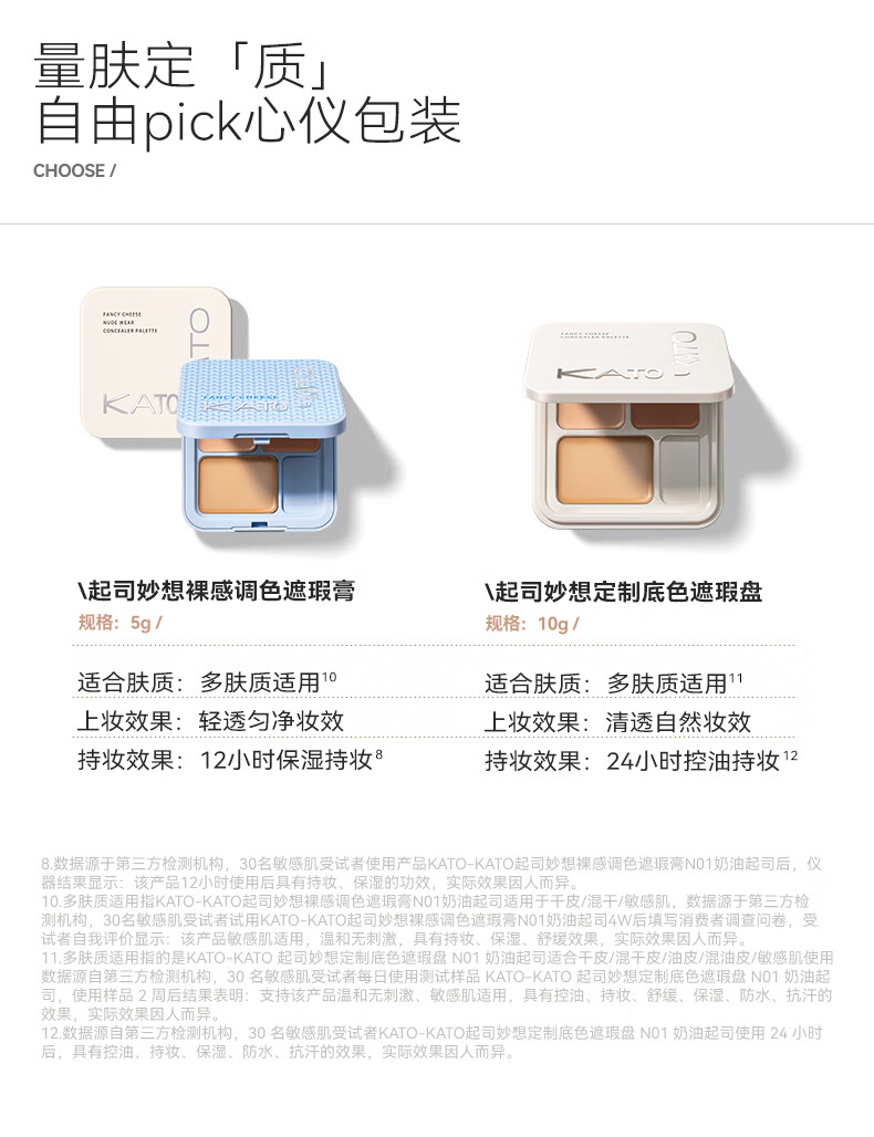 KATO-KATO【张康乐同款】三色遮瑕膏遮瑕盘遮黑眼圈痘印斑点生日礼物送女友 【主推】N01奶油起司3色-自然色