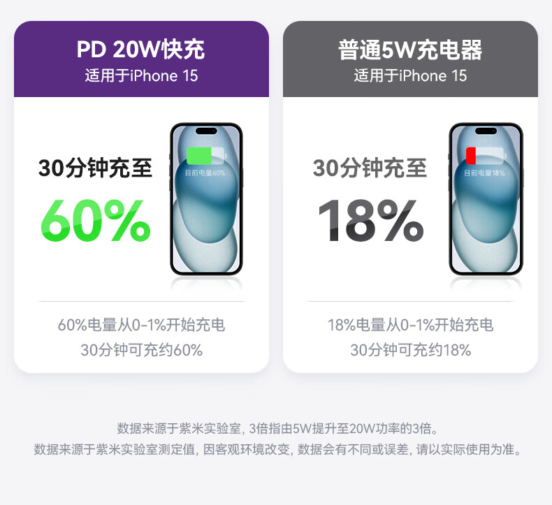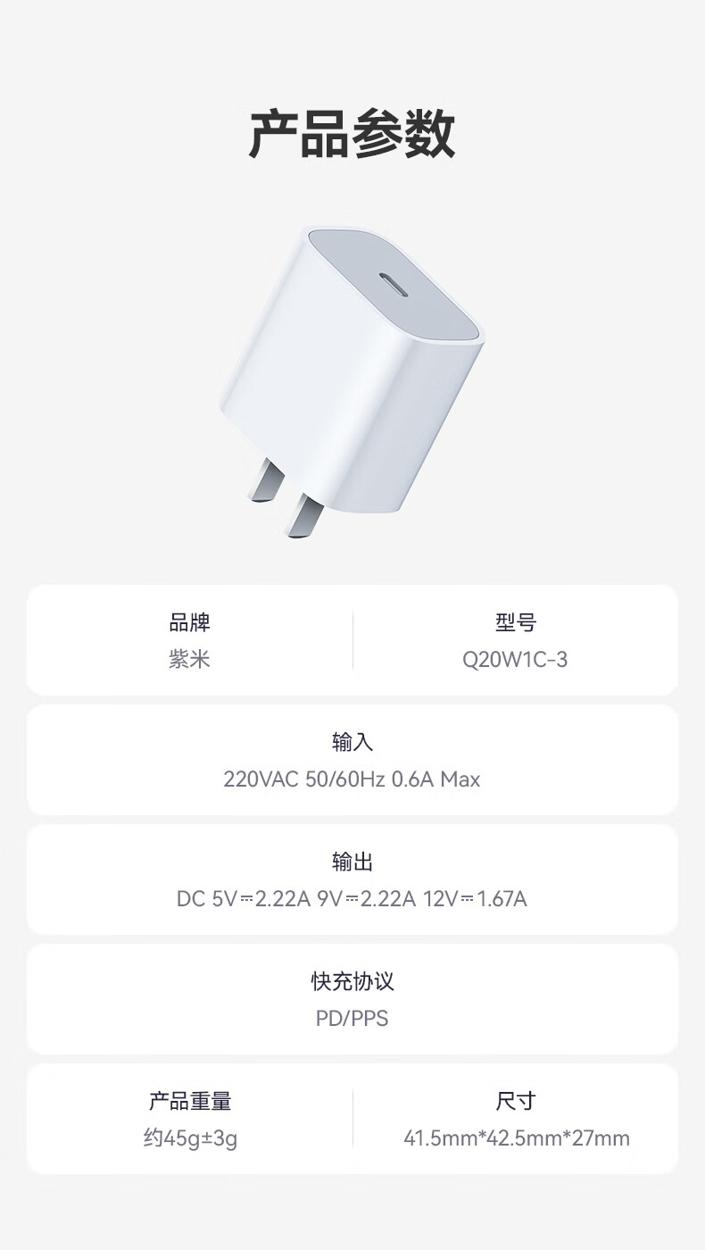 紫米苹果充电器充电头快充数据线套装20W适用iphone16/15/14/13/12ProMax手机 45W氮化镓【苹果17/16专用快充】