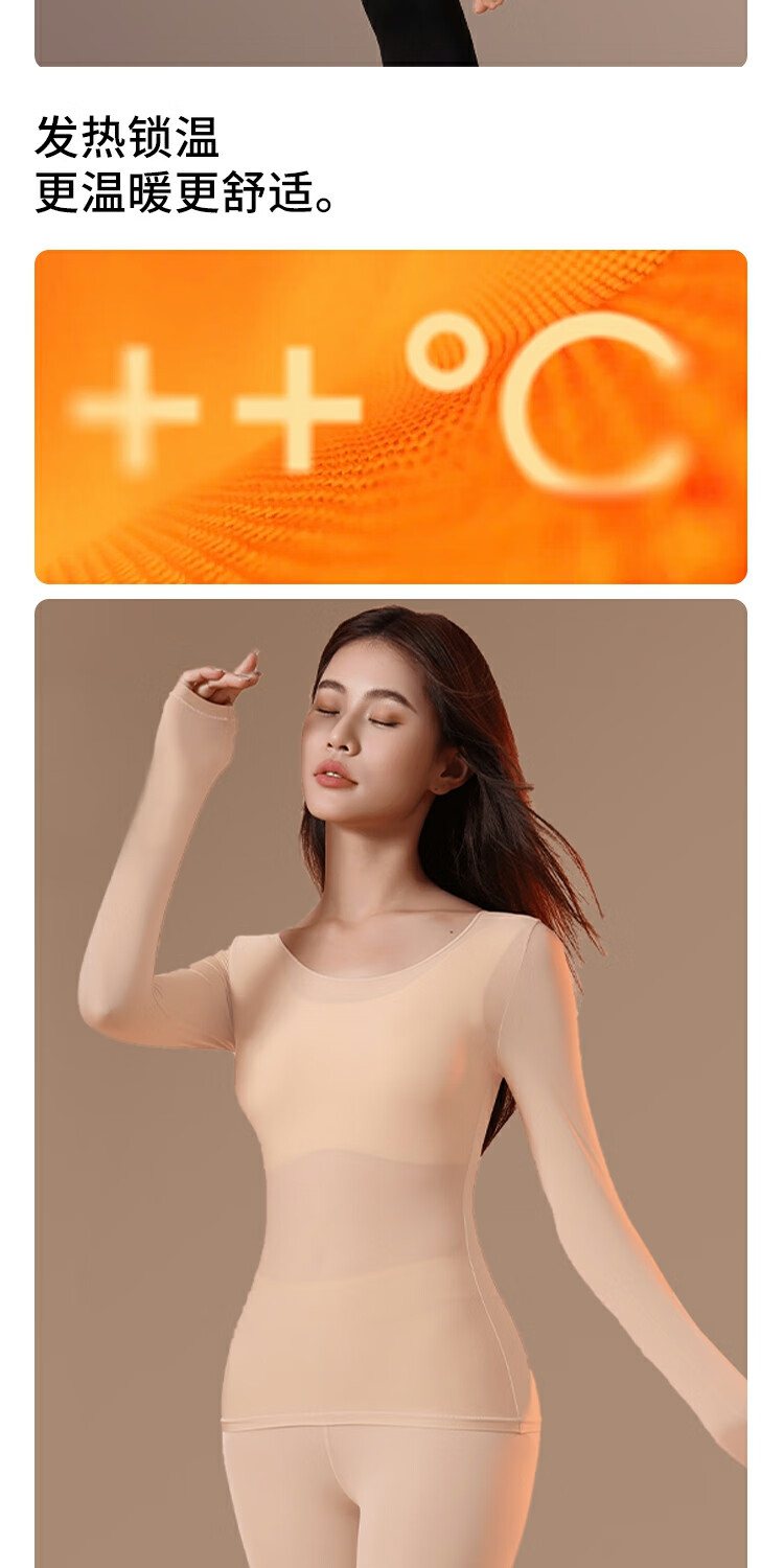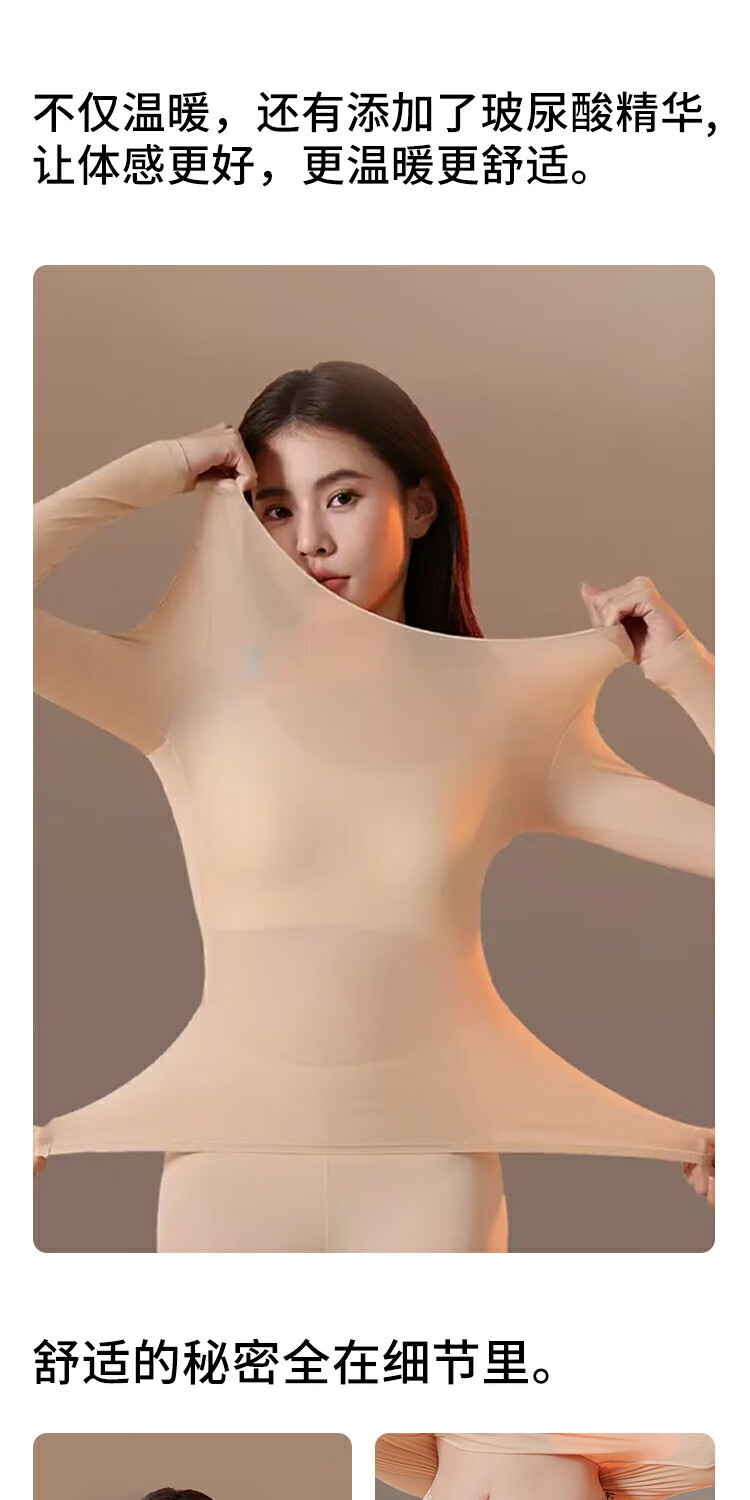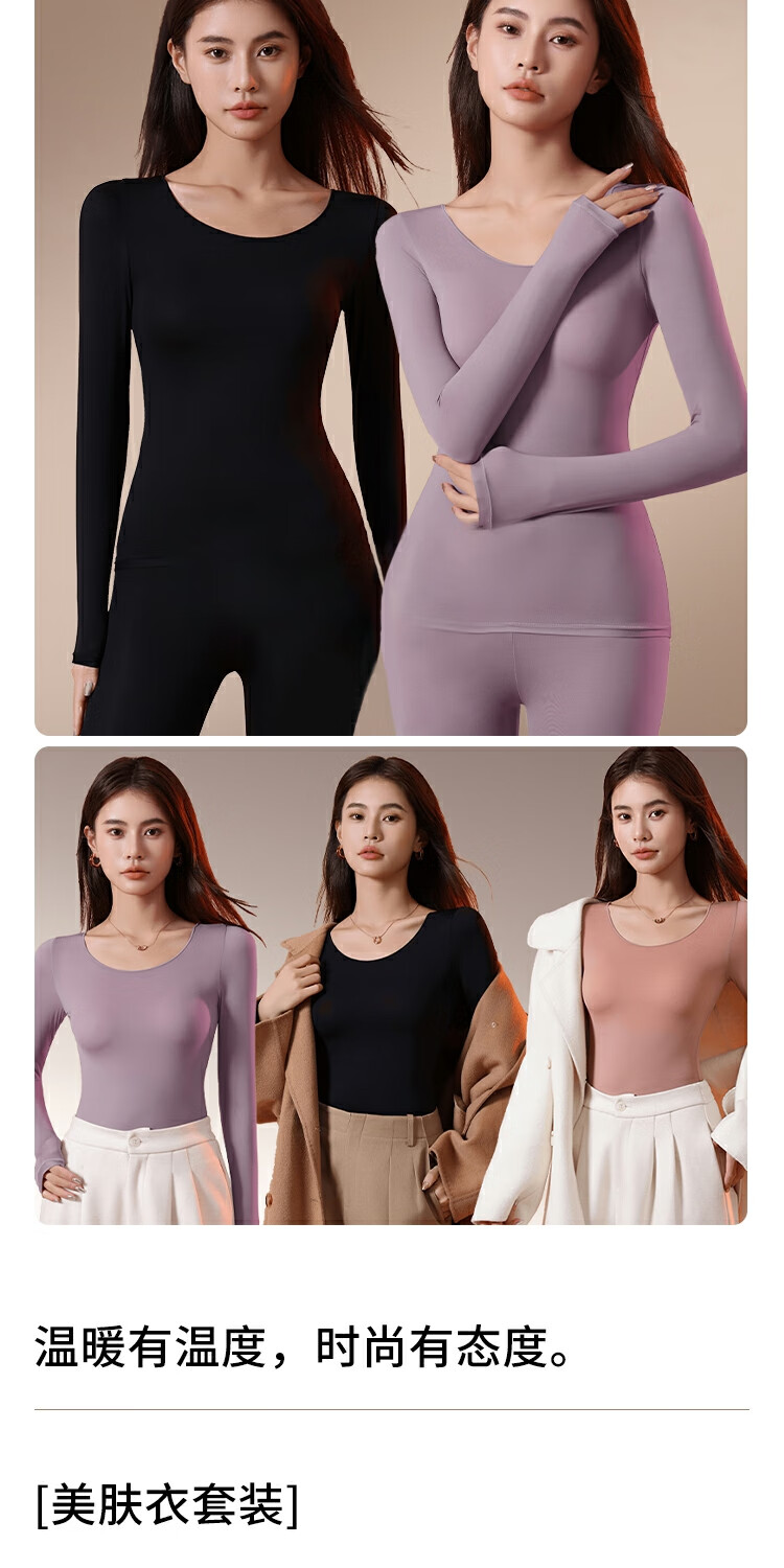 UFEEL肉色美肤衣秋裤保暖内衣女拒绝臃肿套装秋冬玻尿酸恒温基底衣038 经典黑+蜜豆沙 XL (117-143斤)