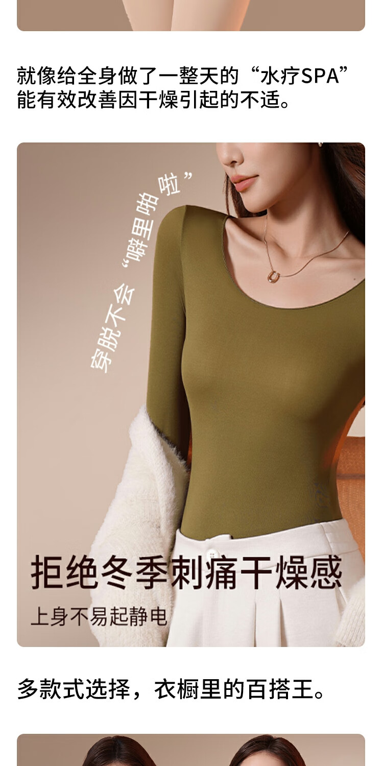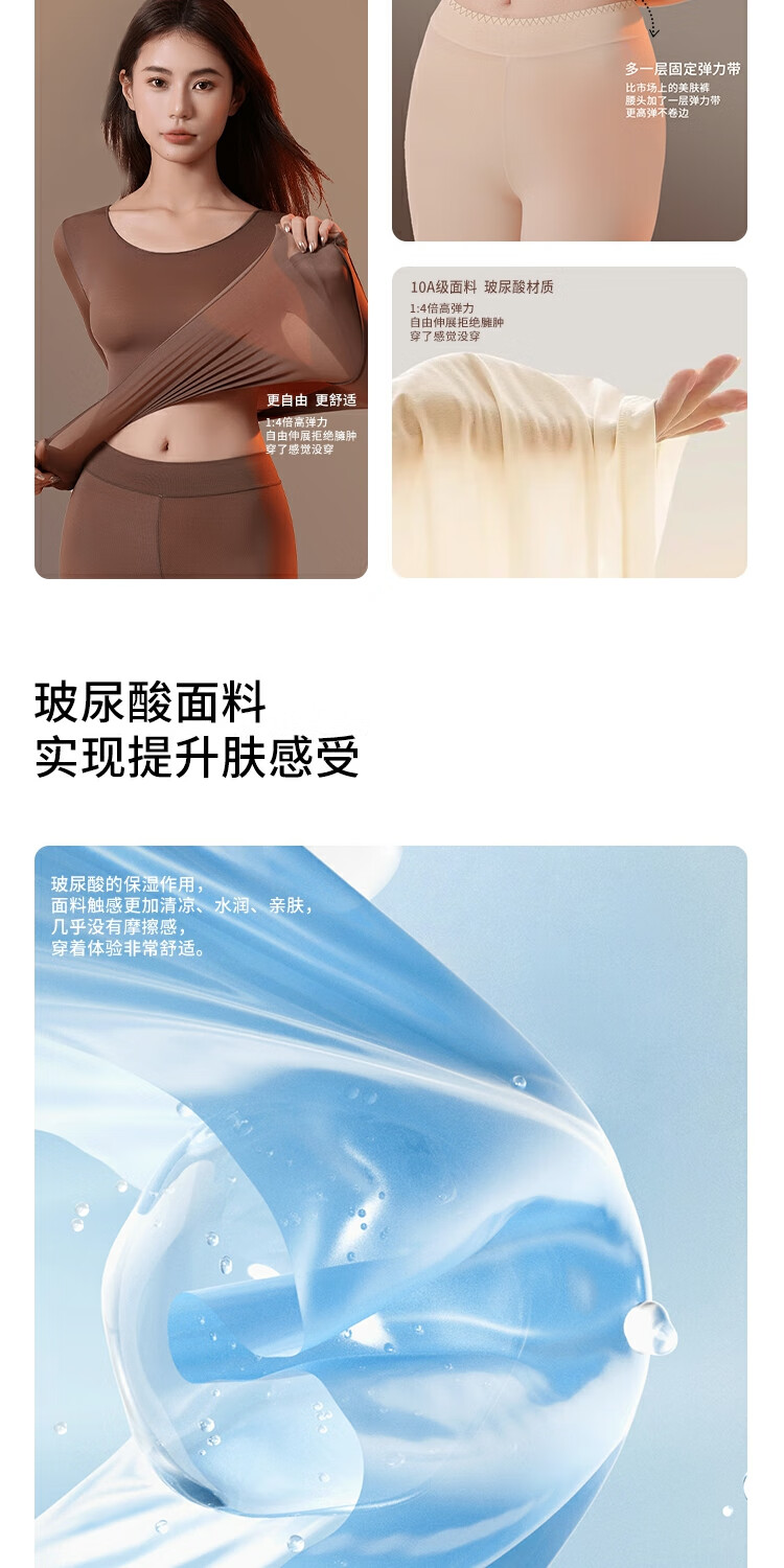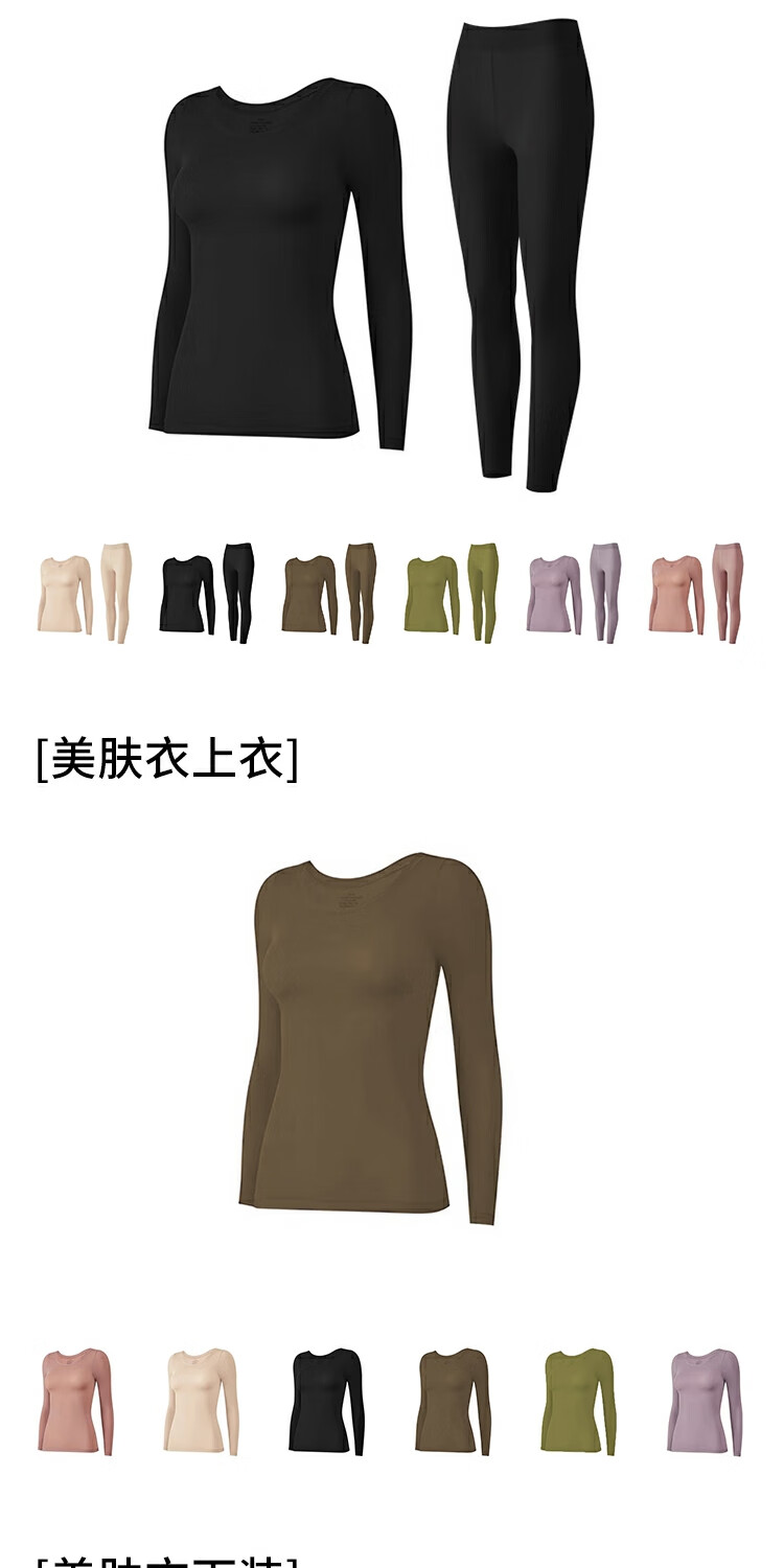 UFEEL肉色美肤衣秋裤保暖内衣女拒绝臃肿套装秋冬玻尿酸恒温基底衣038 经典黑+蜜豆沙 XL (117-143斤)