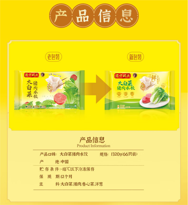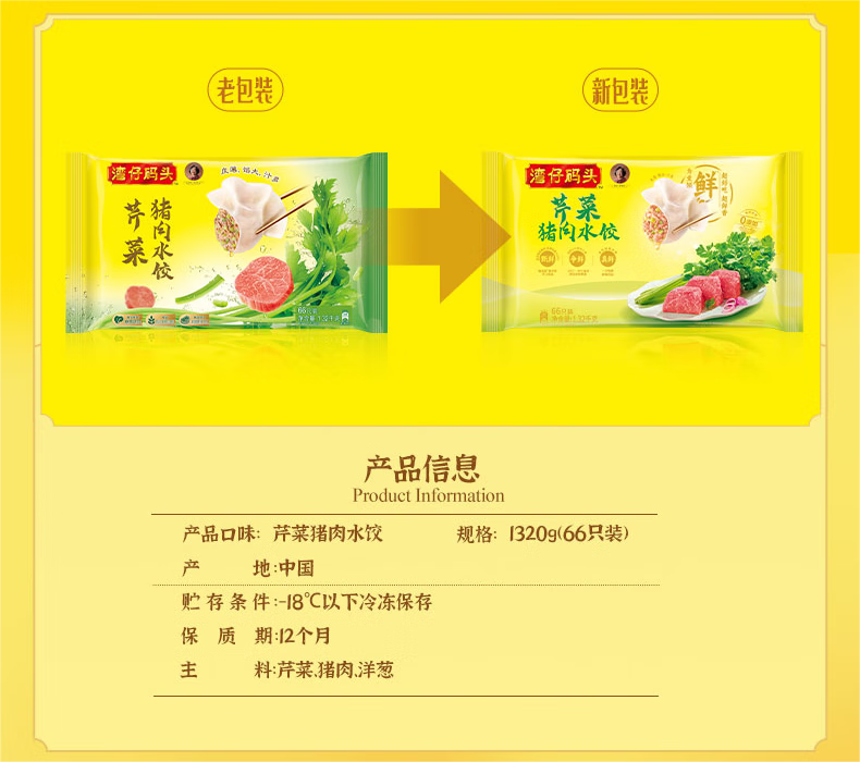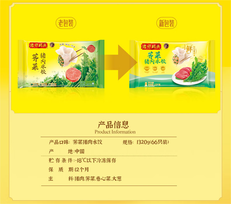 湾仔码头 【水饺皇后推荐】 速冻饺子 早餐速食 生鲜食品 1320G荠菜猪肉水饺*2