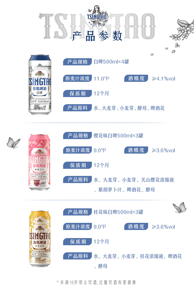 青岛啤酒(TsingTao)白啤礼盒500ml10罐佳节送礼(白啤4罐+樱花味3罐+桂花味3罐) 礼盒装