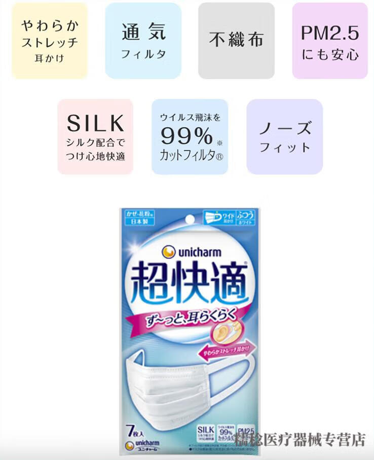 通用电气(GE)日本进口品质防过敏口罩 超快适敏感肌肤口罩柔软透气防过敏代购 7枚入超立体白色 大码 大码