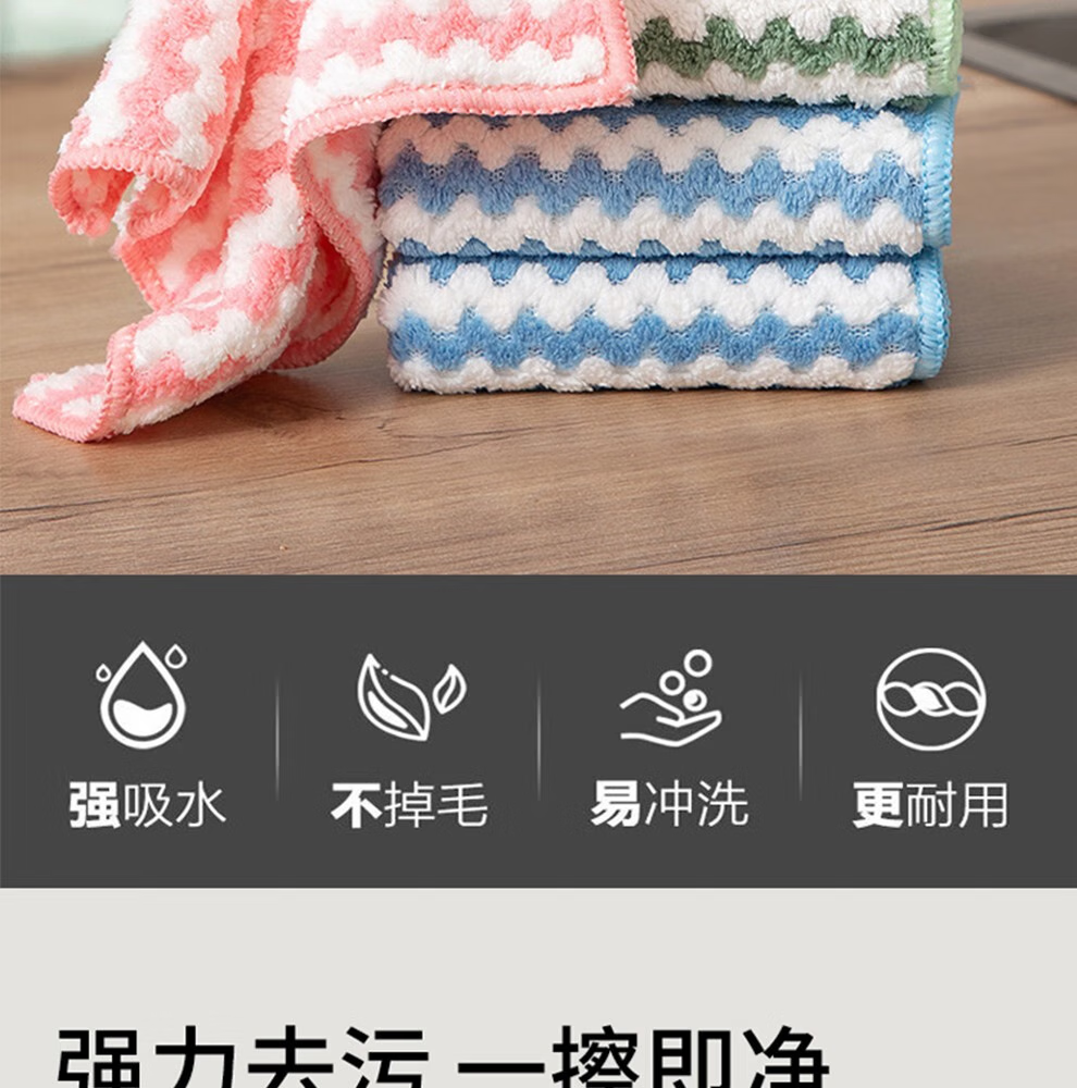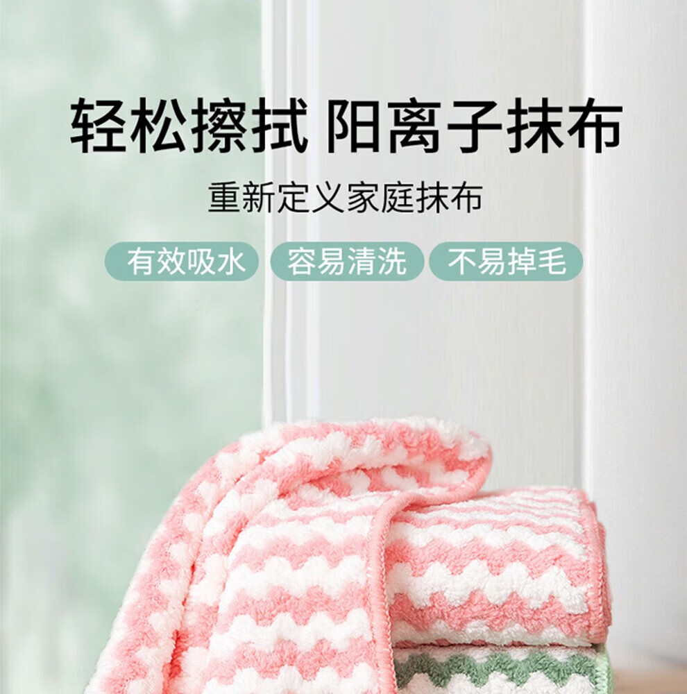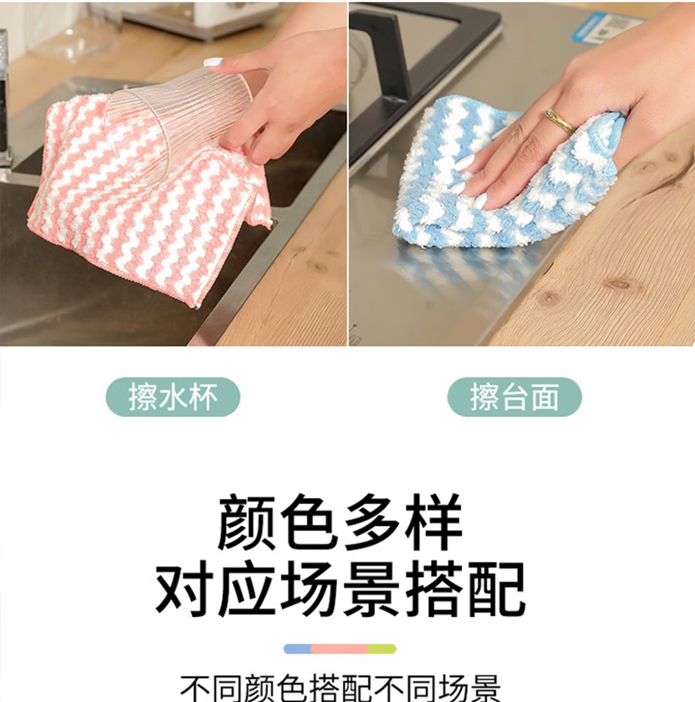 【甄选厂家】抹布洗碗布厨房家务清洁布毛巾擦桌子吸水抹布易清洗 阳离子抹布-5条装(颜色随机)
