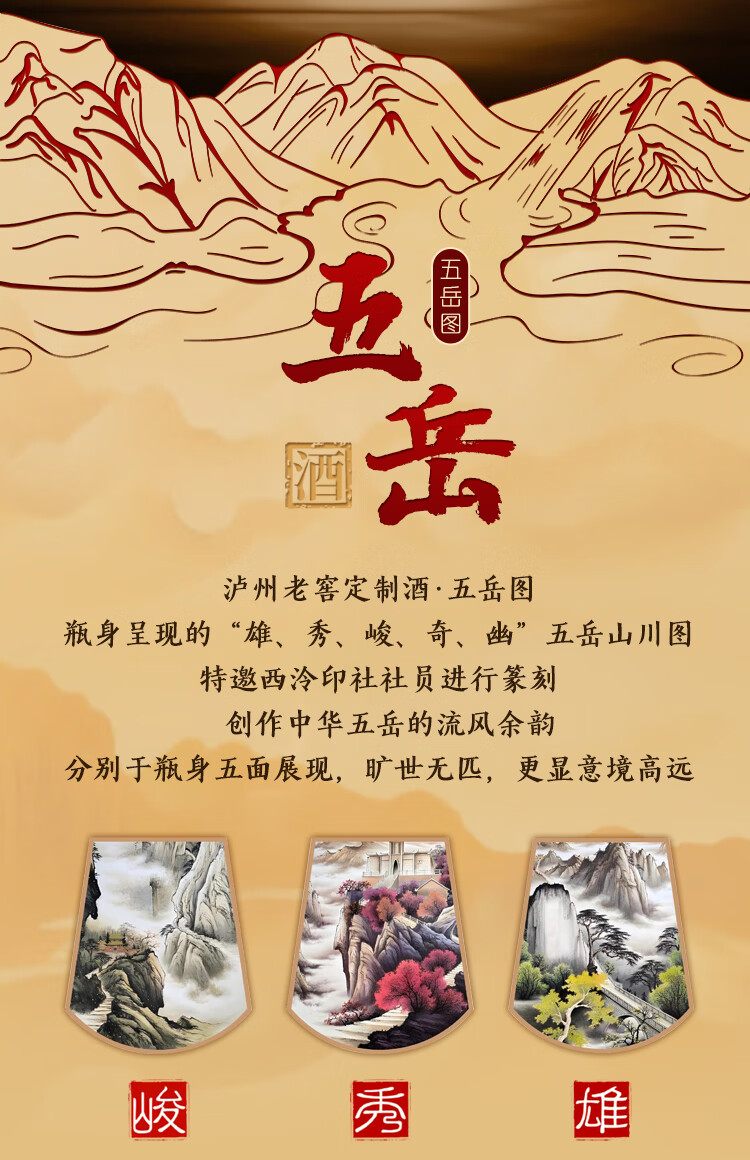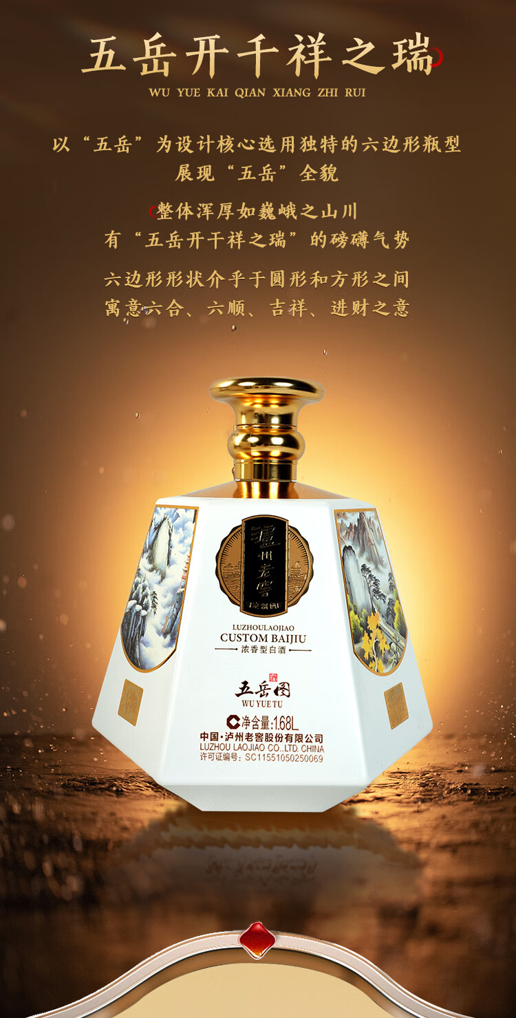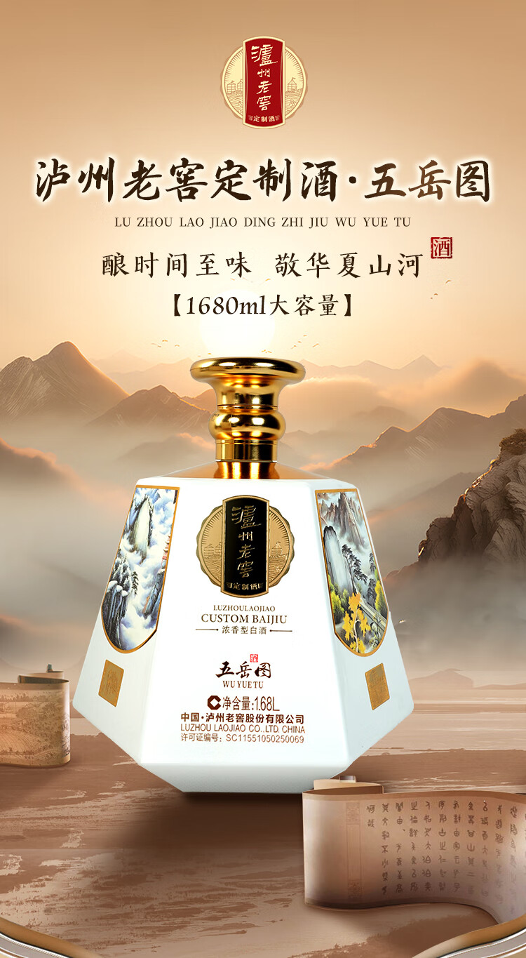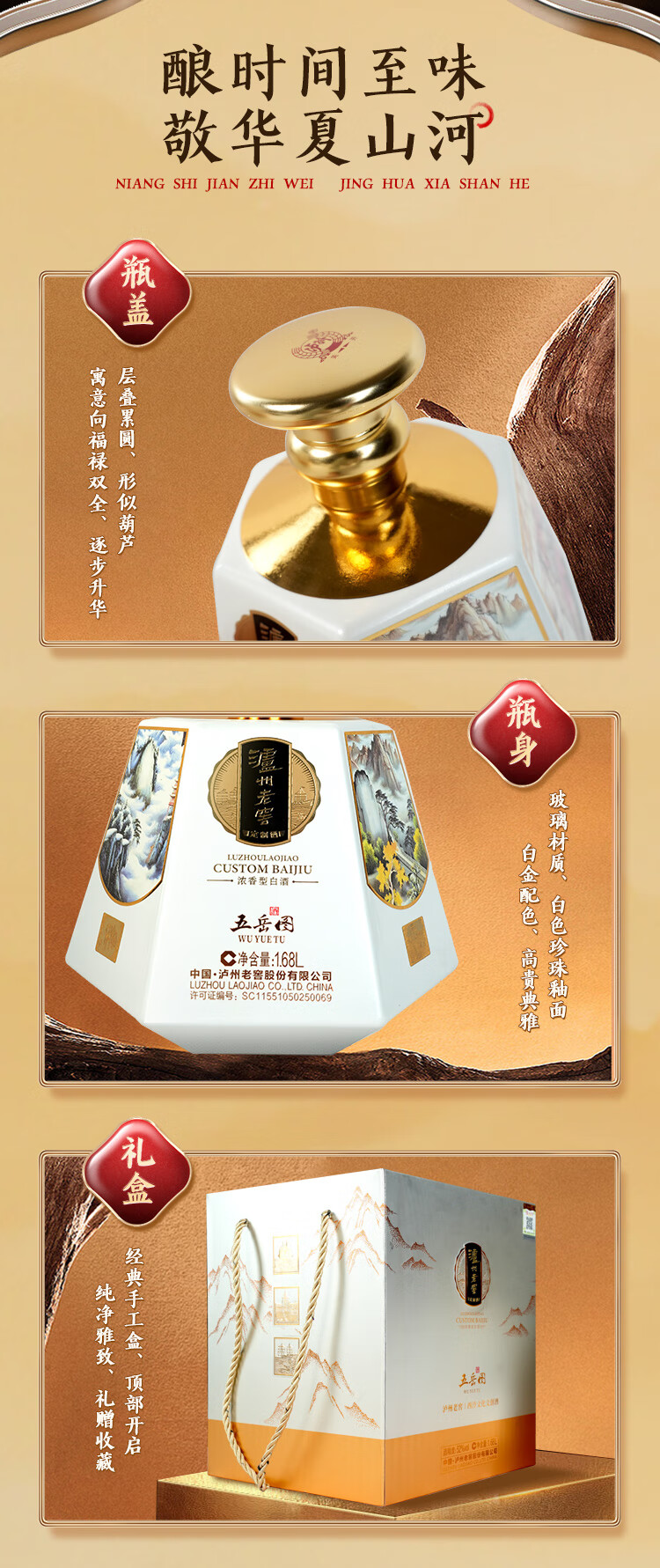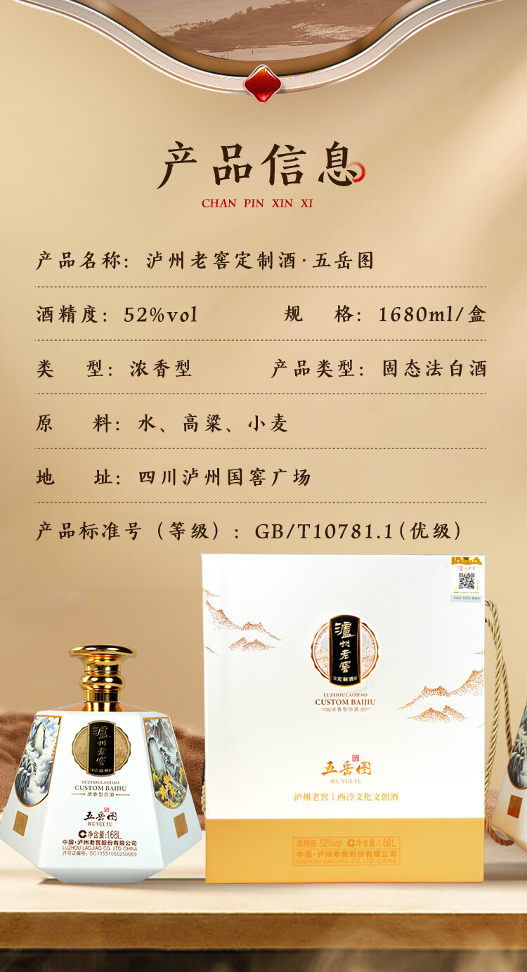 瀘州老窖定制酒五岳图大坛浓香型白酒52度固态法纯粮高度白酒 礼盒商务礼品收藏 52度 1680mL 1瓶 五岳图 礼盒装