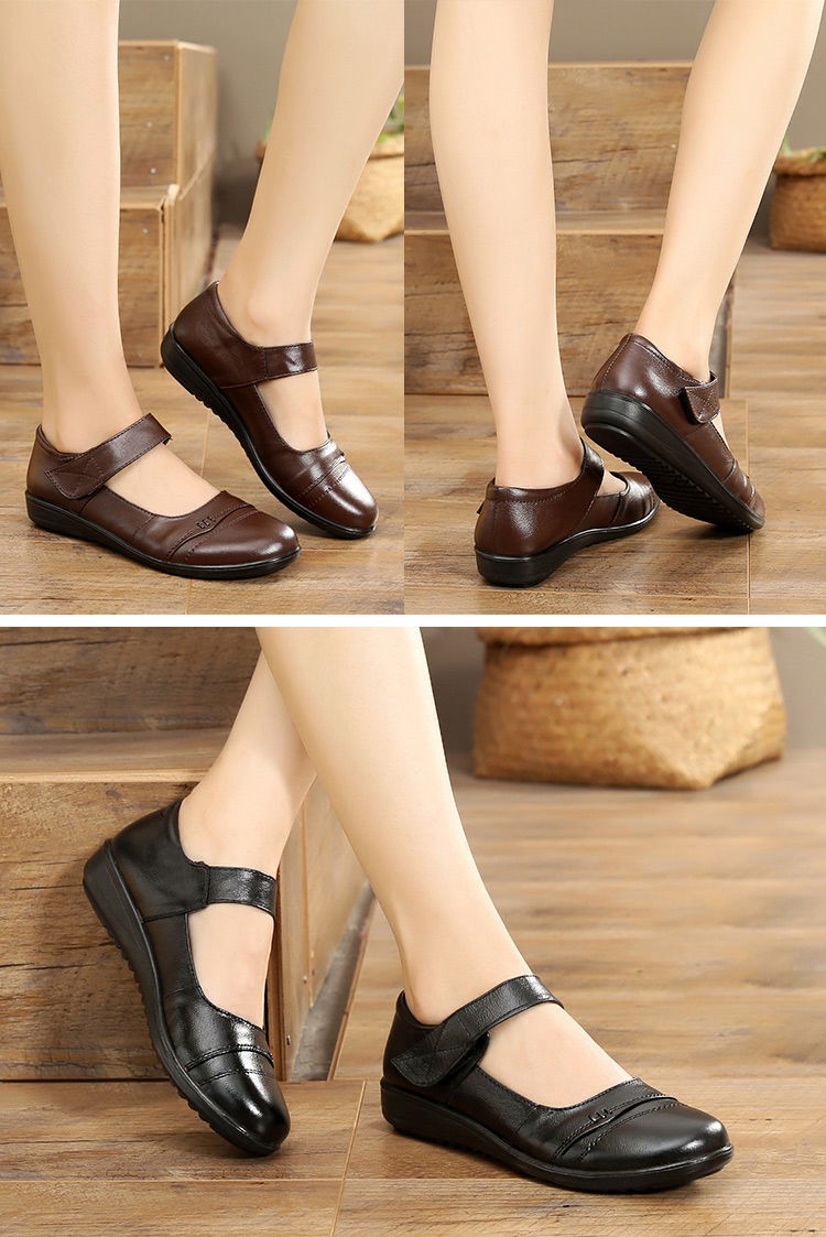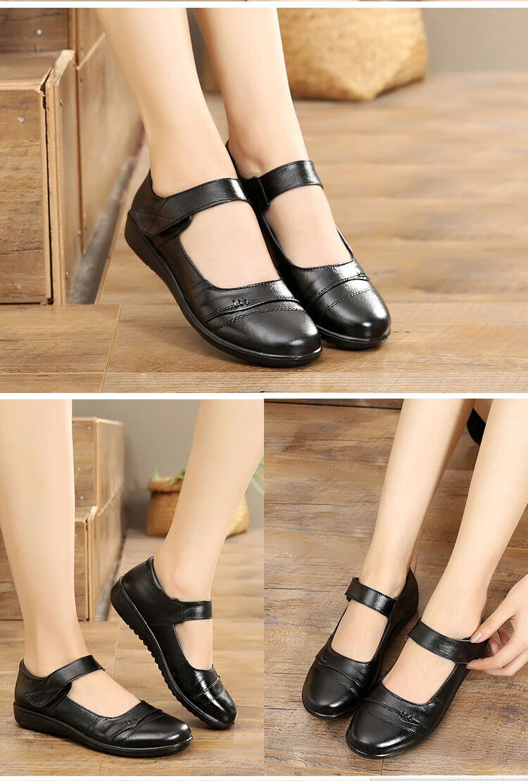 吊带兔妈妈鞋夏季眞皮软底老人皮鞋女透气奶奶凉鞋中老年防滑平跟工作鞋 383黑色 42