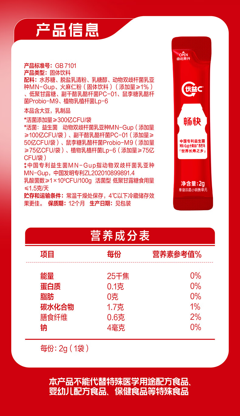 蒙牛杨紫推荐 优益C畅快益生菌固体饮料2gx30袋x1盒(5.21到期)