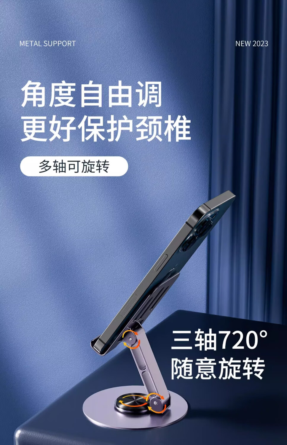 其他品牌【好物优选】可旋转手机架子支架桌面懒人床头平板电脑全金属折叠升 深枪黑 2个装【手机/平板通用】全金属