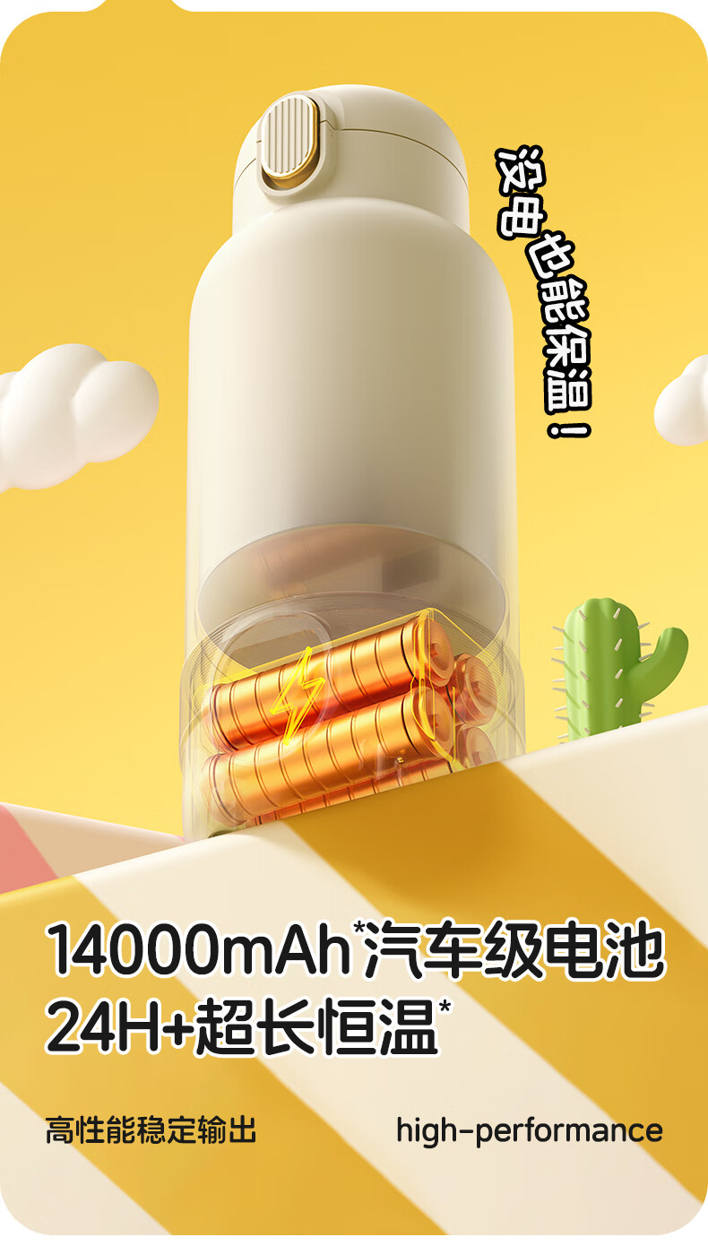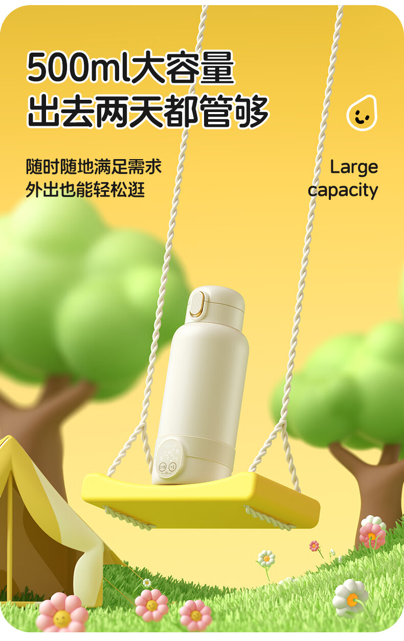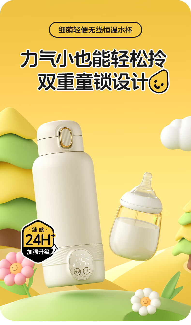 XEAMUN无线便携恒温水杯调奶器保温杯婴儿恒温加热保温杯冲泡奶 55度 细萌智能恒温宝宝专用户外电水壶 500ml 【爆款】